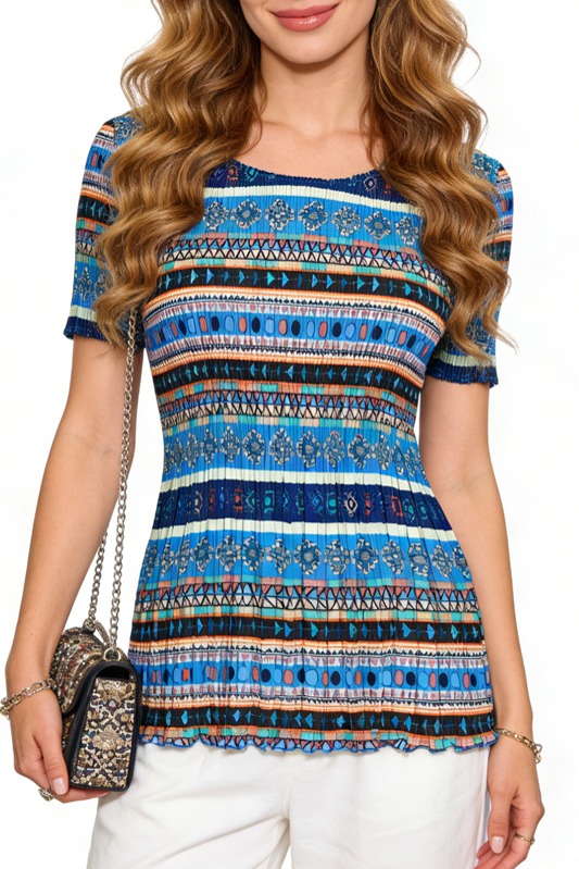 RY1480# 三宅风褶皱碎花上衣女夏 大码宽松遮肚子 中年妈妈洋气A字摆小衫