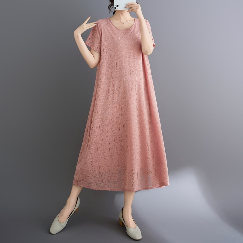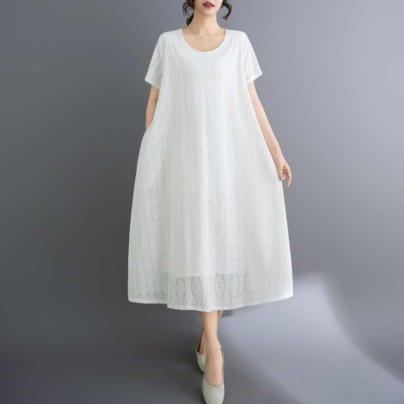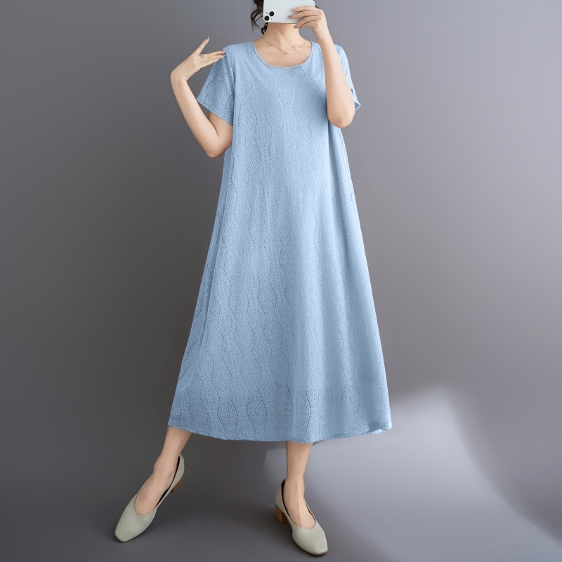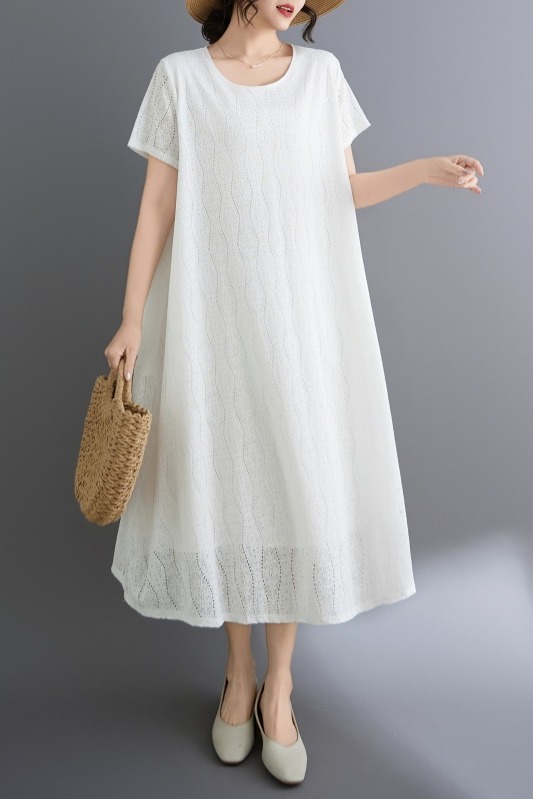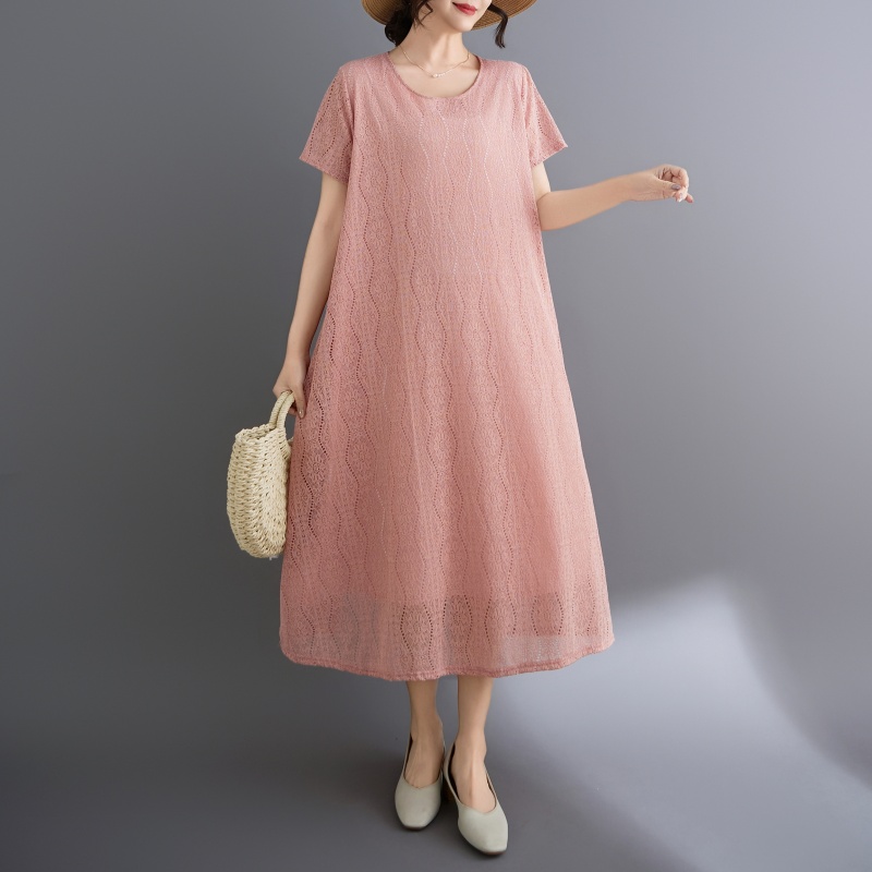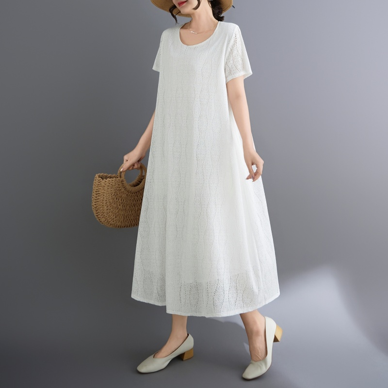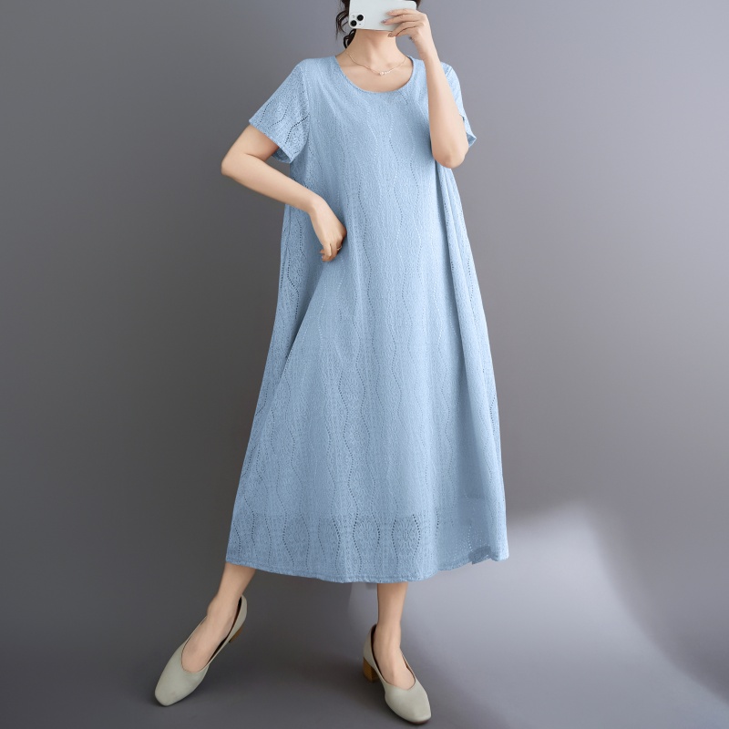 RY1484# 实拍 2026新款韩版外贸旅游度假风圆领大码蕾丝连衣裙女