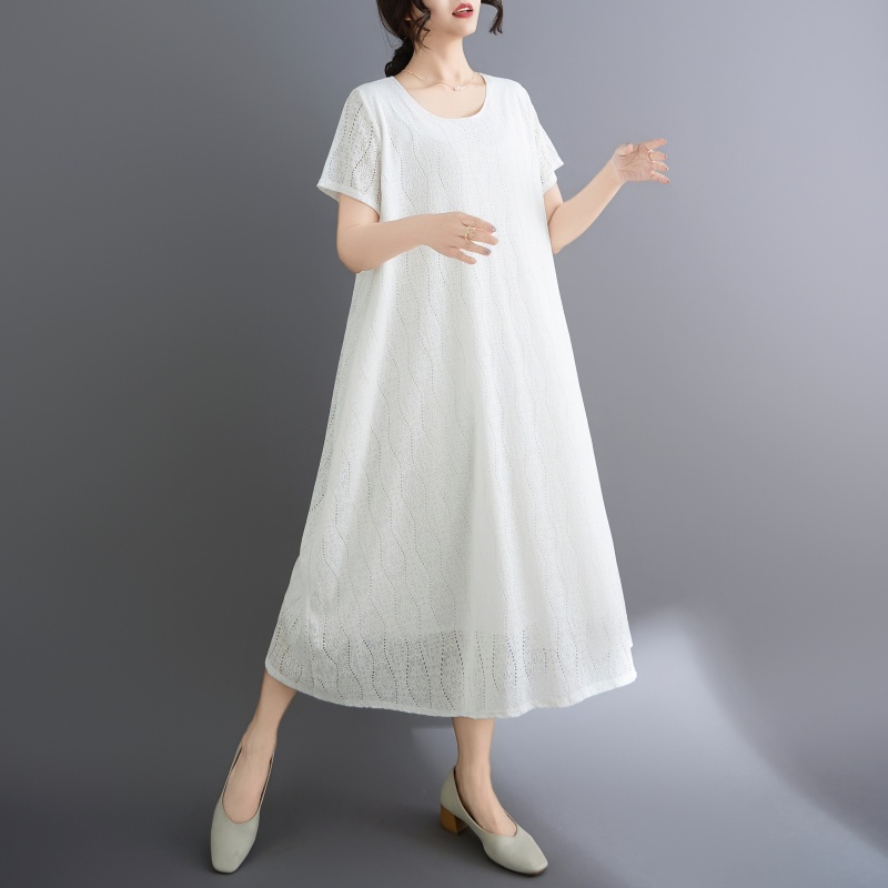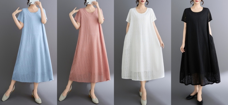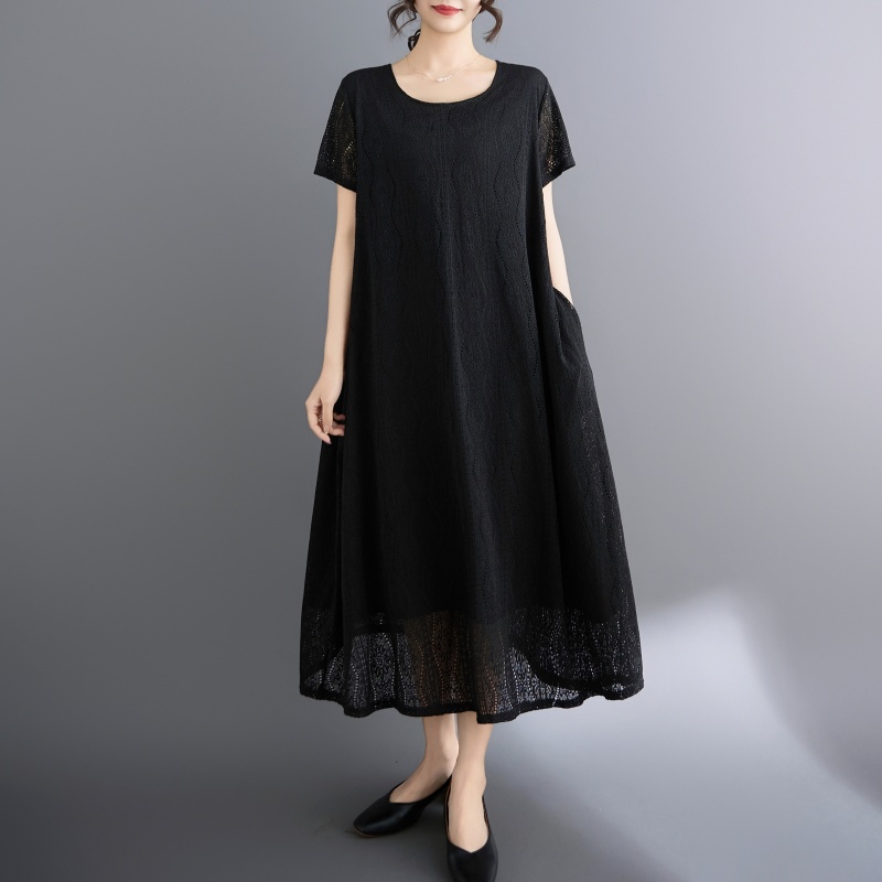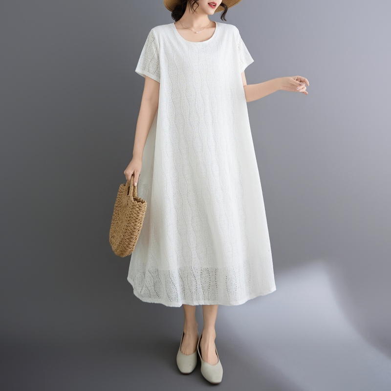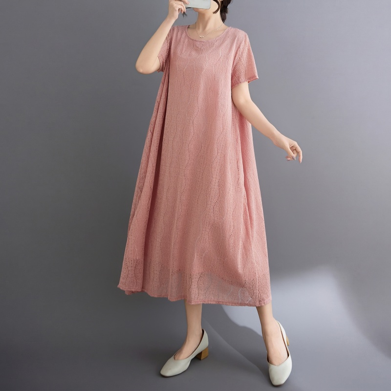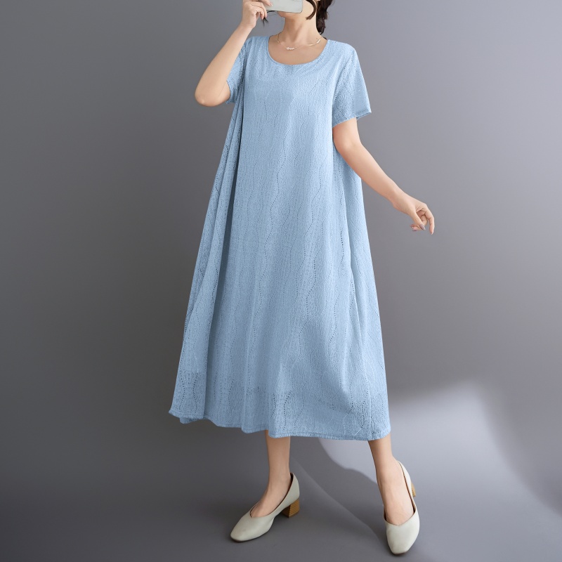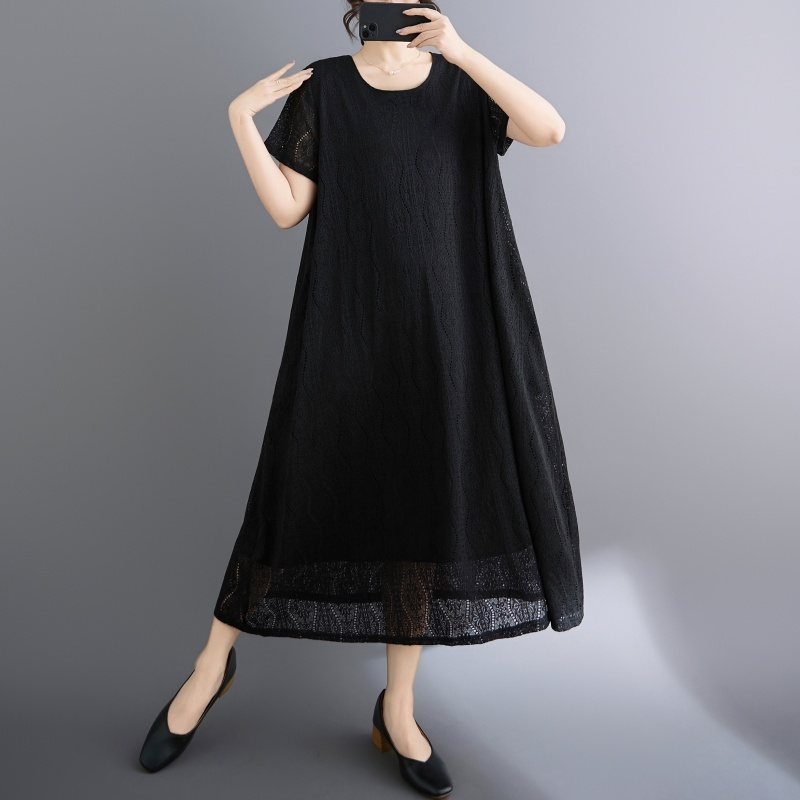 RY1484# 实拍 2026新款韩版外贸旅游度假风圆领大码蕾丝连衣裙女