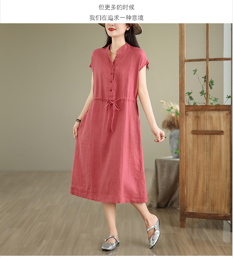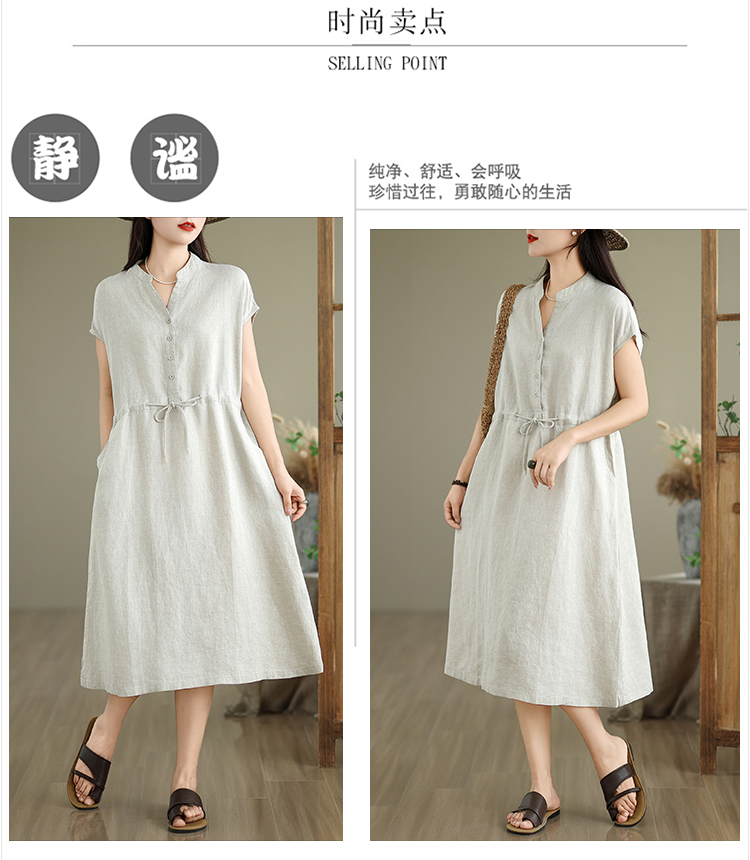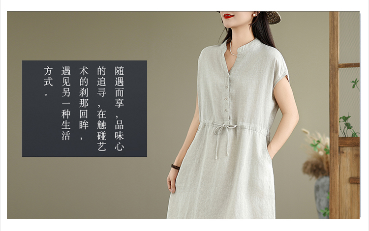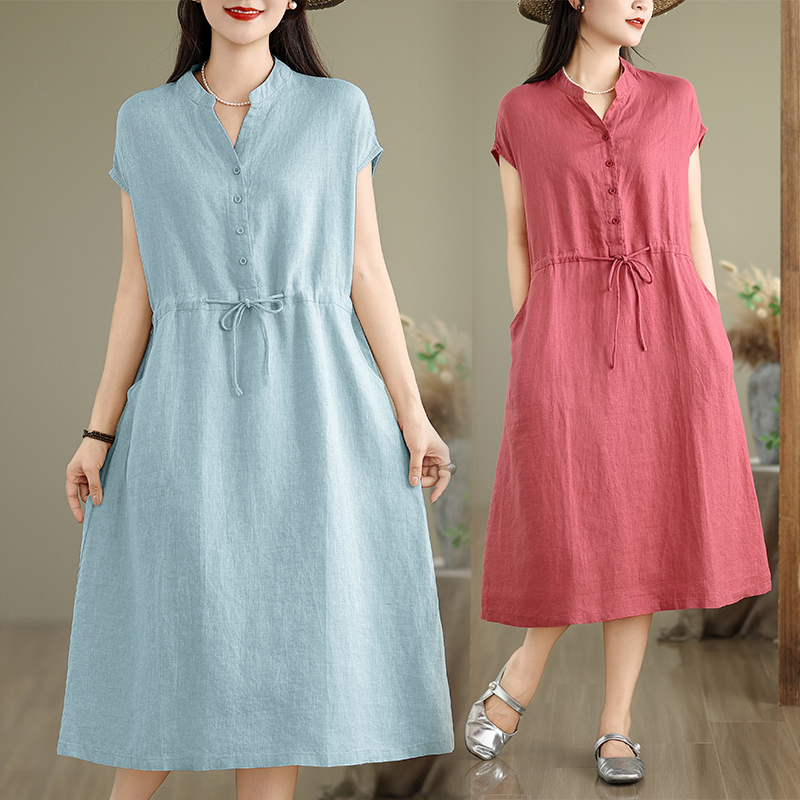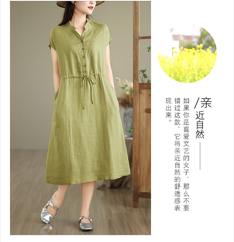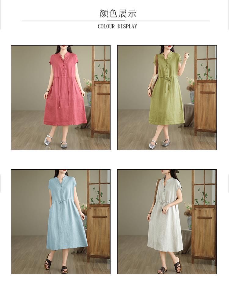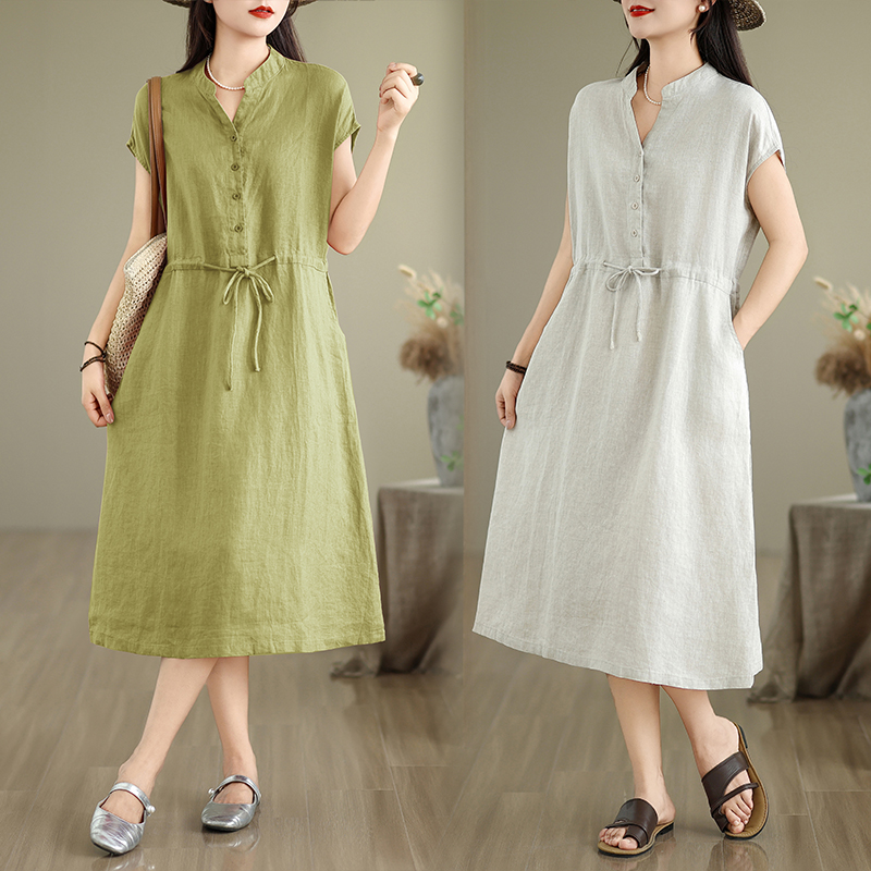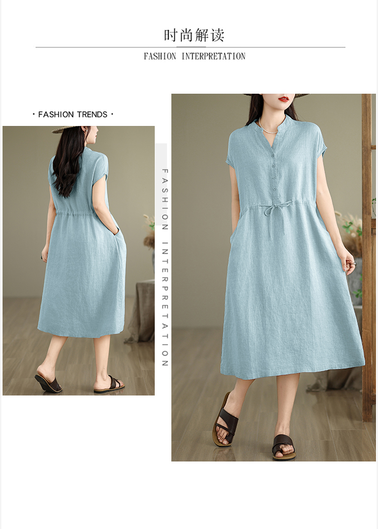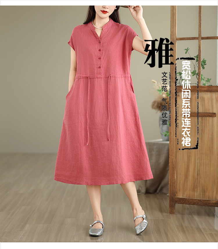 RY1486# 实拍棉麻连衣裙显瘦气质时尚休闲夏季收腰系带韩版纯棉100棉