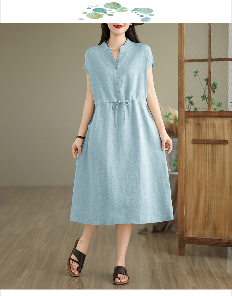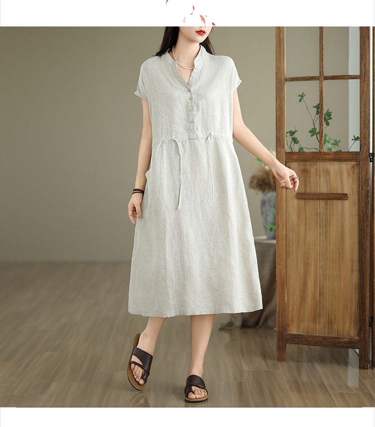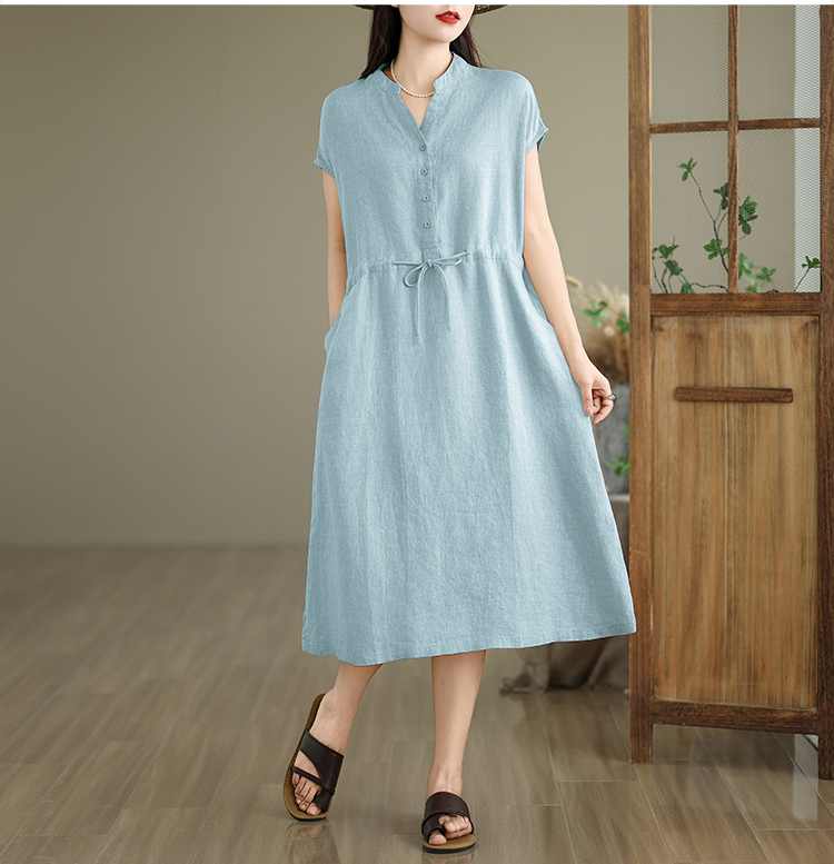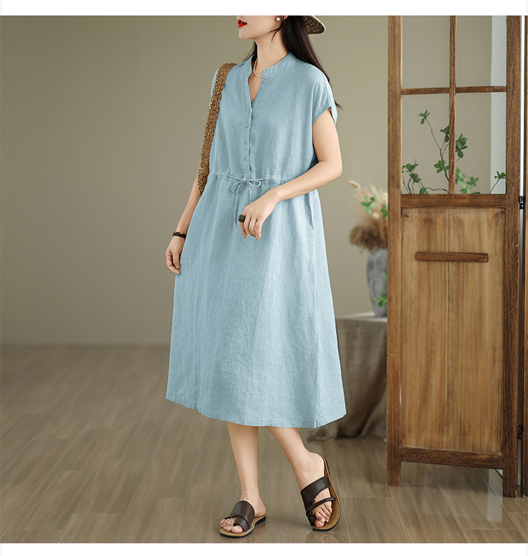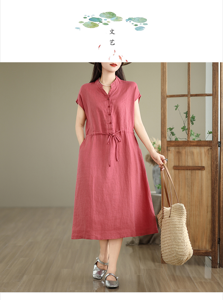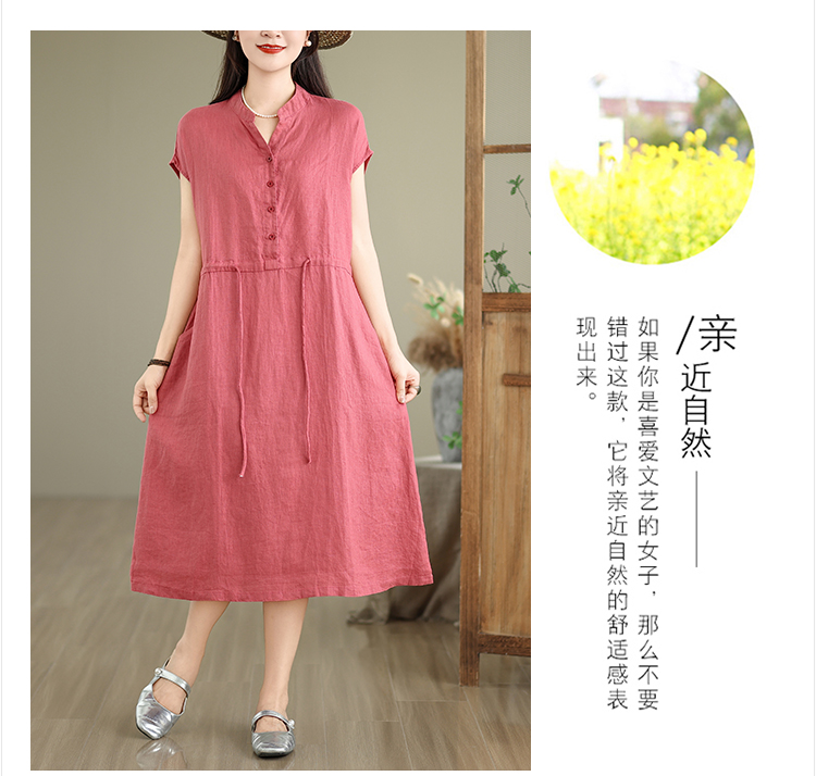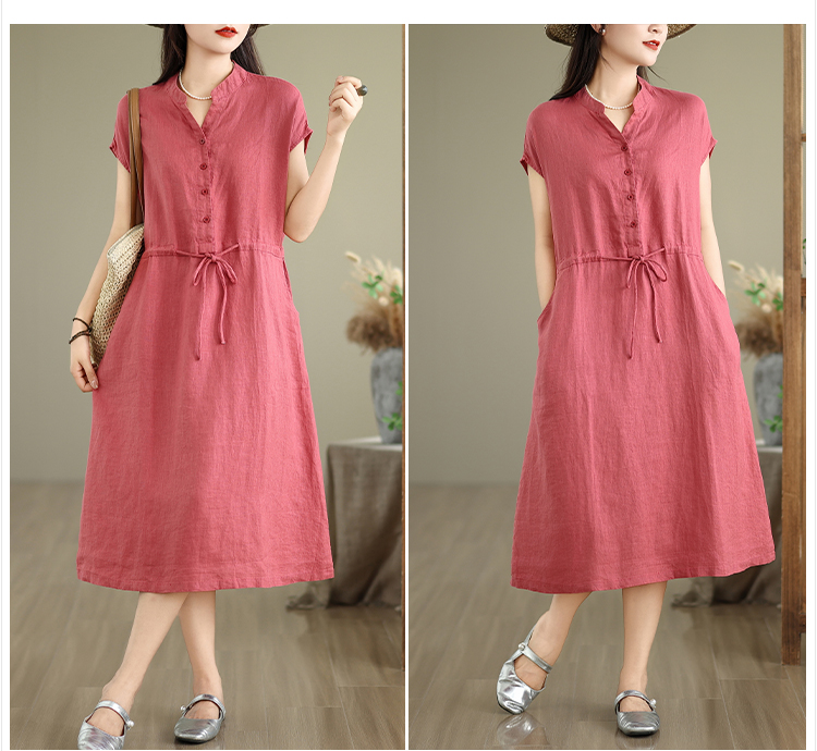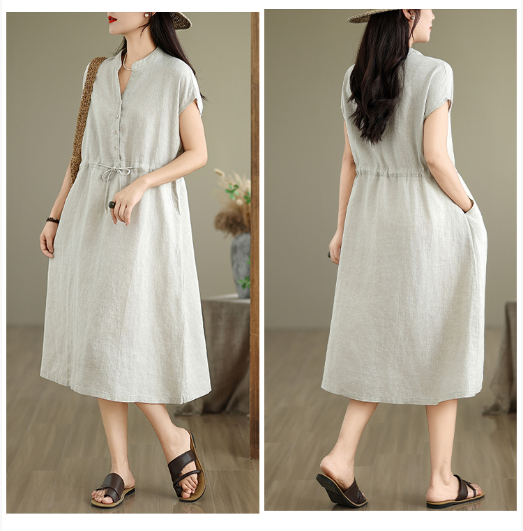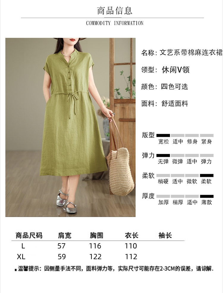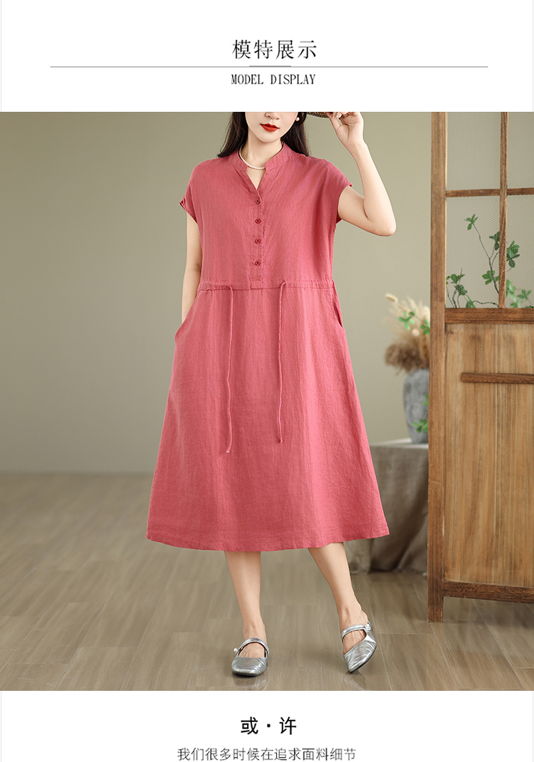 RY1486# 实拍棉麻连衣裙显瘦气质时尚休闲夏季收腰系带韩版纯棉100棉