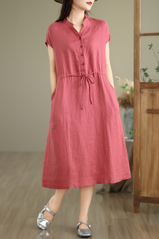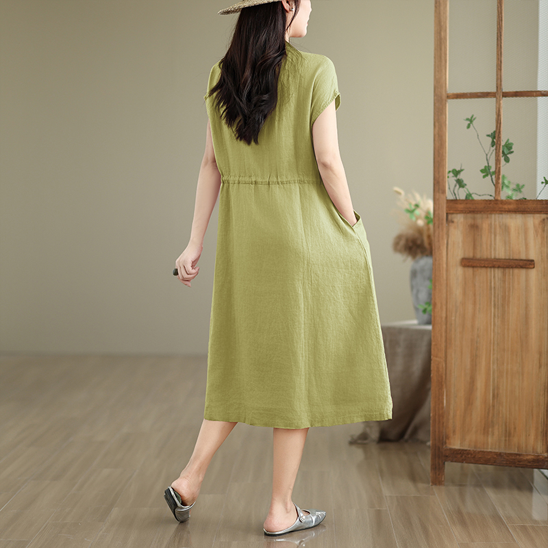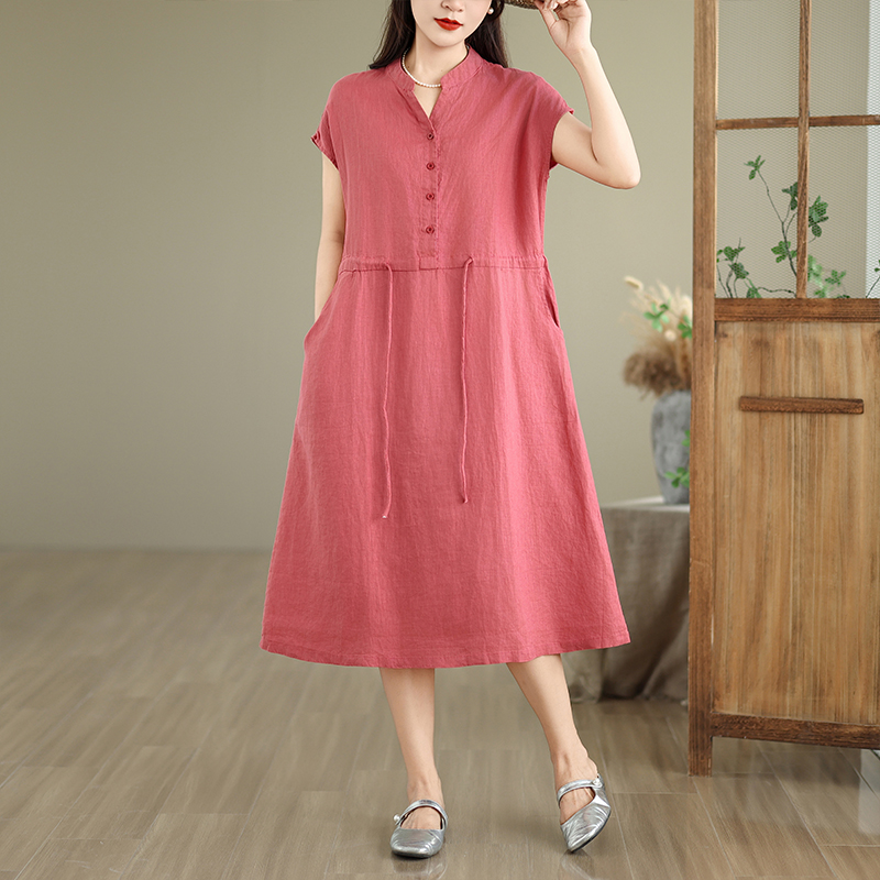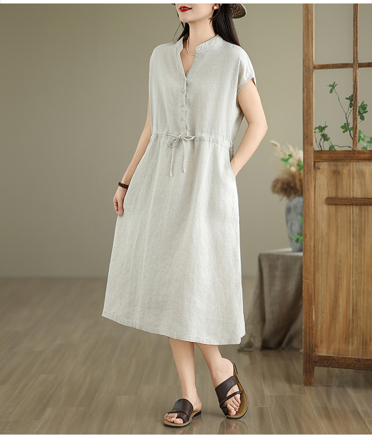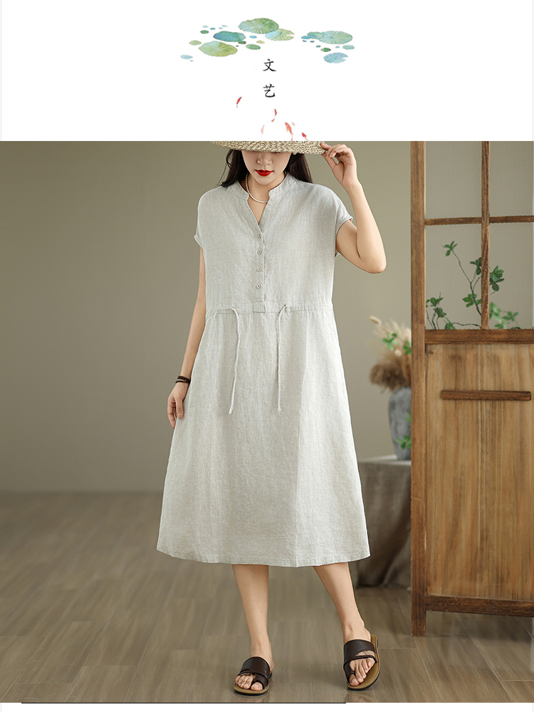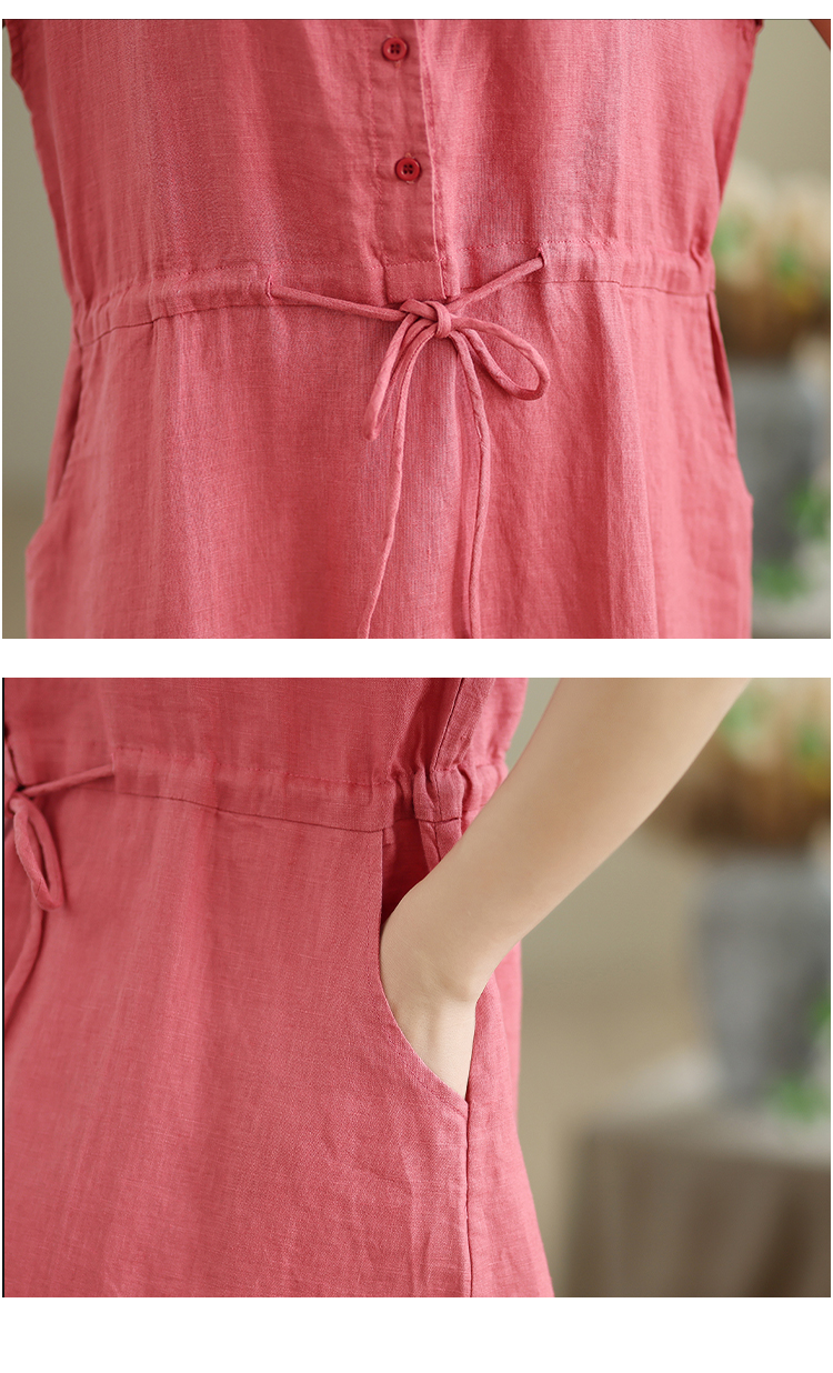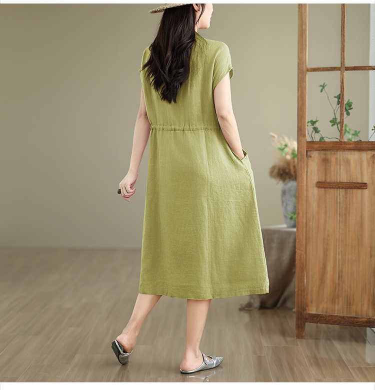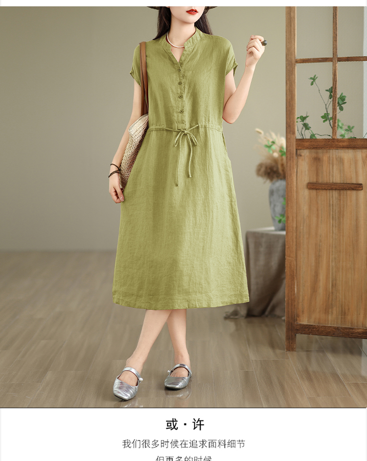 RY1486# 实拍棉麻连衣裙显瘦气质时尚休闲夏季收腰系带韩版纯棉100棉