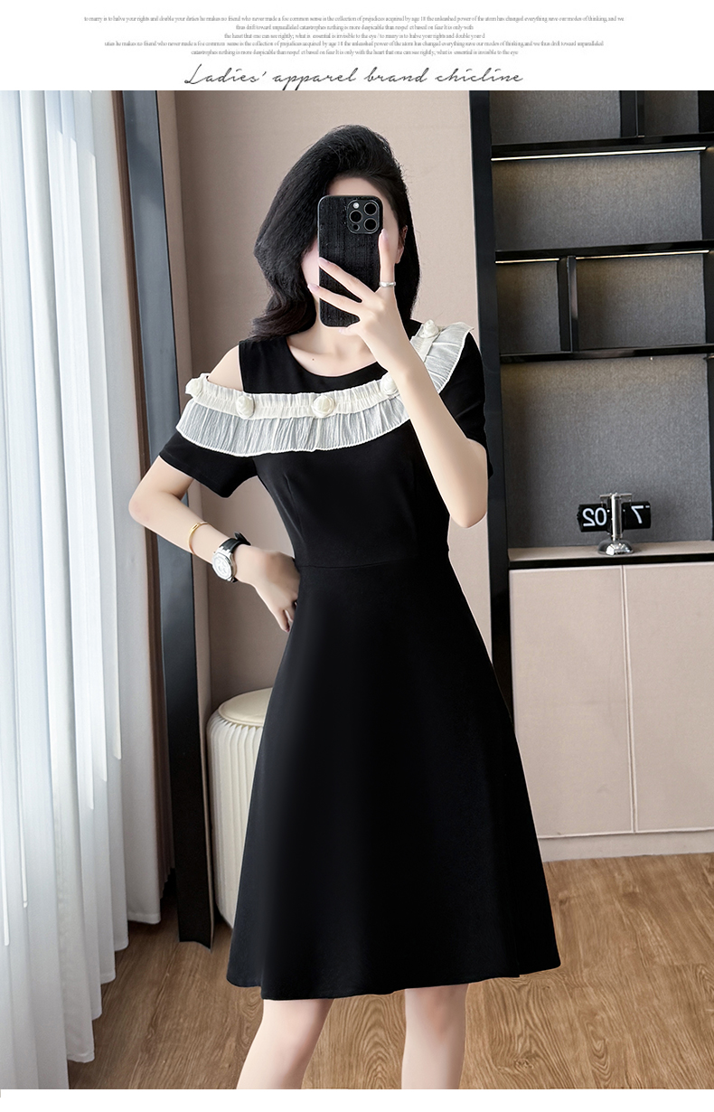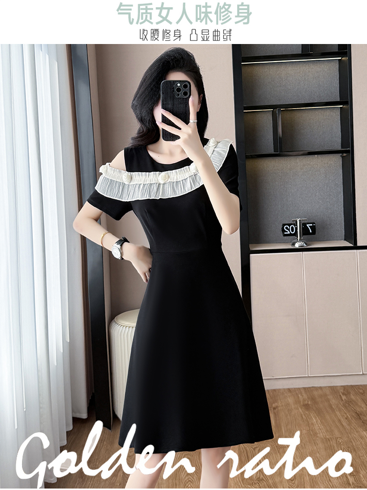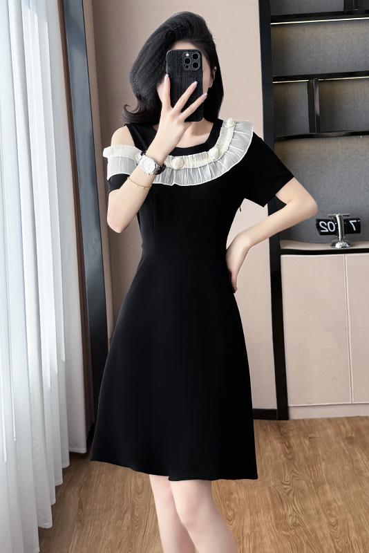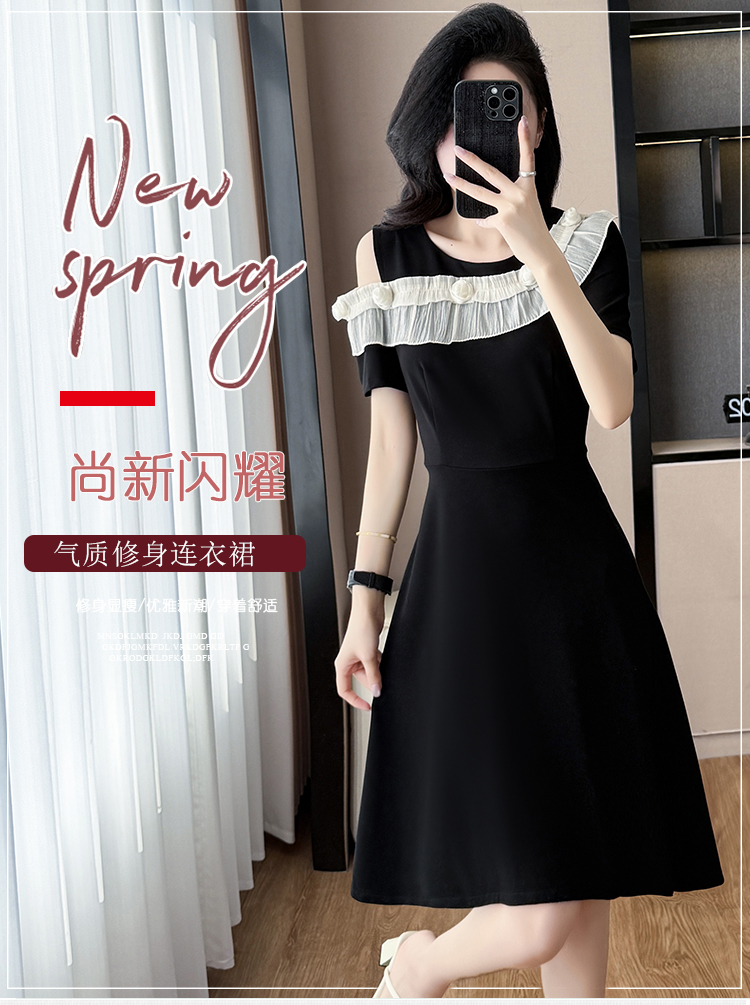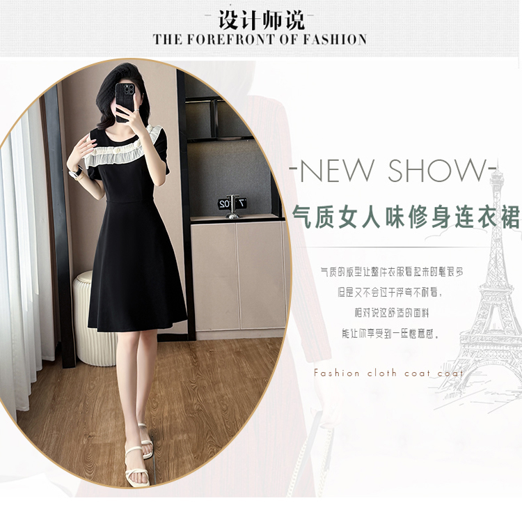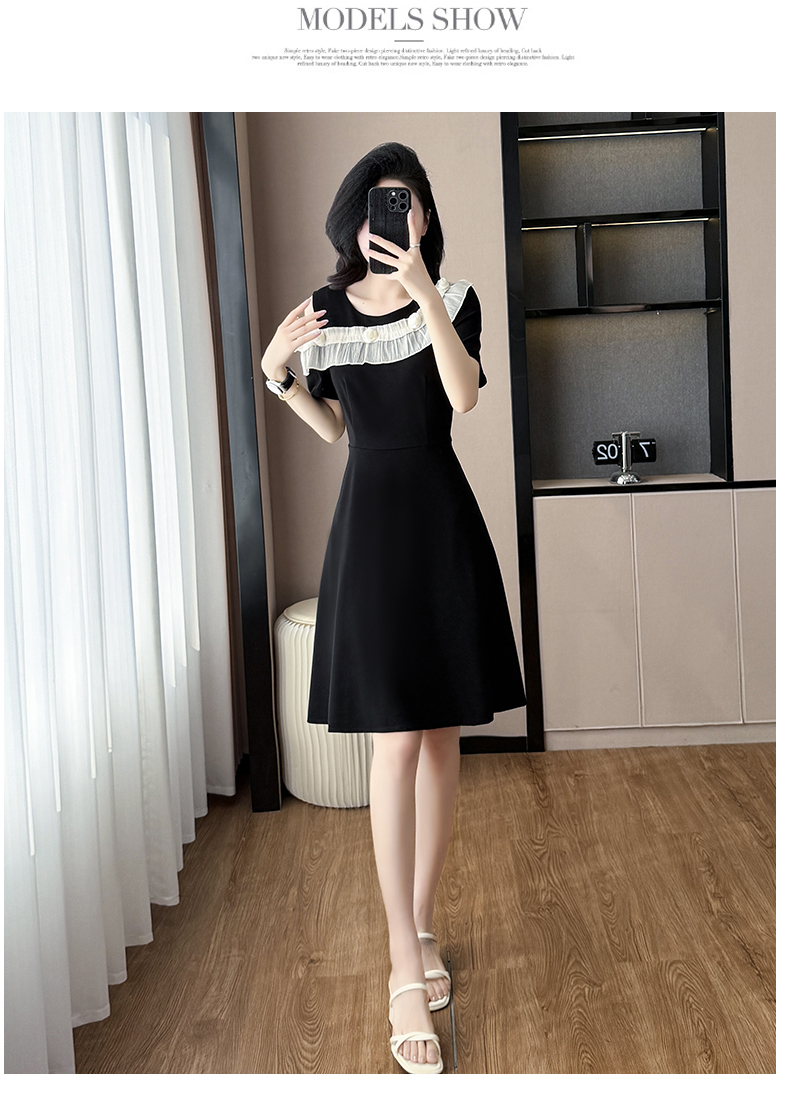 RY1545# 荷叶边拼接小香风洋气连衣裙2026夏季韩版时尚流行赫本风小黑裙女