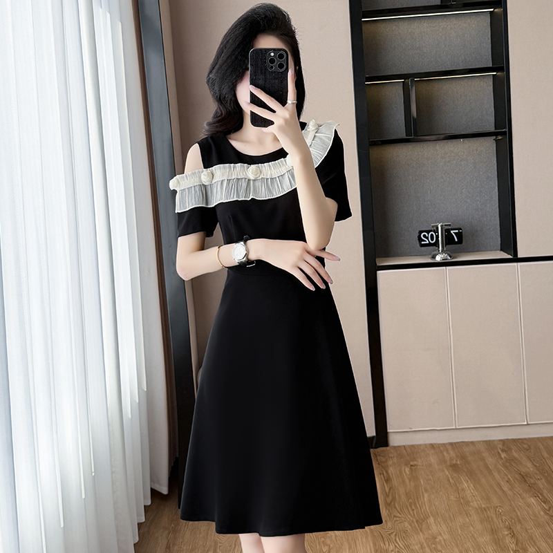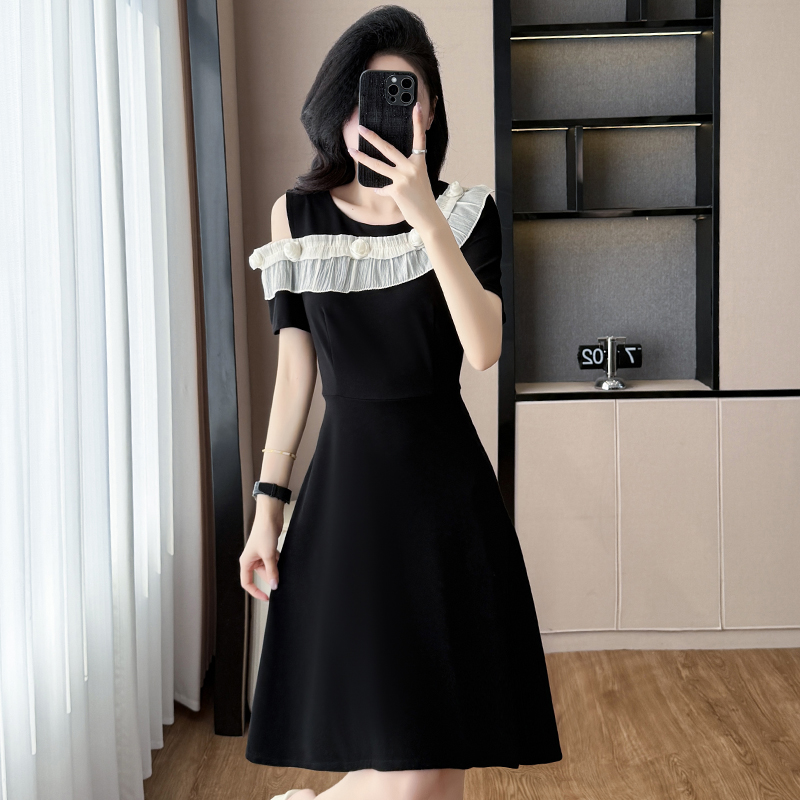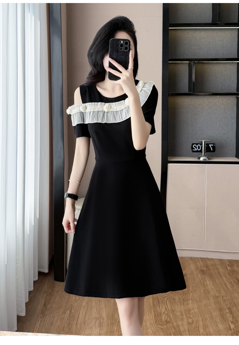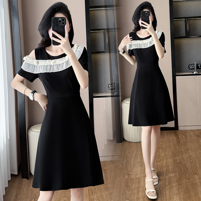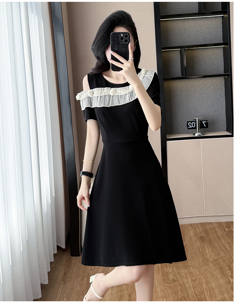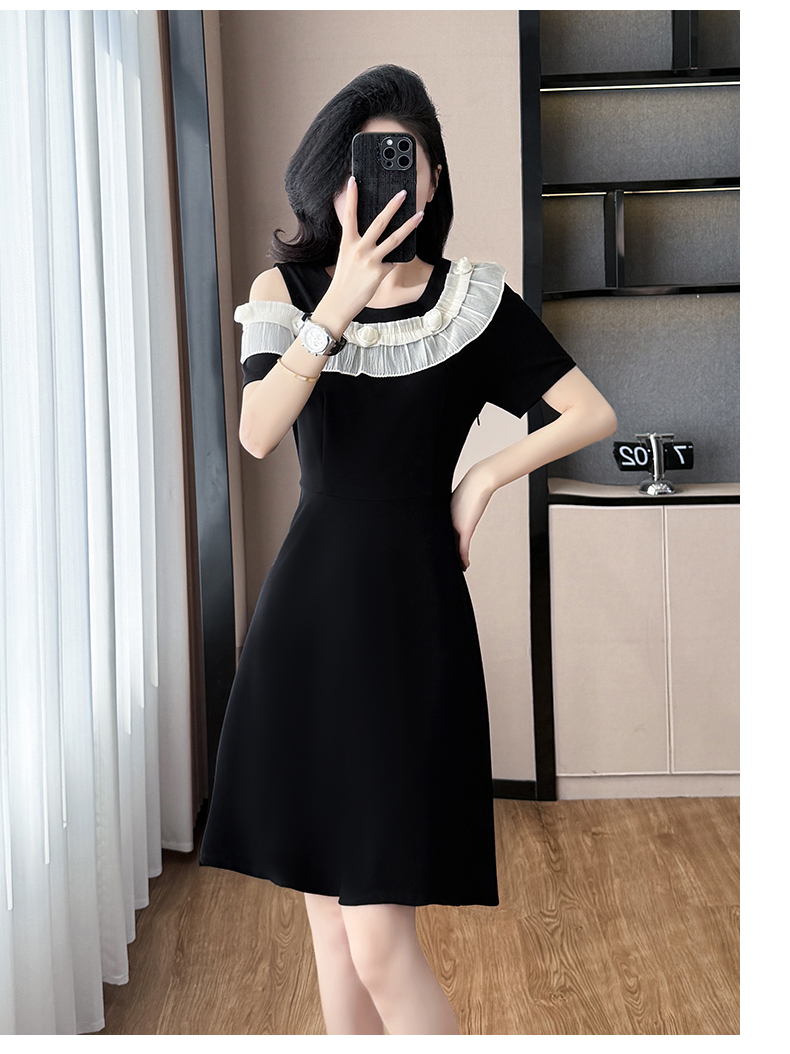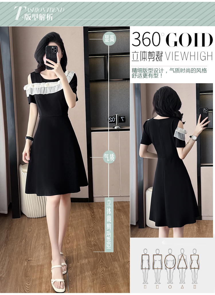 RY1545# 荷叶边拼接小香风洋气连衣裙2026夏季韩版时尚流行赫本风小黑裙女