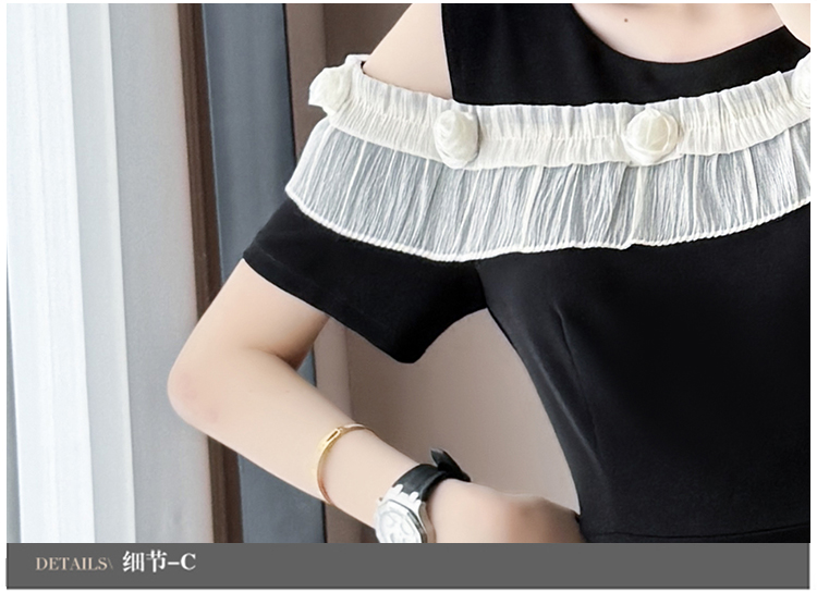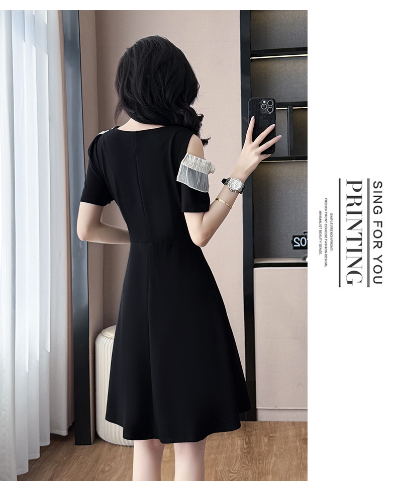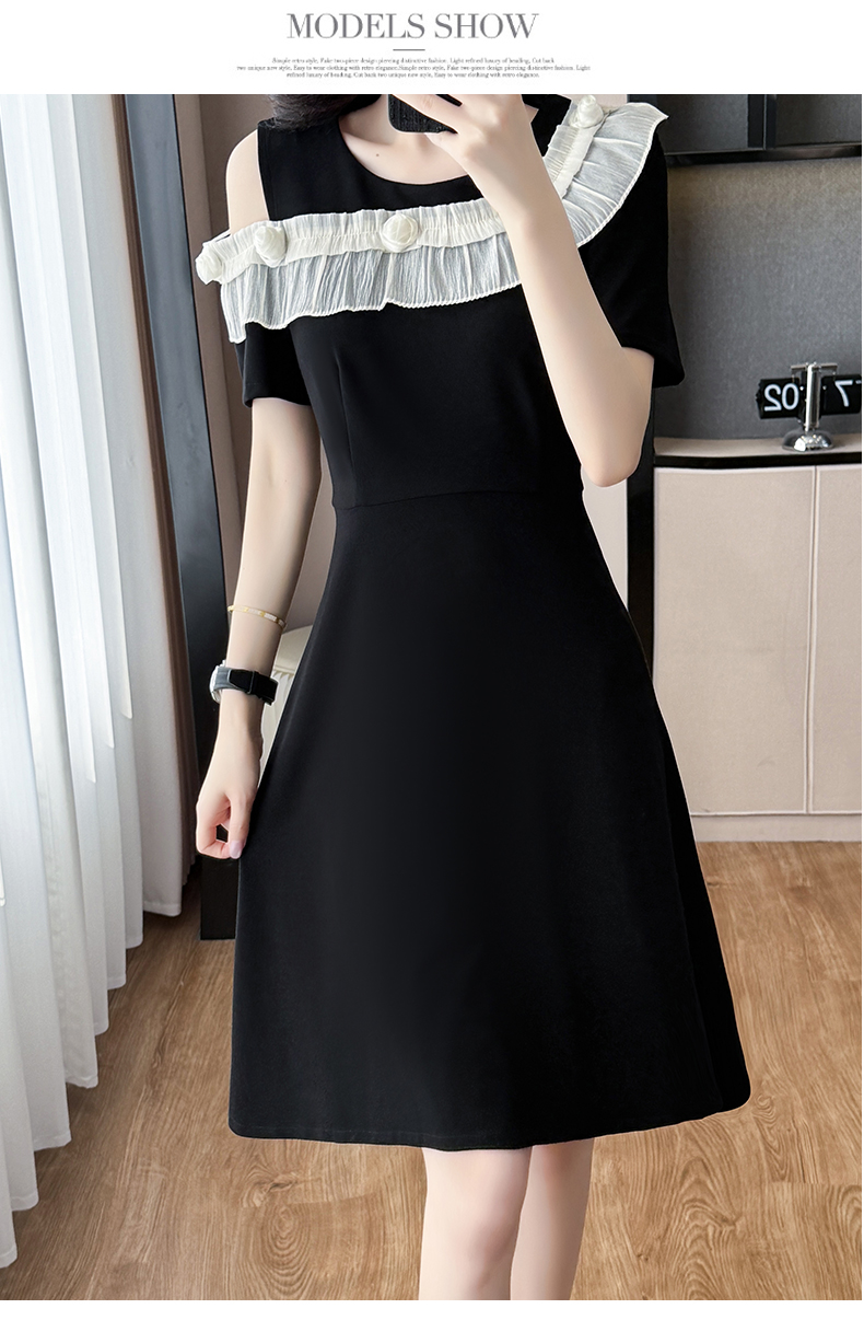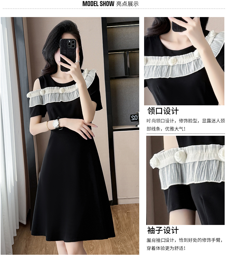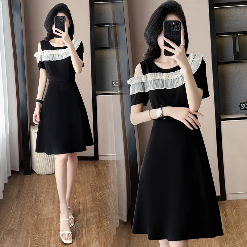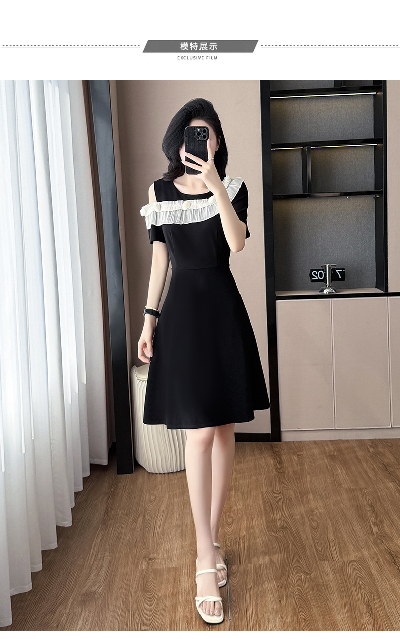 RY1545# 荷叶边拼接小香风洋气连衣裙2026夏季韩版时尚流行赫本风小黑裙女