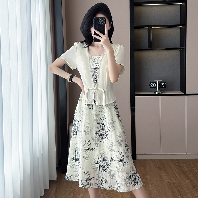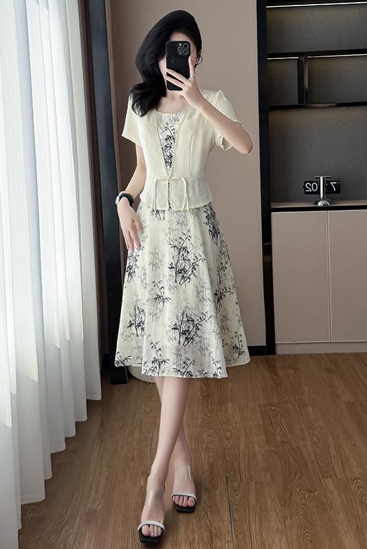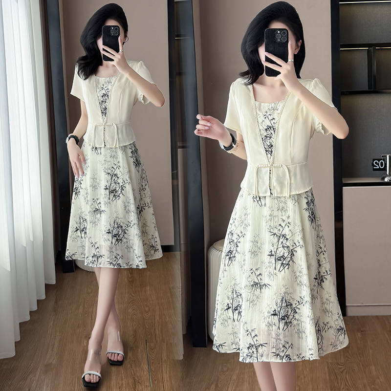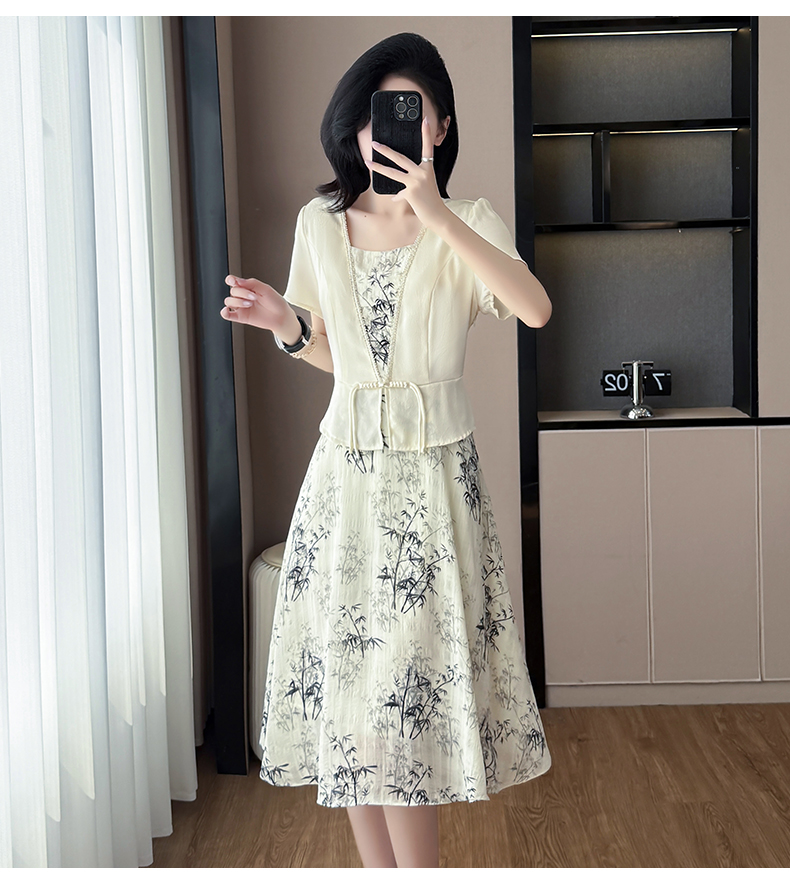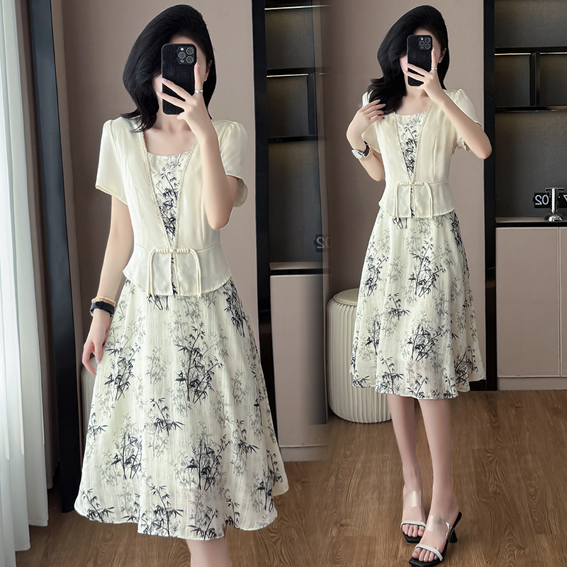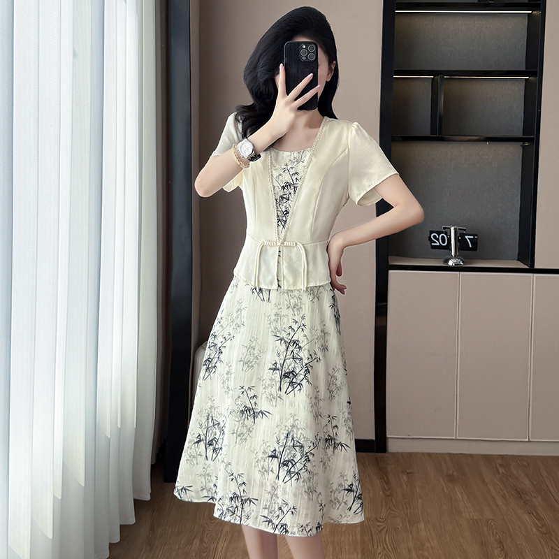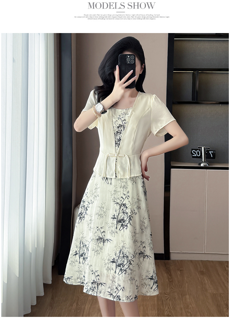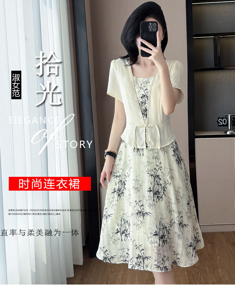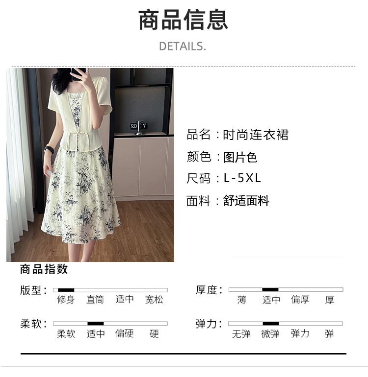RY1546# 大码女装2026夏季韩版气质洋气显瘦简约拼接时尚淑女短袖连衣裙女