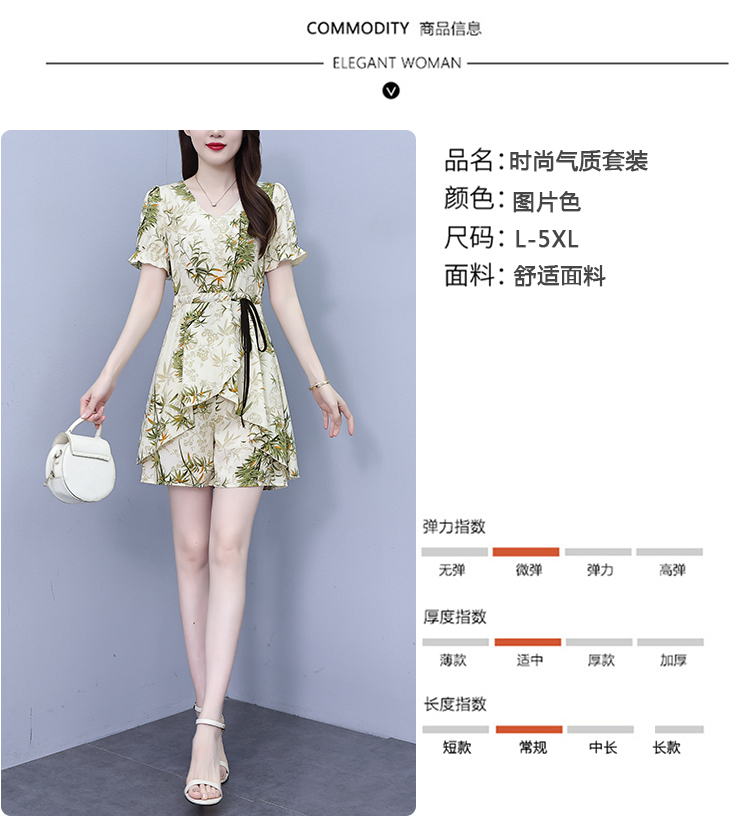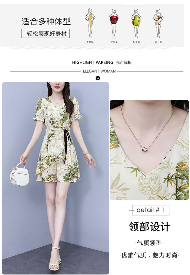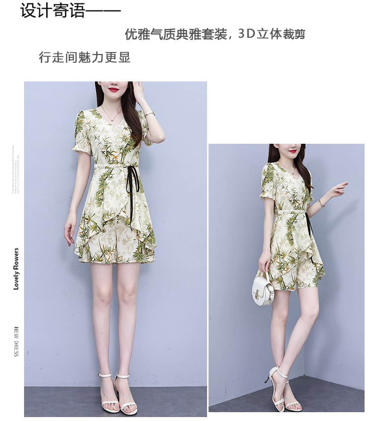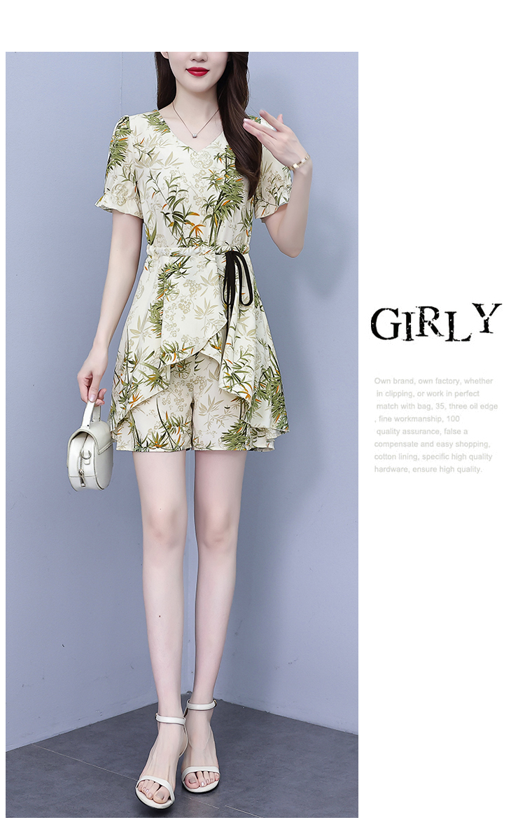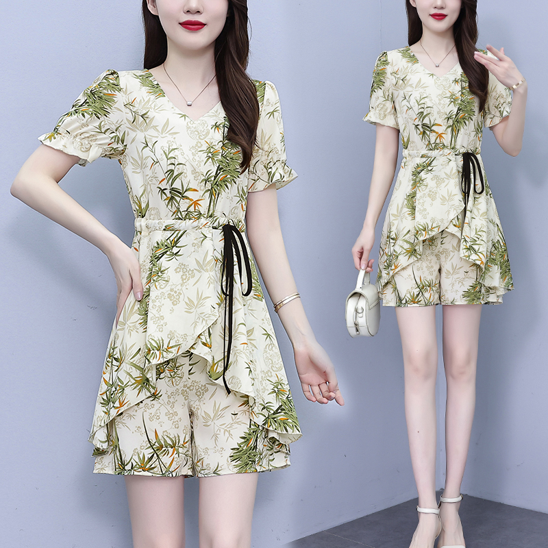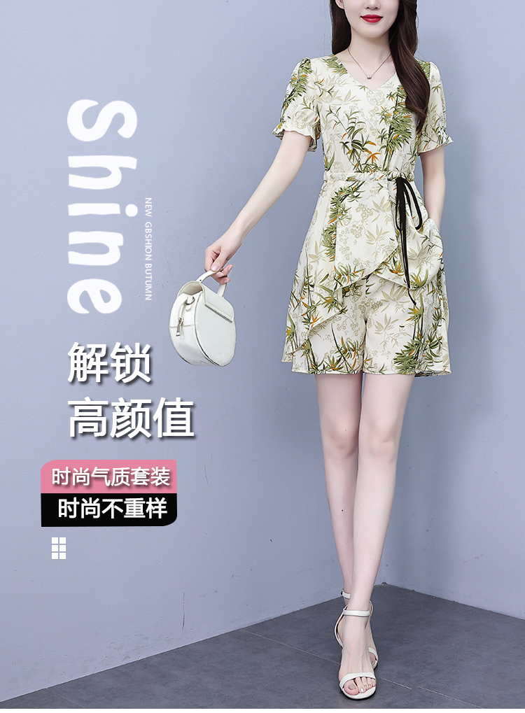 RY1547# 时尚套装2026夏季韩版印花显瘦气质宽松遮肚洋气上衣+短裤两件套