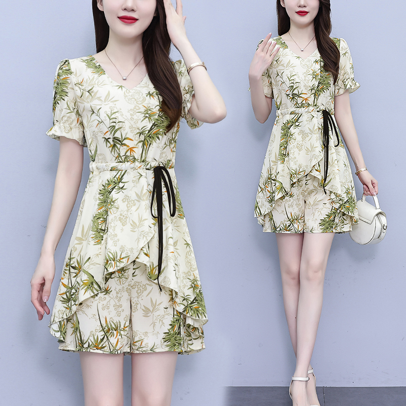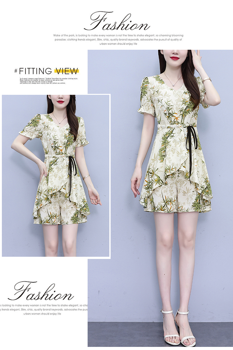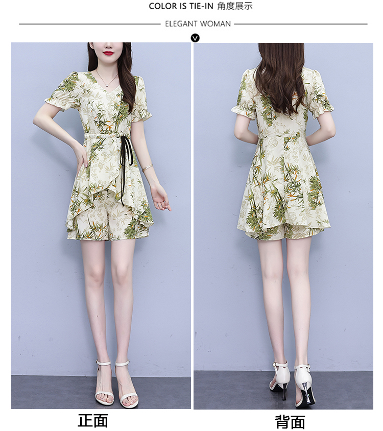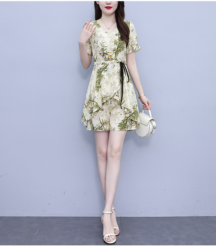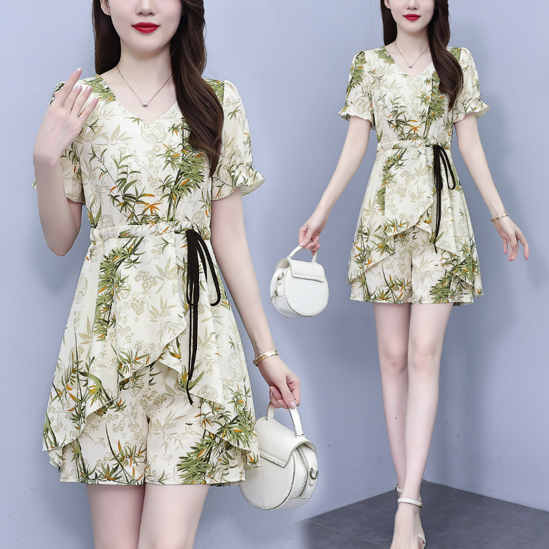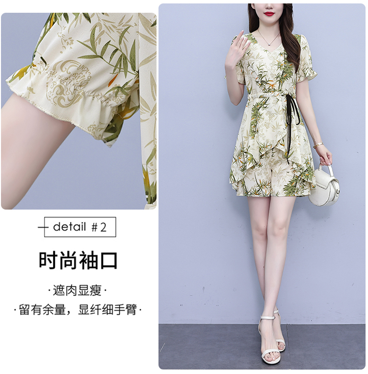 RY1547# 时尚套装2026夏季韩版印花显瘦气质宽松遮肚洋气上衣+短裤两件套