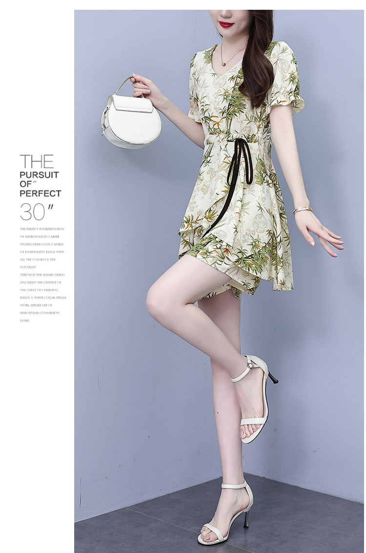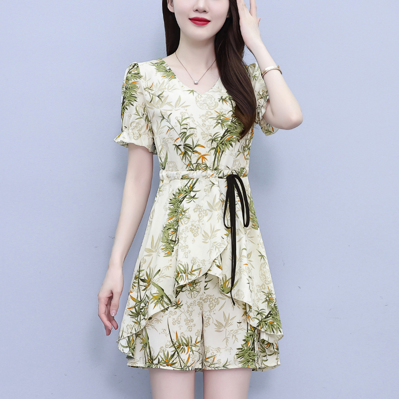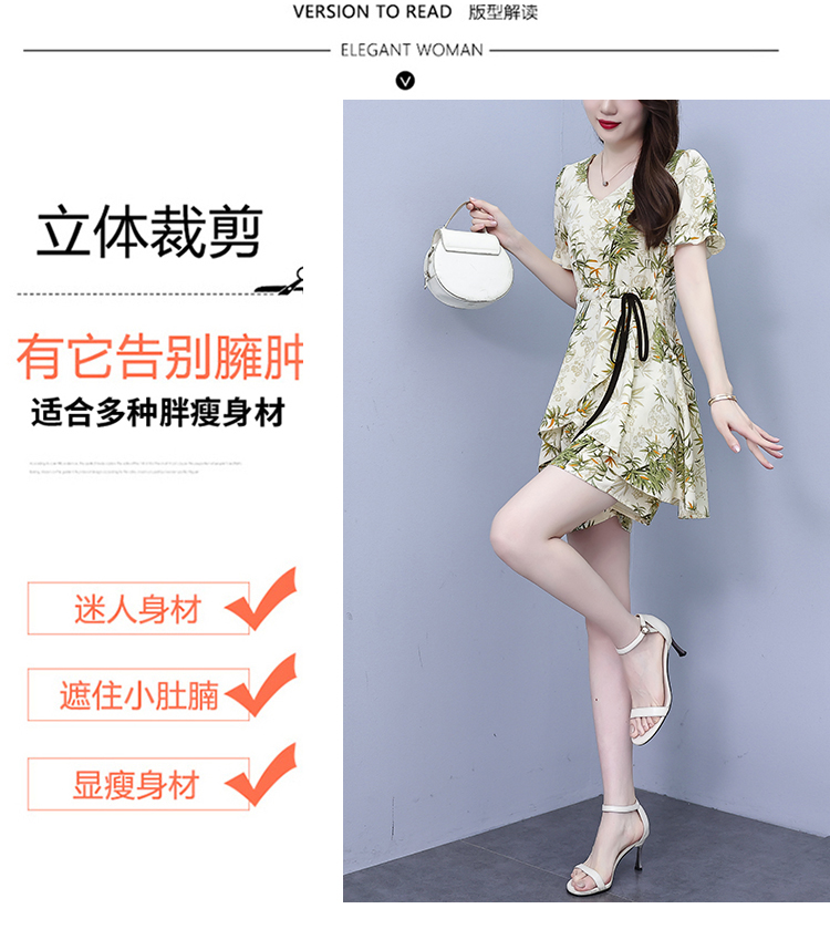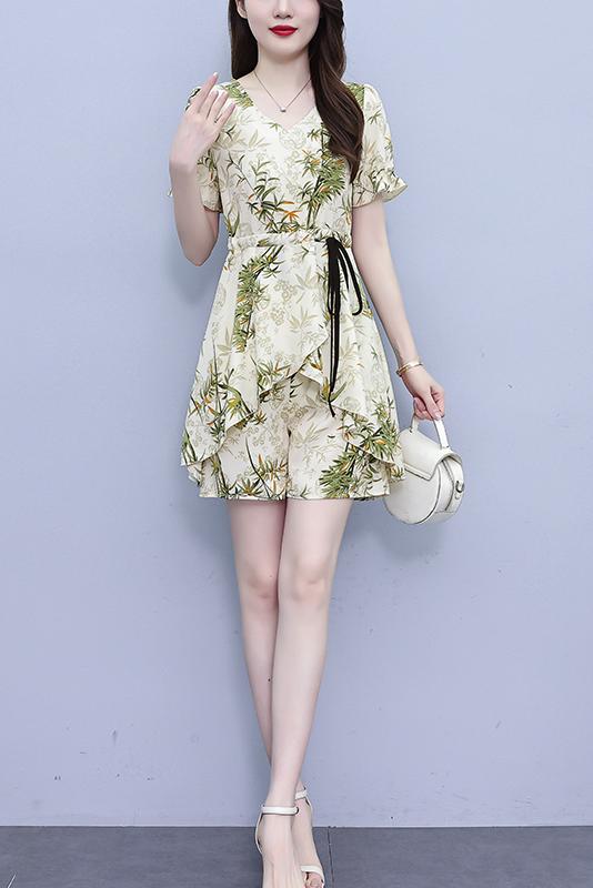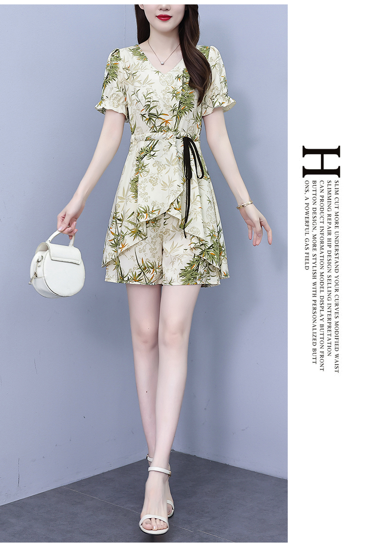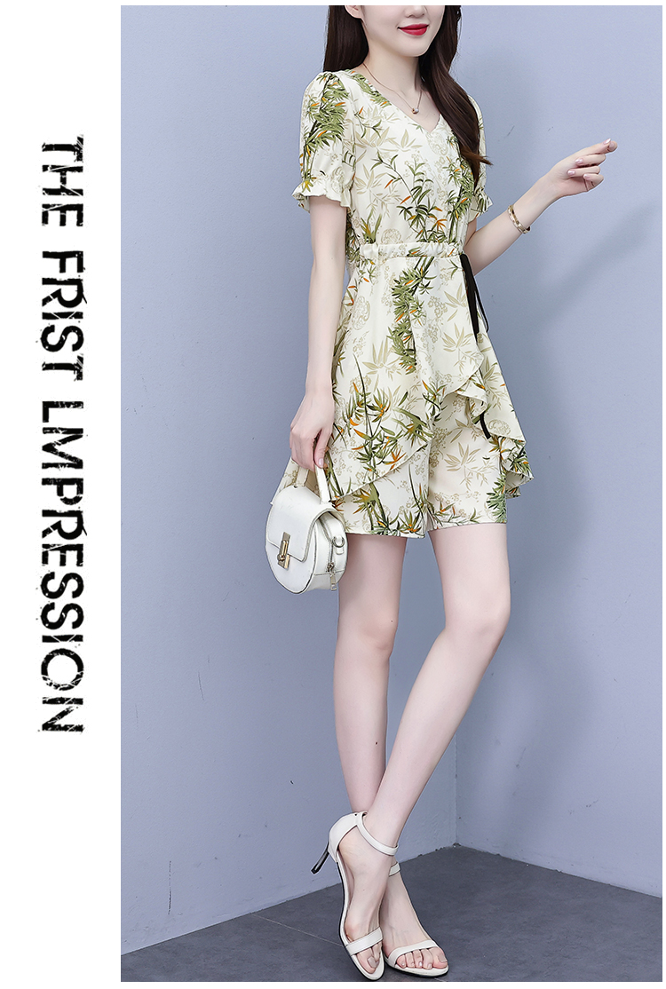 RY1547# 时尚套装2026夏季韩版印花显瘦气质宽松遮肚洋气上衣+短裤两件套