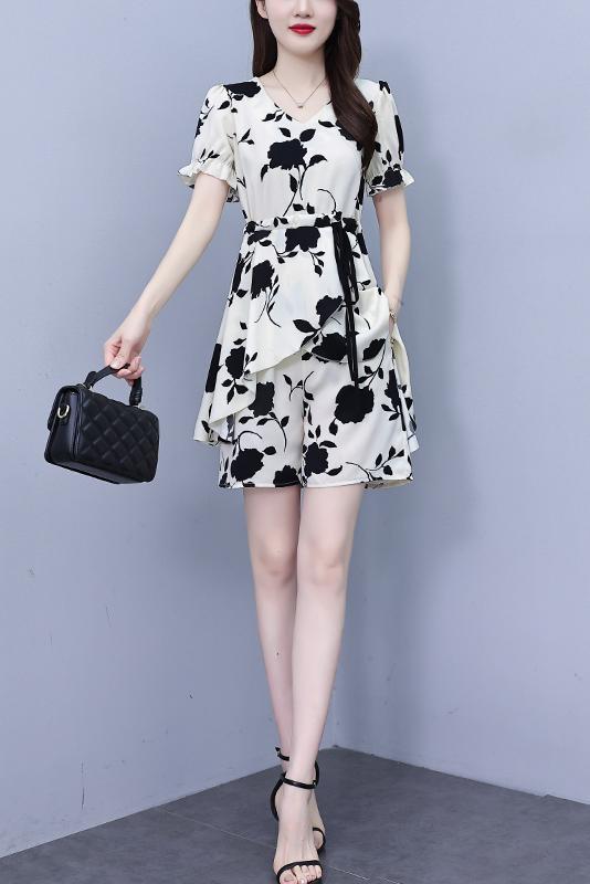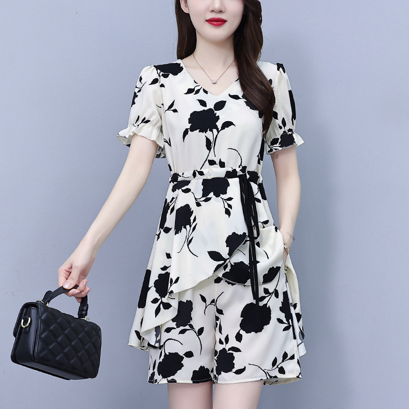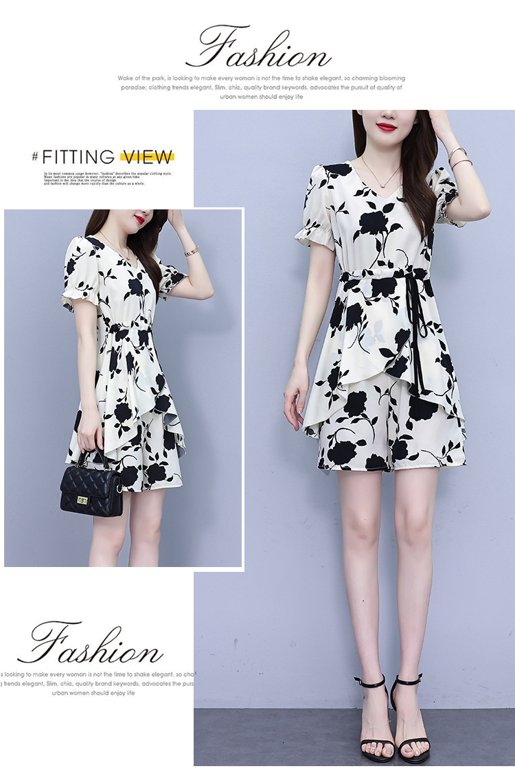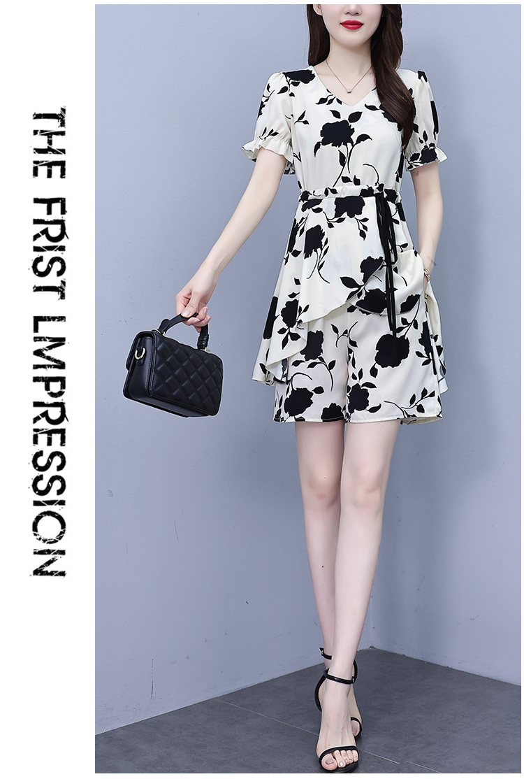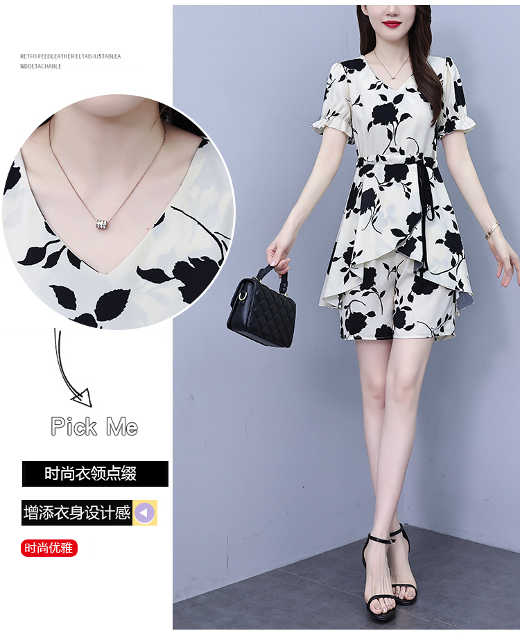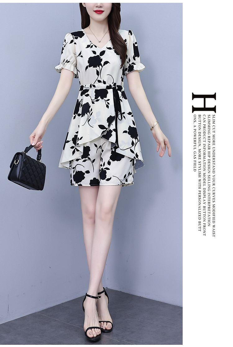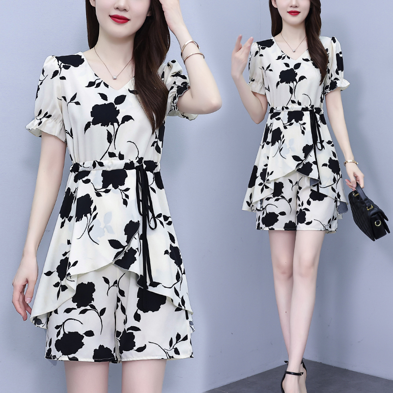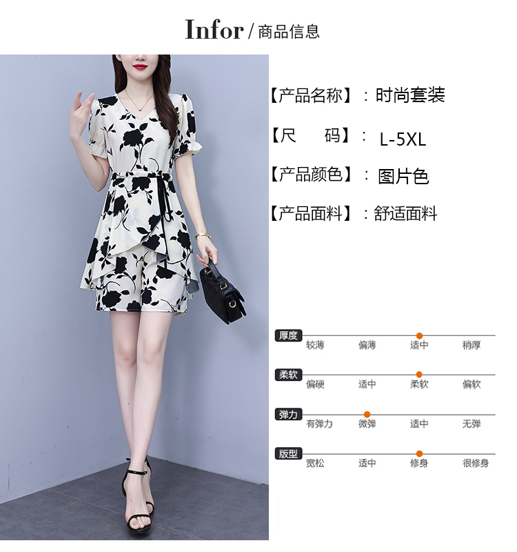 RY1548# 时尚套装2026夏季韩版印花显瘦气质宽松遮肚洋气上衣+短裤两件套