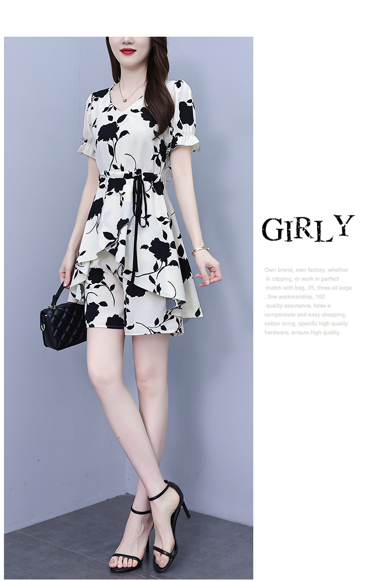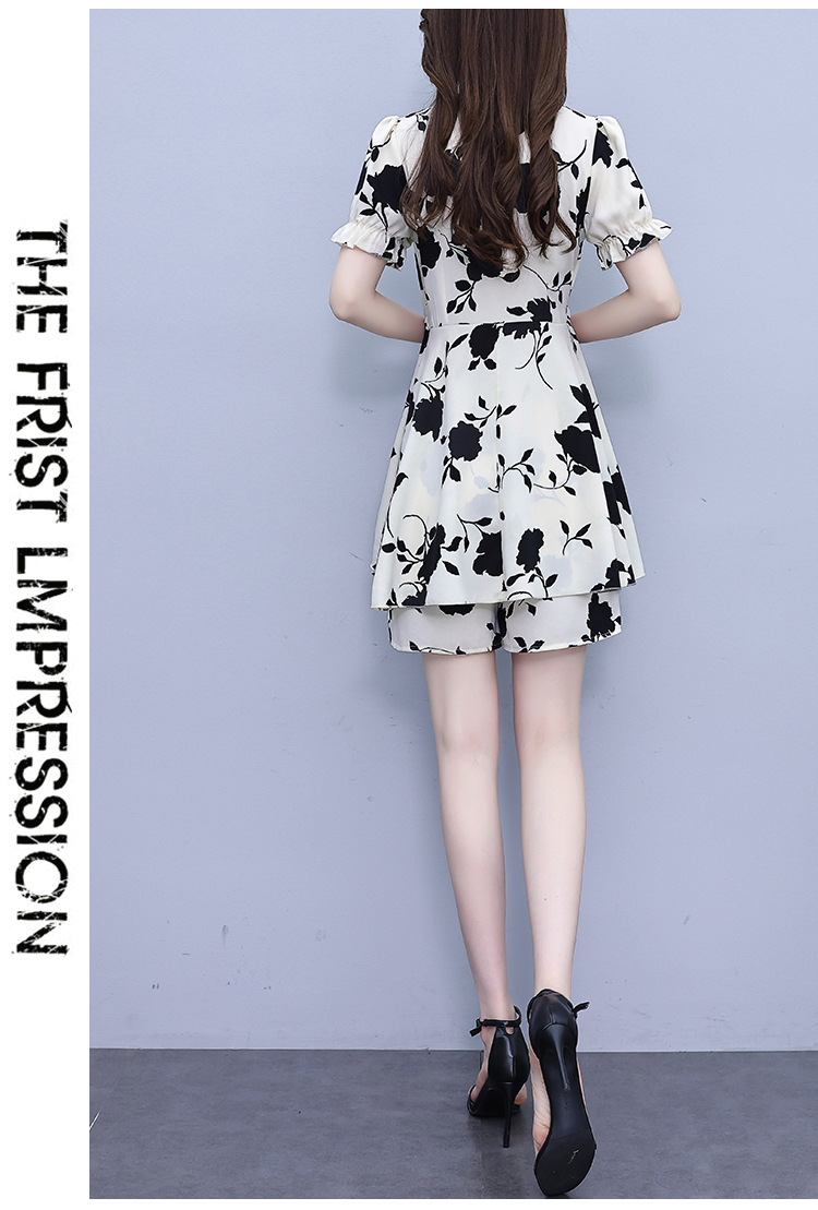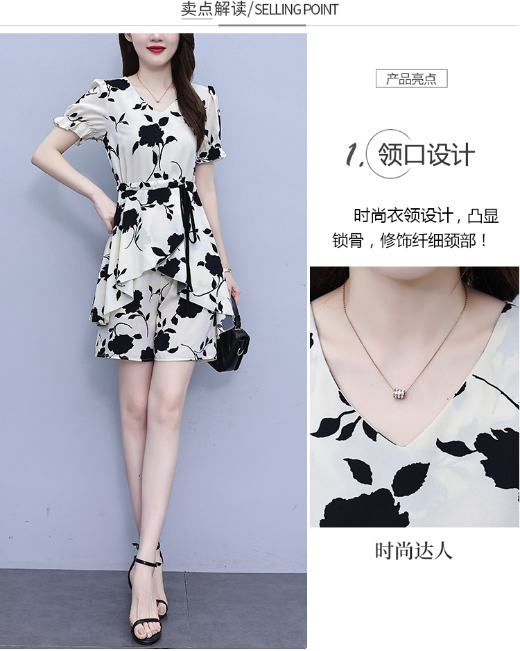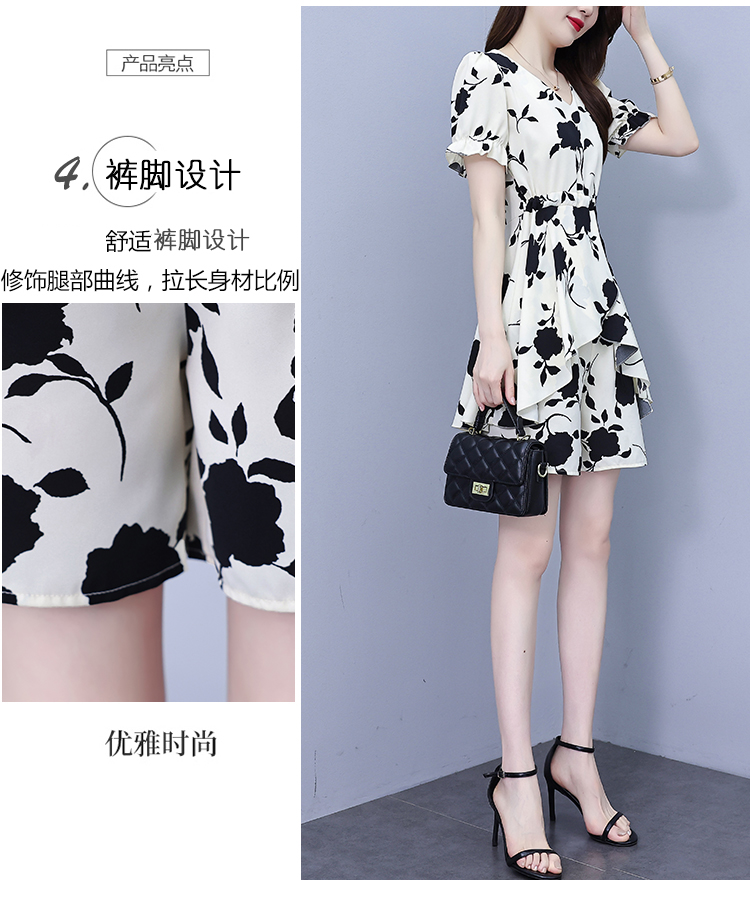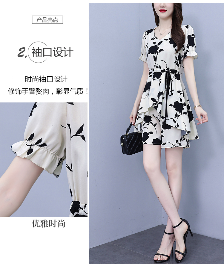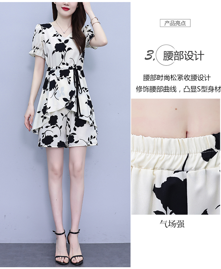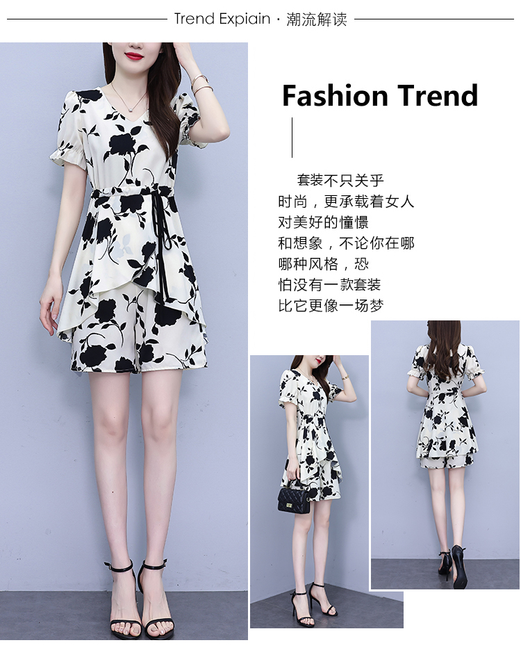 RY1548# 时尚套装2026夏季韩版印花显瘦气质宽松遮肚洋气上衣+短裤两件套