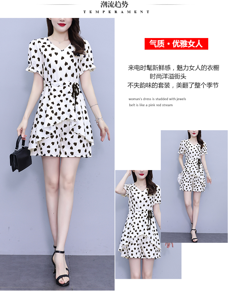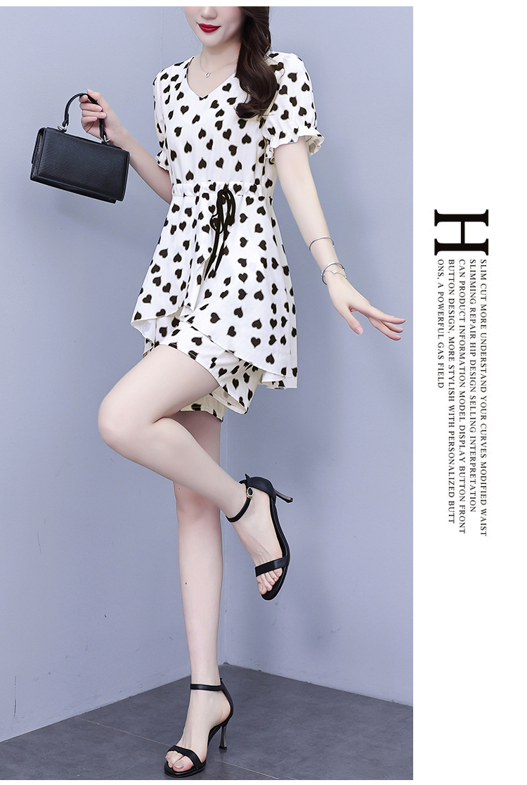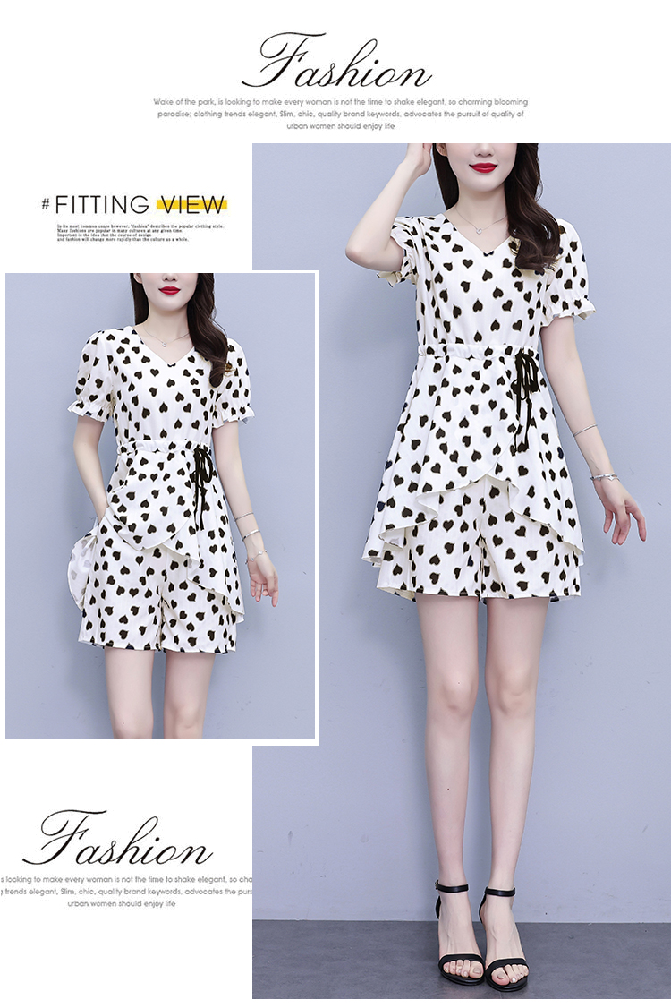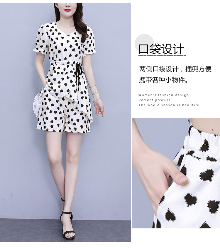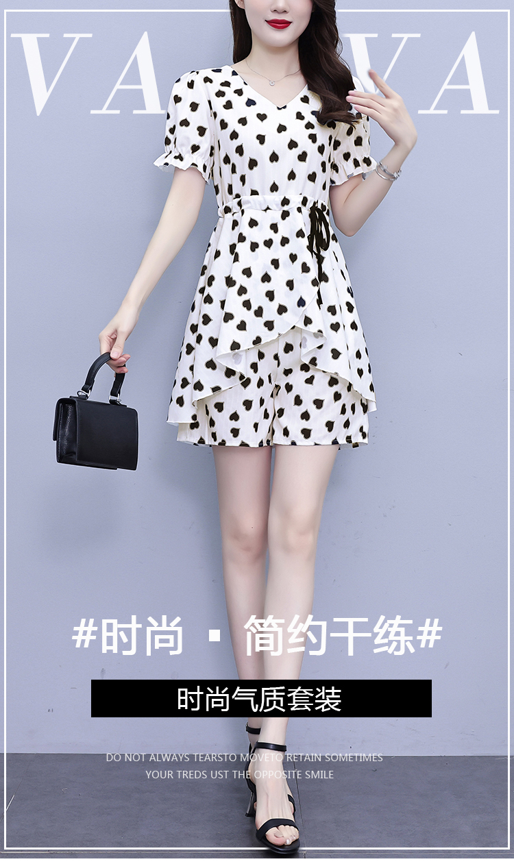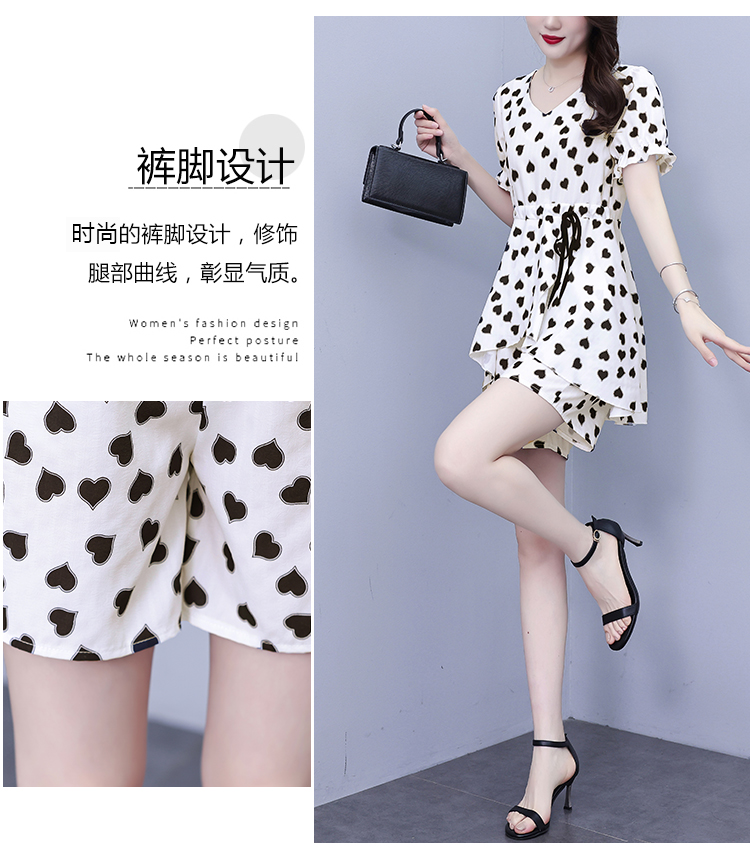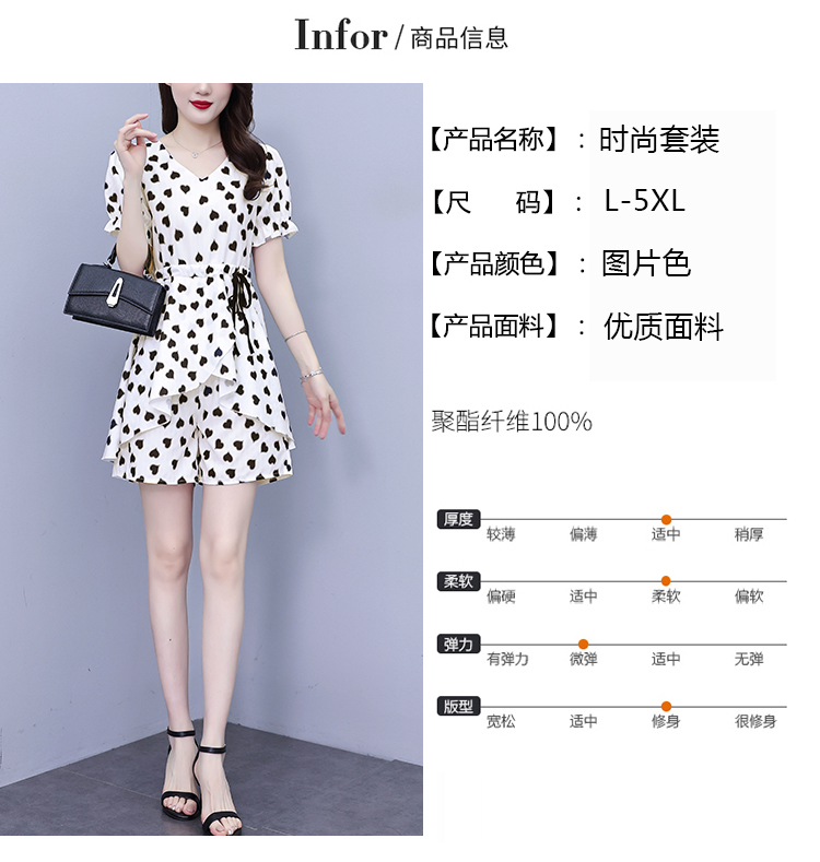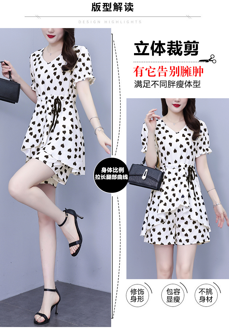 RY1553# 大码女装2026夏季V领时尚印花显瘦气质洋气上衣+短裤两件套套装