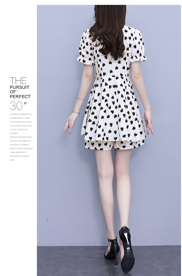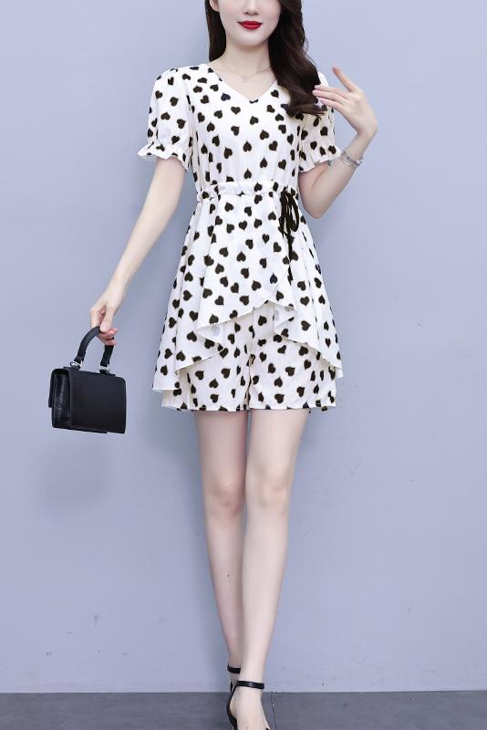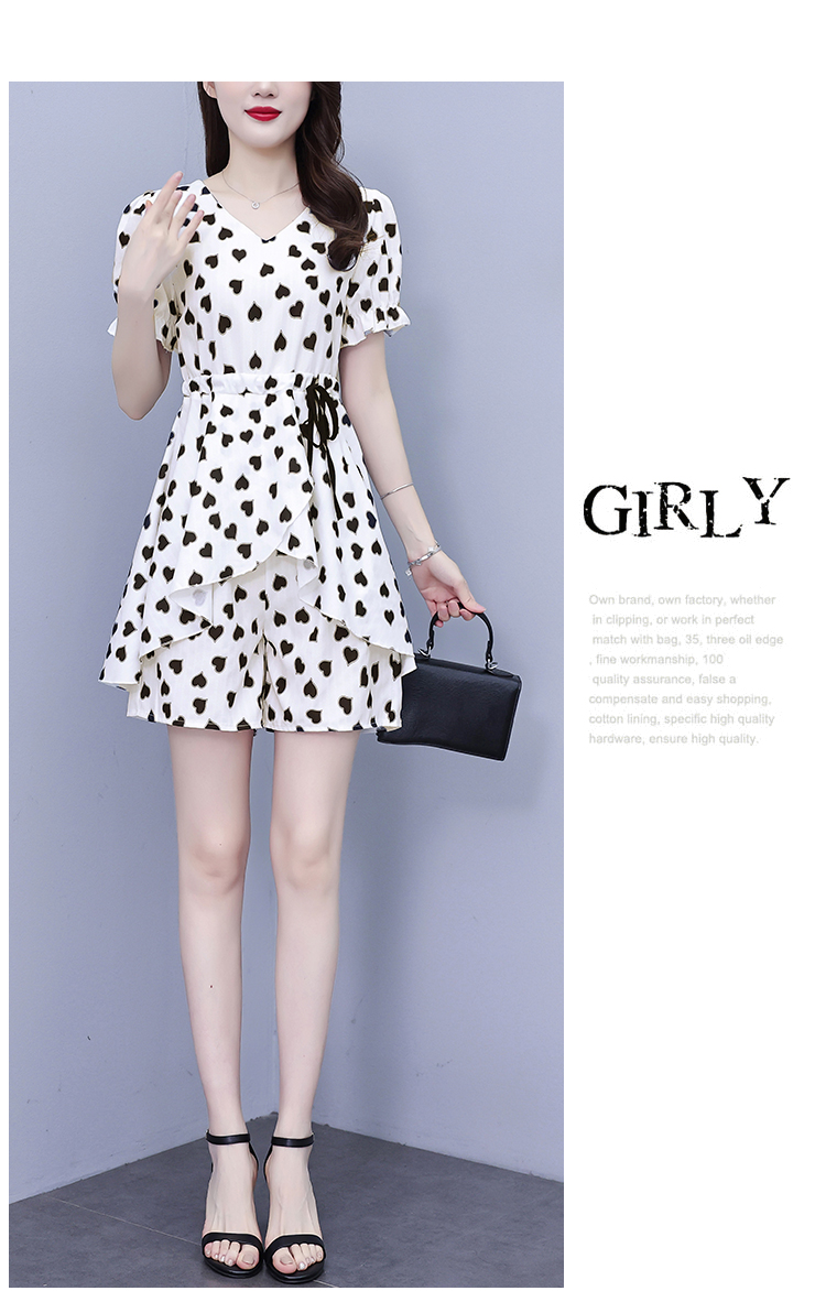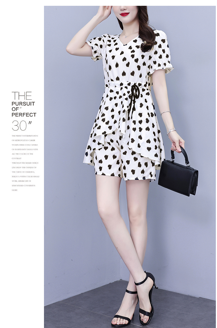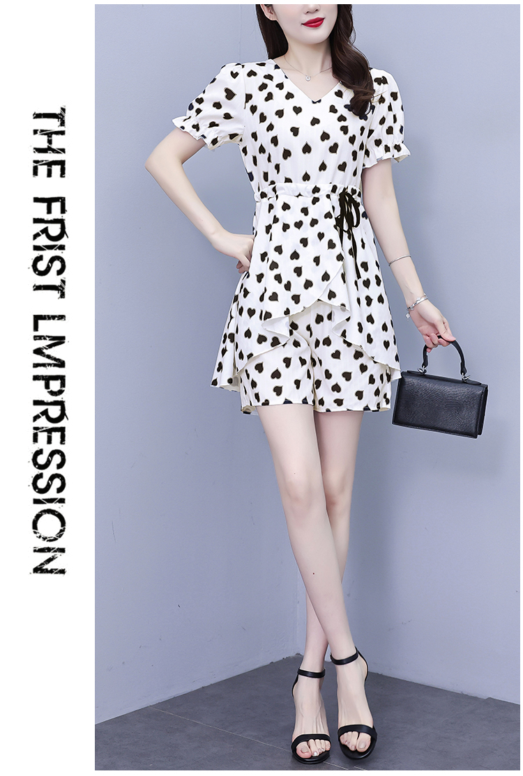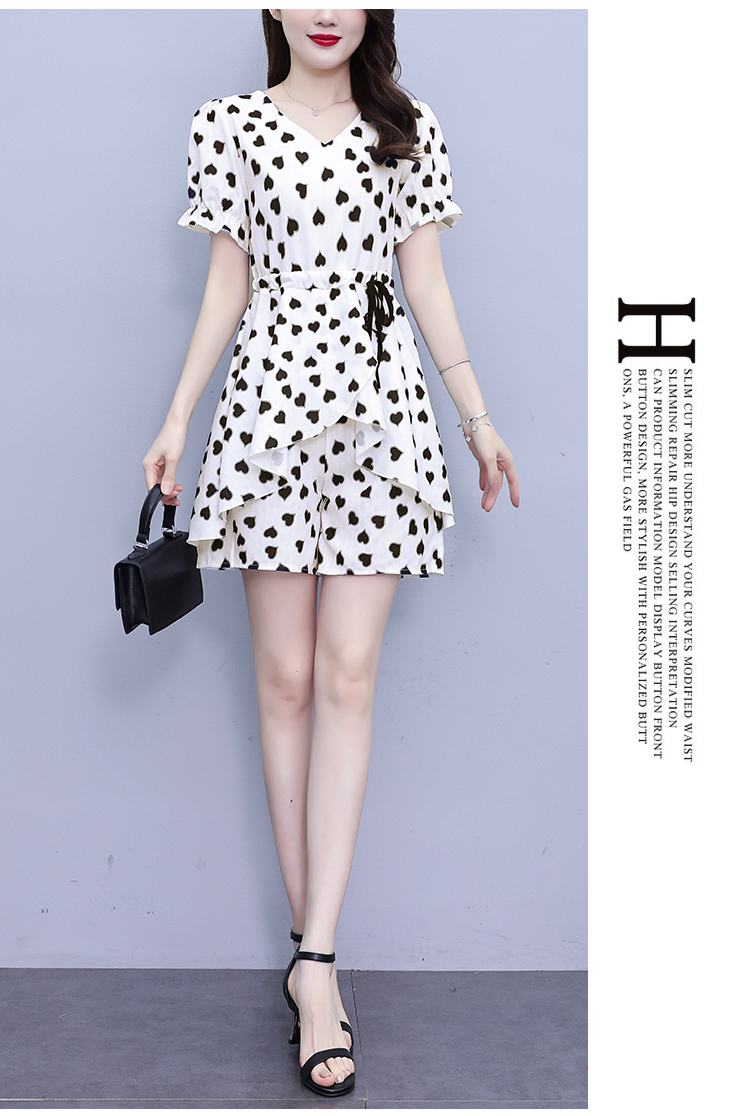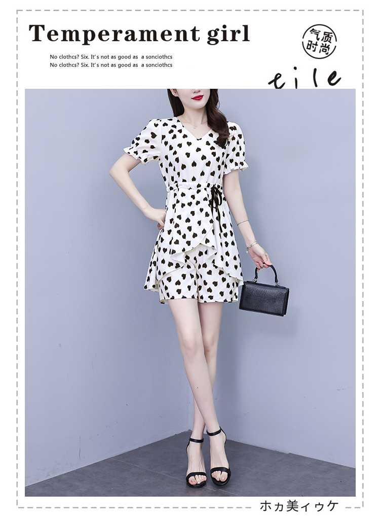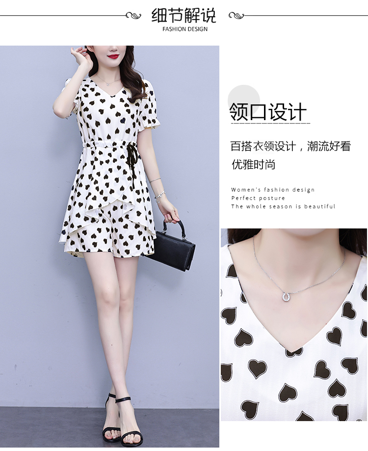 RY1553# 大码女装2026夏季V领时尚印花显瘦气质洋气上衣+短裤两件套套装