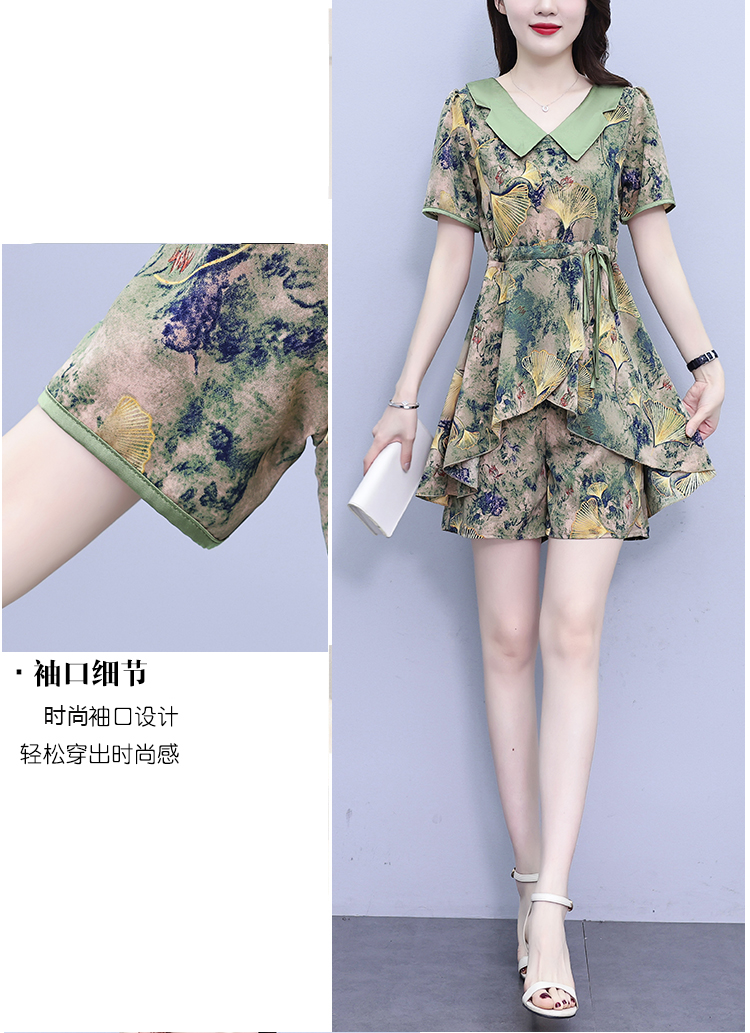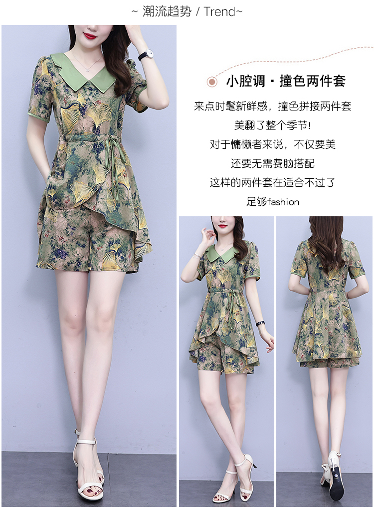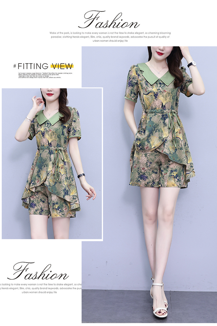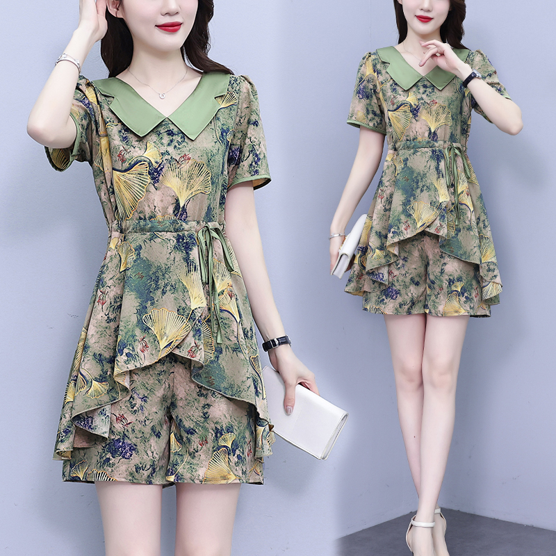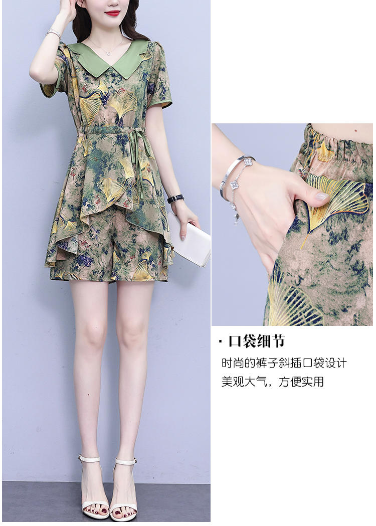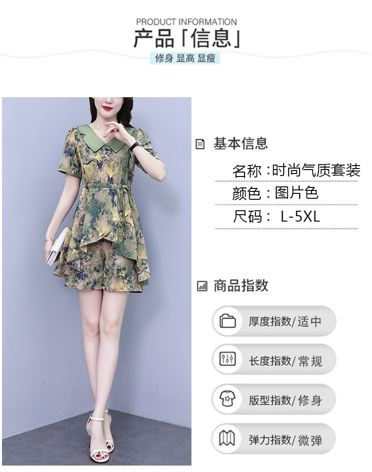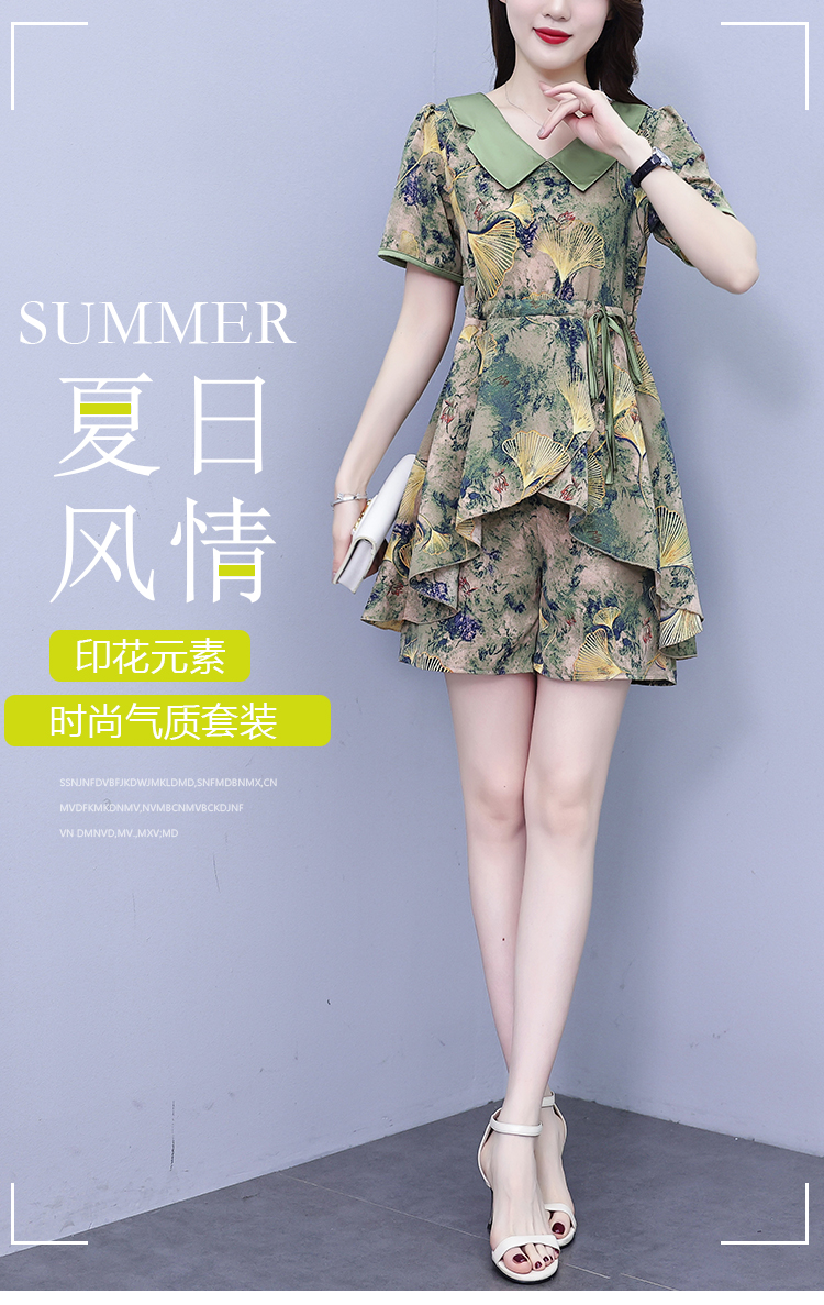RY1554# 大码套装2026夏季中国风时尚印花显瘦系带洋气上衣+短裤两件套女