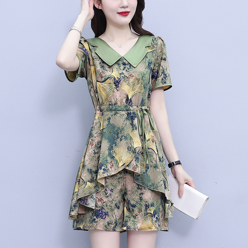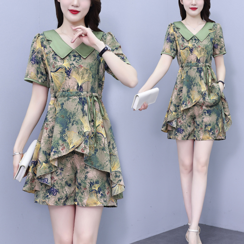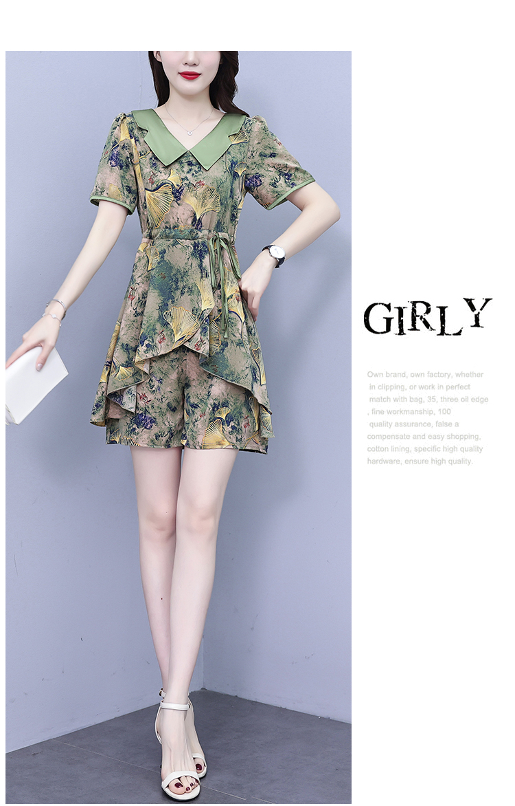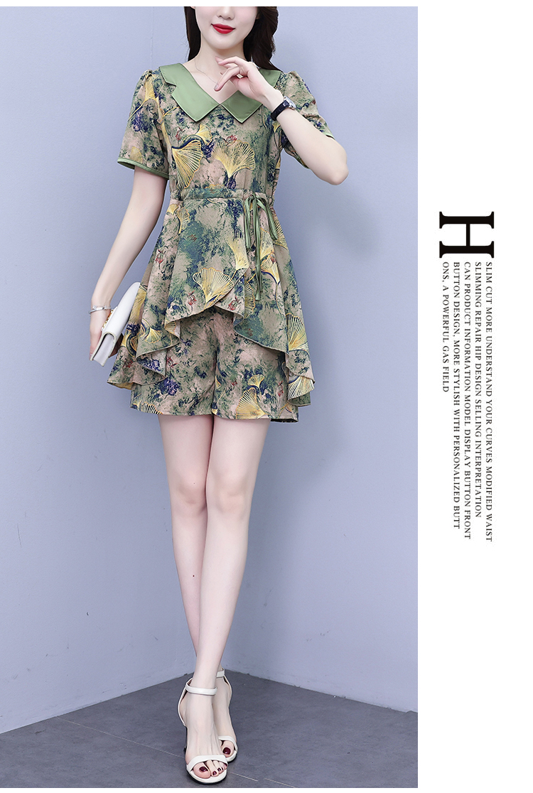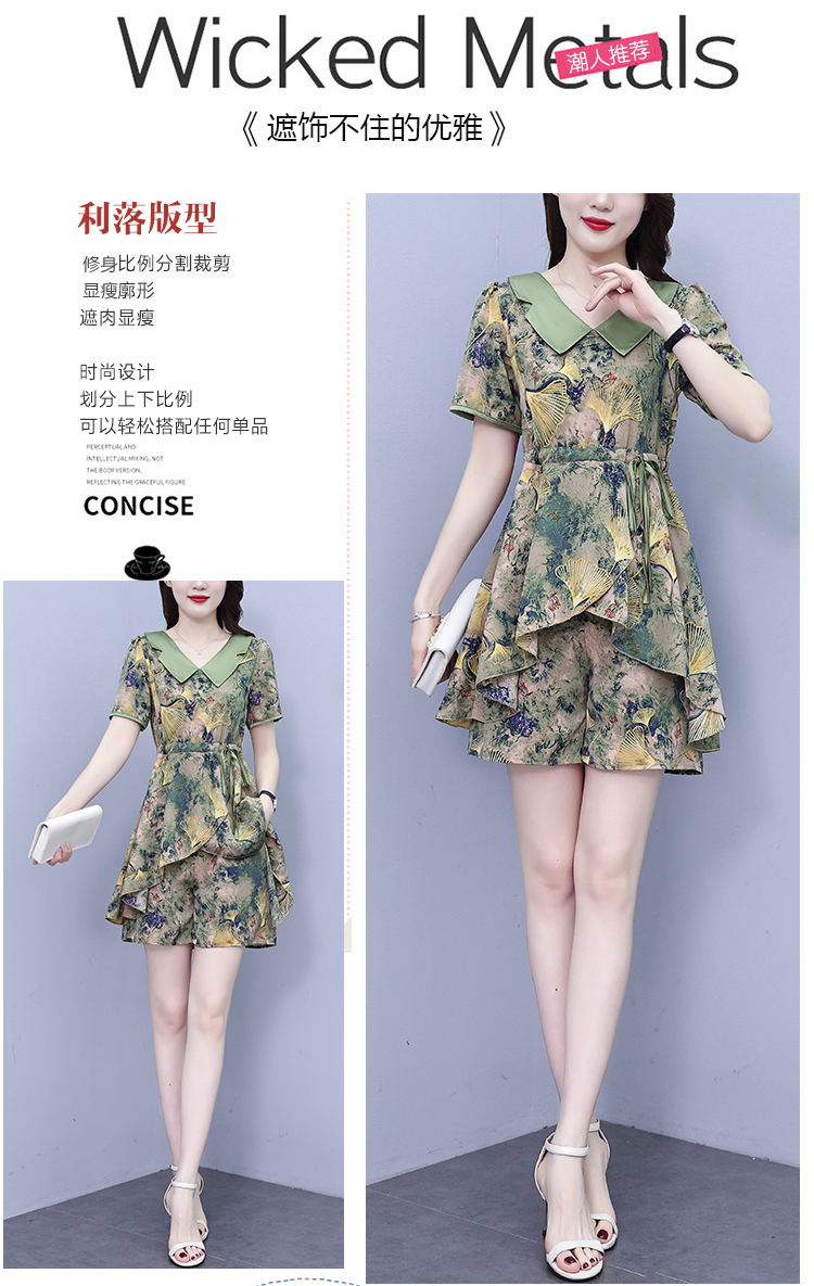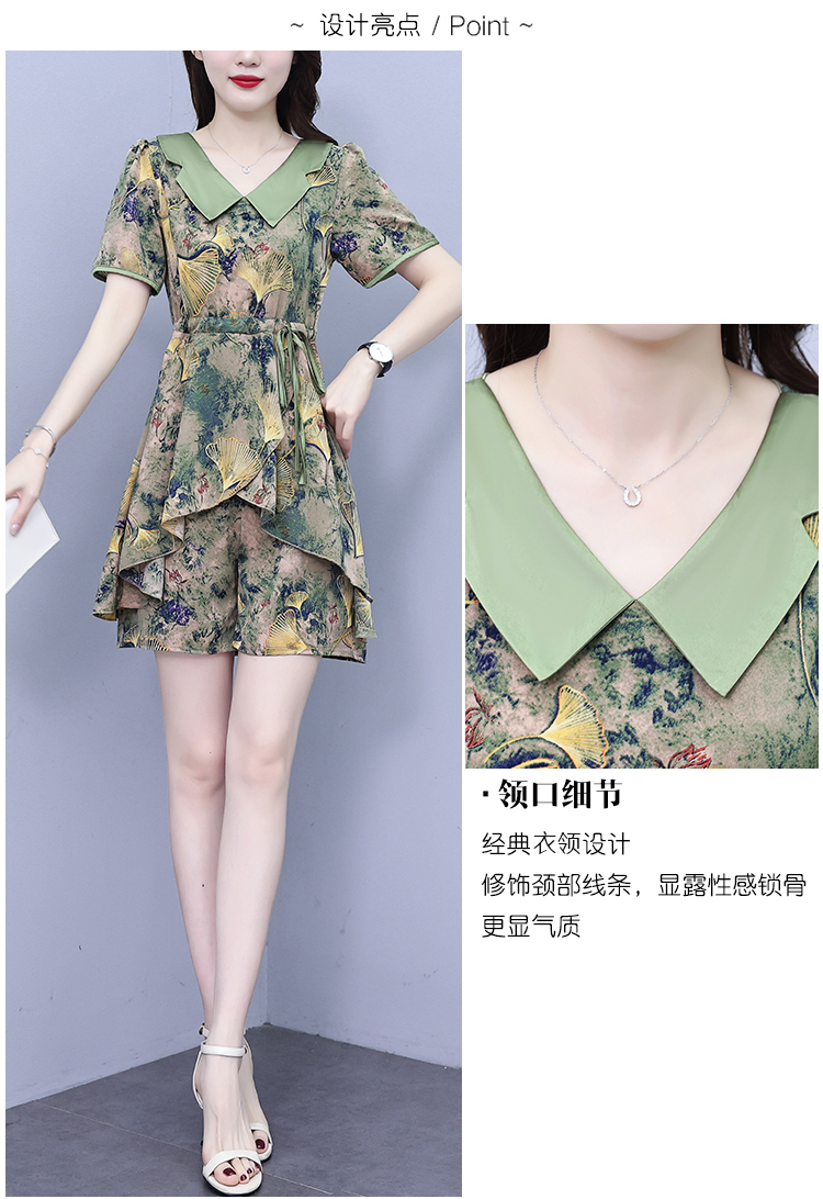 RY1554# 大码套装2026夏季中国风时尚印花显瘦系带洋气上衣+短裤两件套女