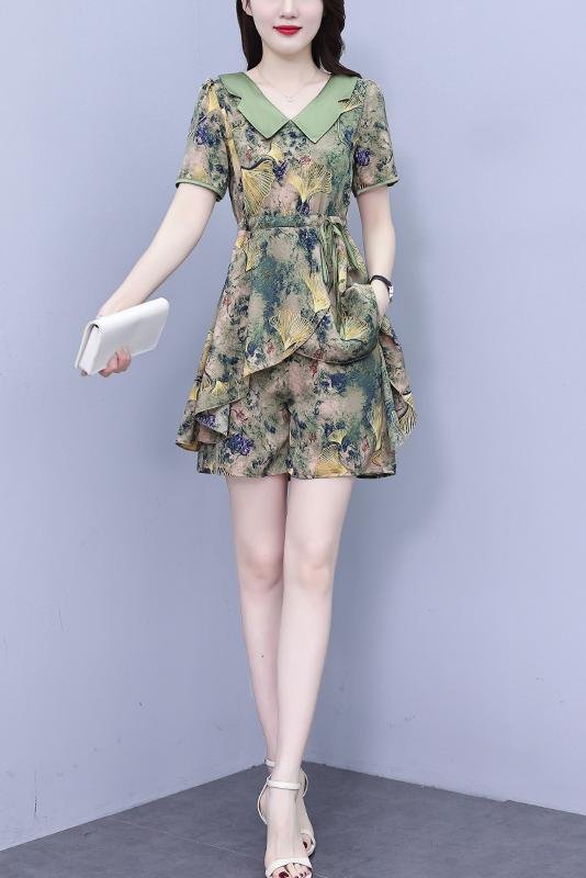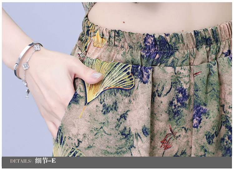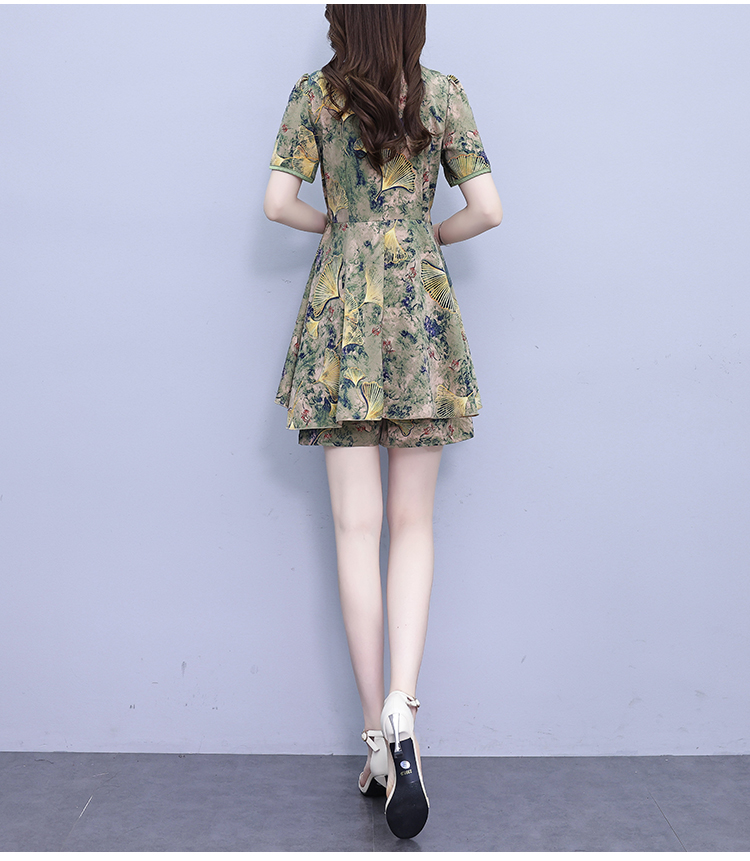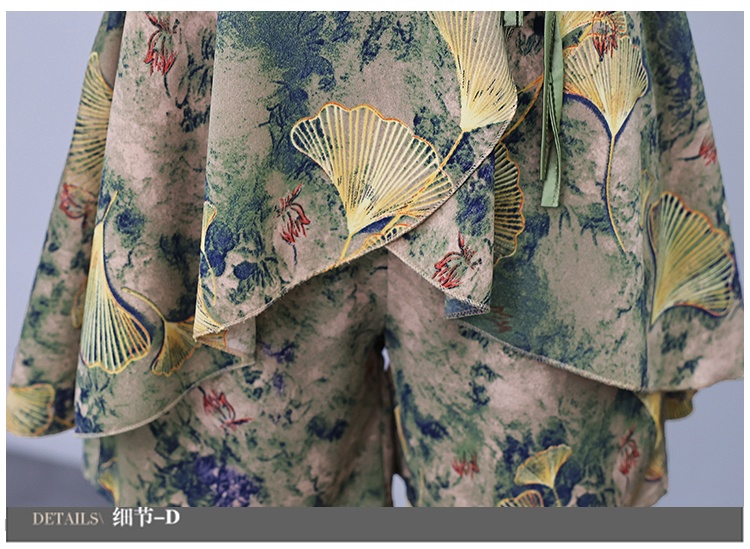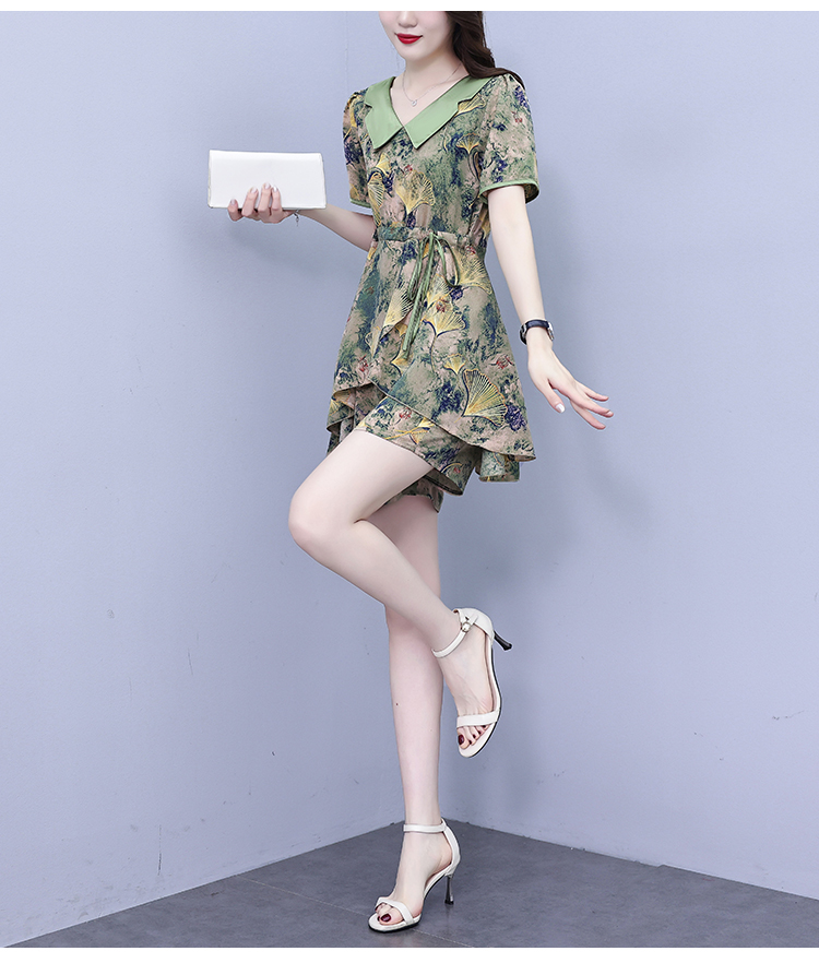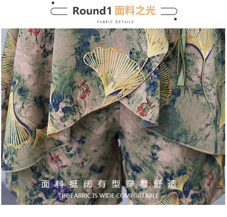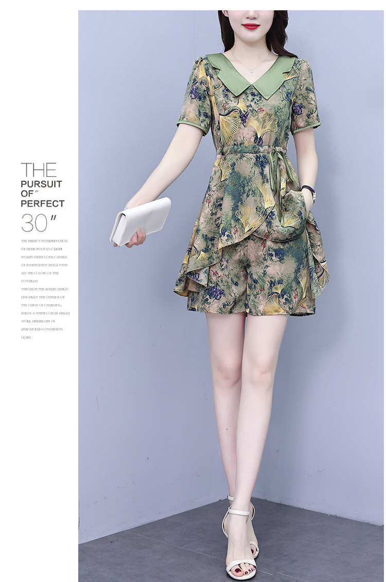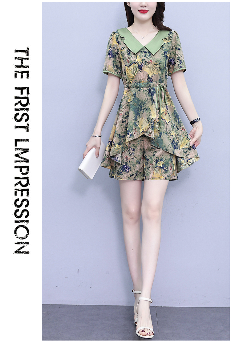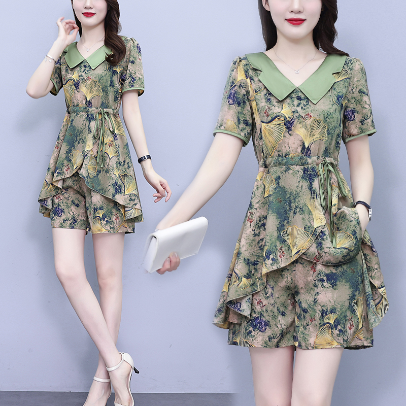 RY1554# 大码套装2026夏季中国风时尚印花显瘦系带洋气上衣+短裤两件套女