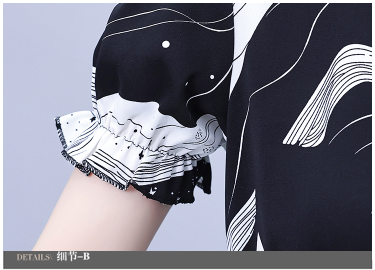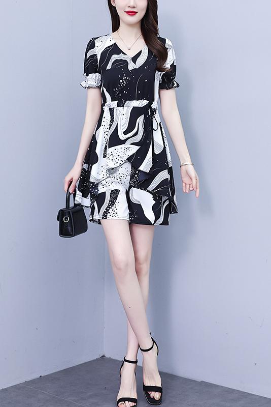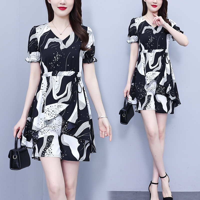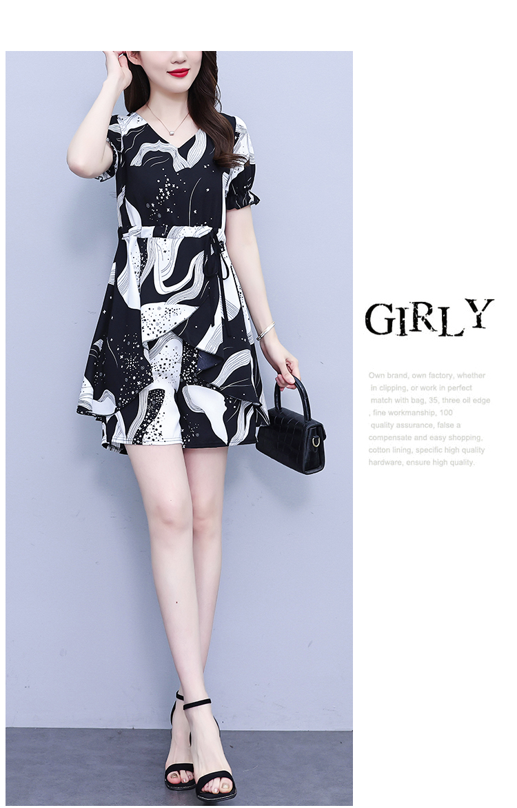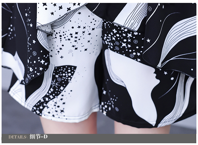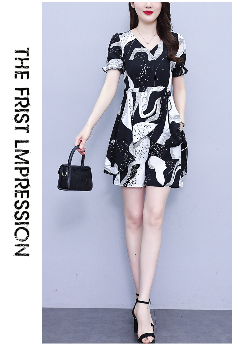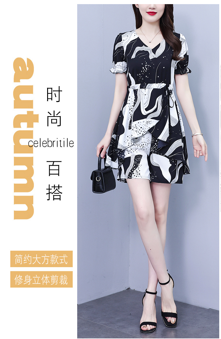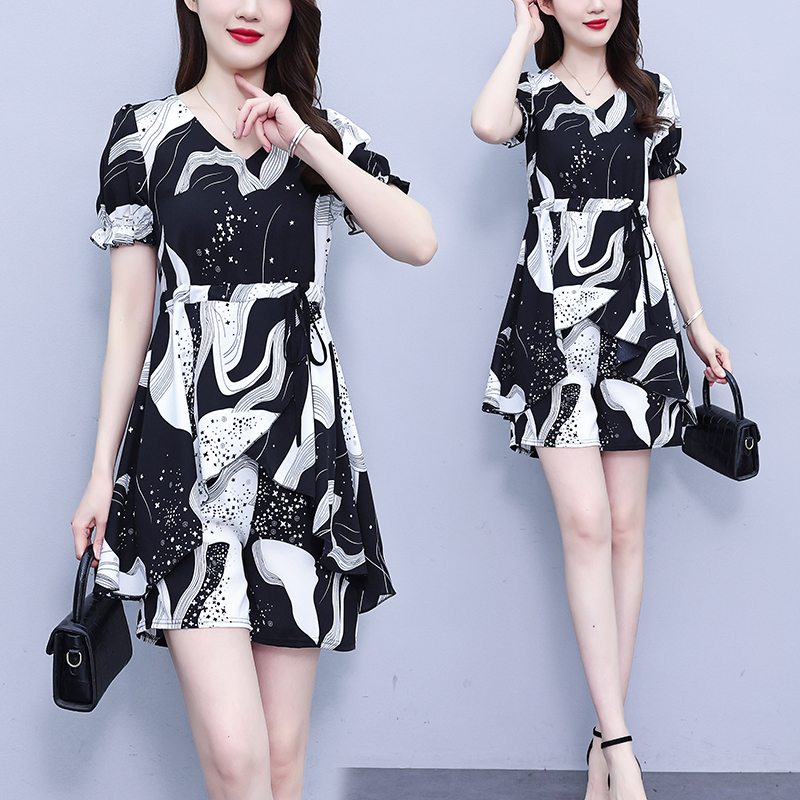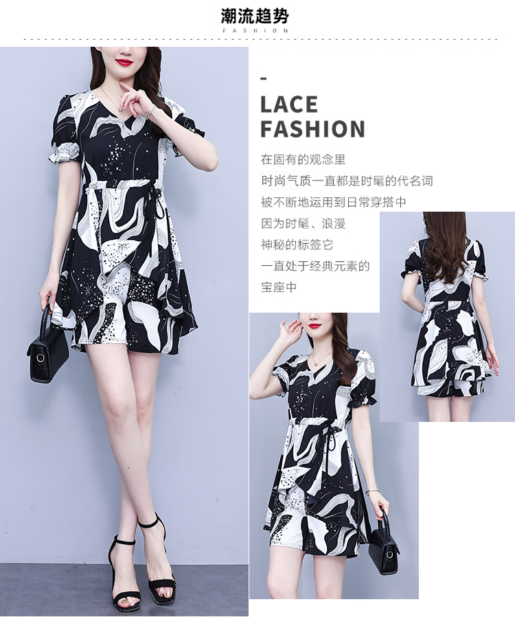 RY1556# 大码女装2026夏季V领气质水墨印花显瘦时尚上衣+短裤两件套套装