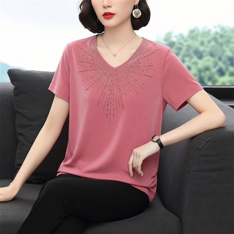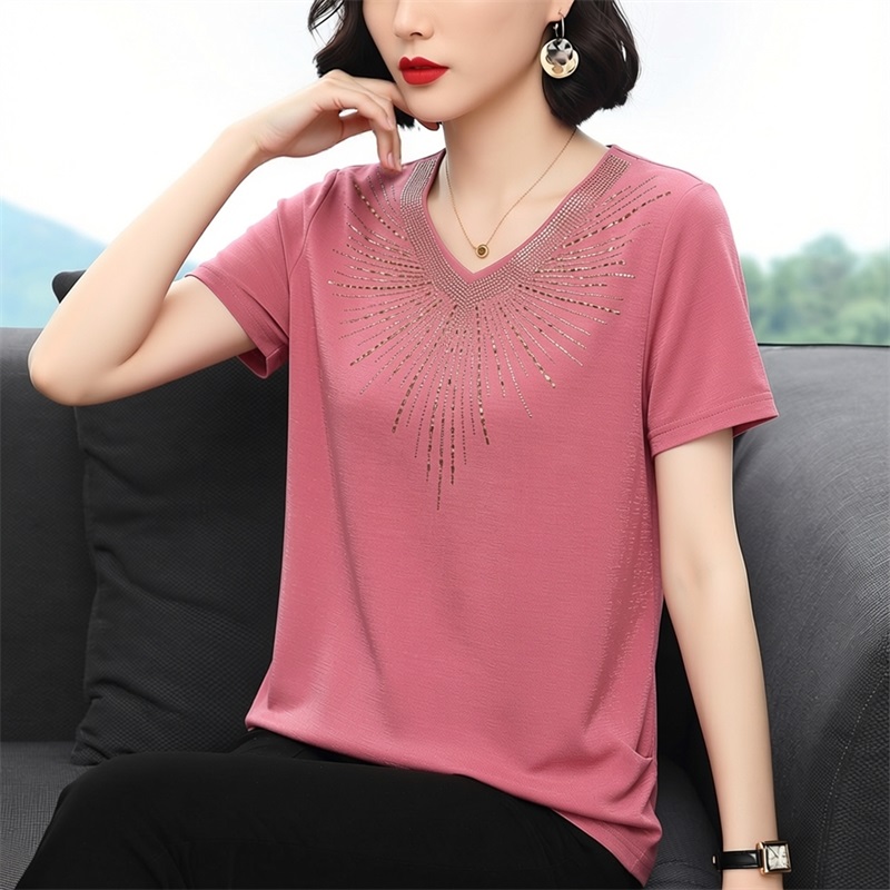 RY1610# 实拍女士短袖t恤宽松显瘦2026夏装新款休闲大码时尚小衫中年妈妈