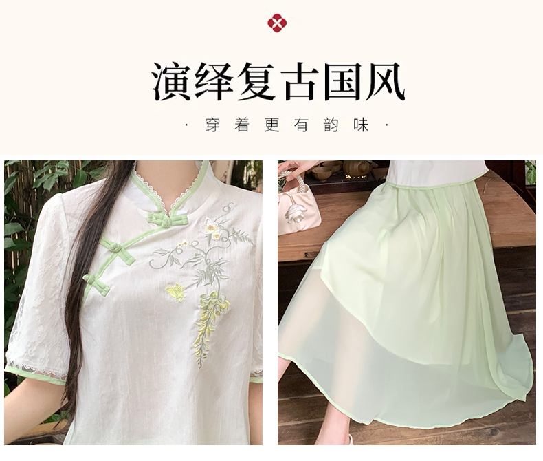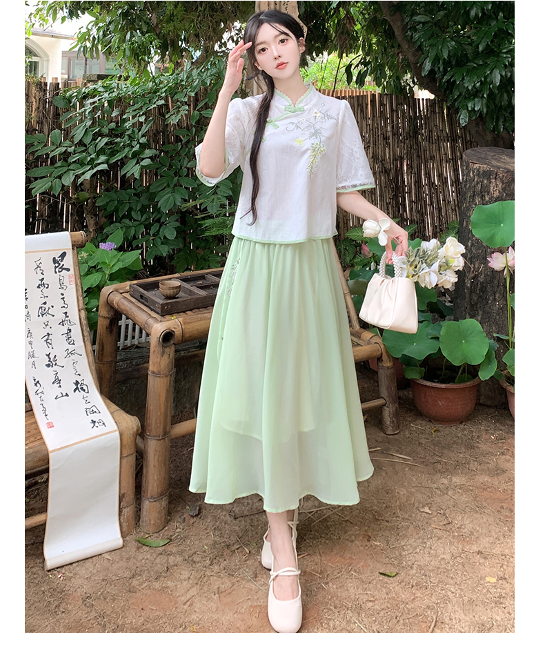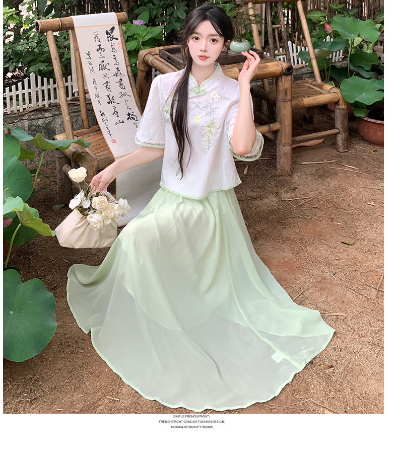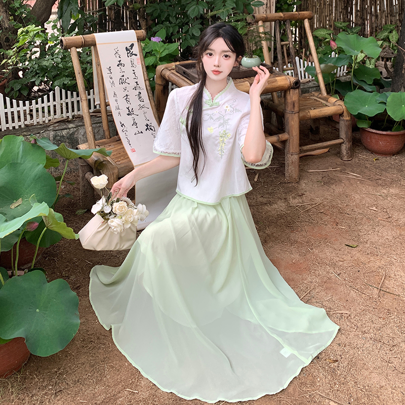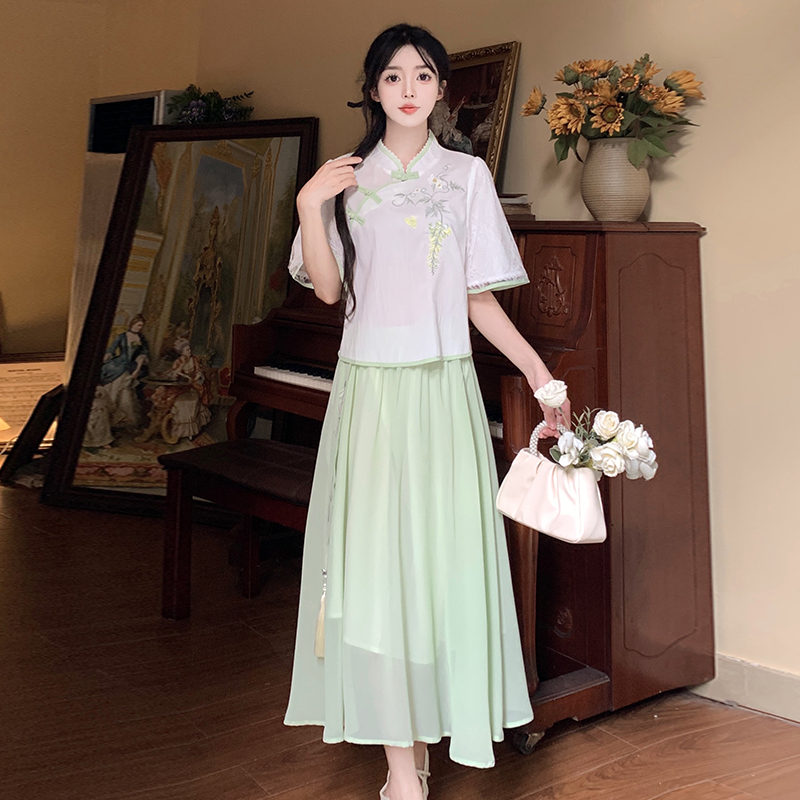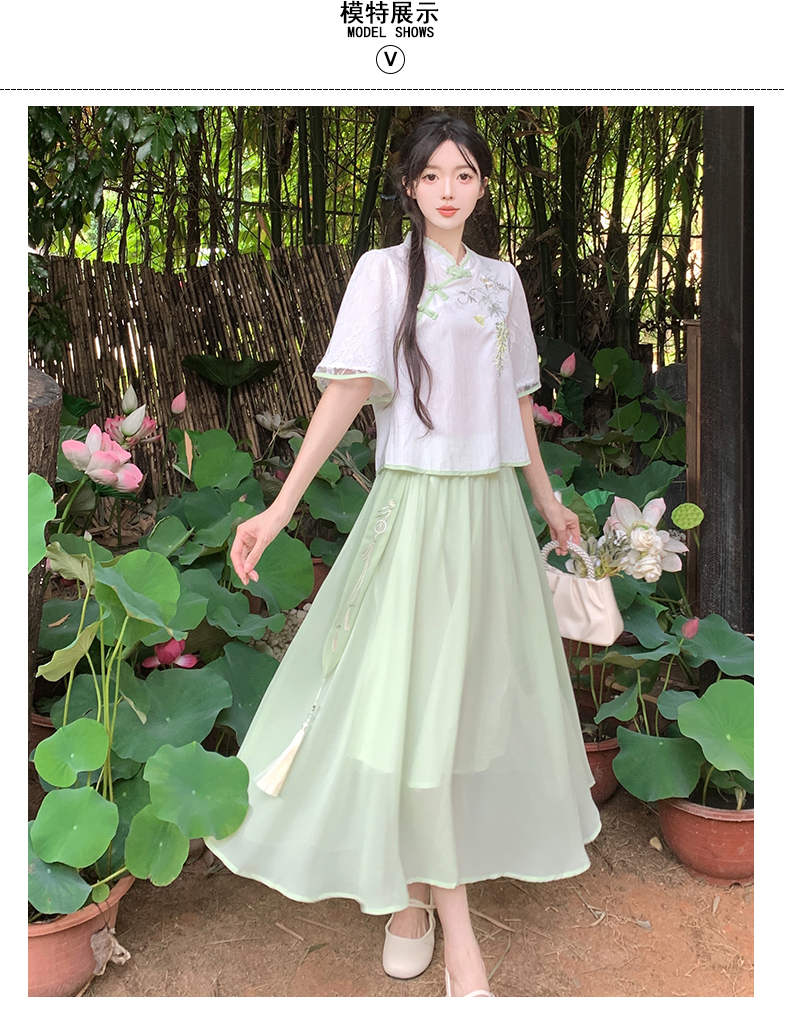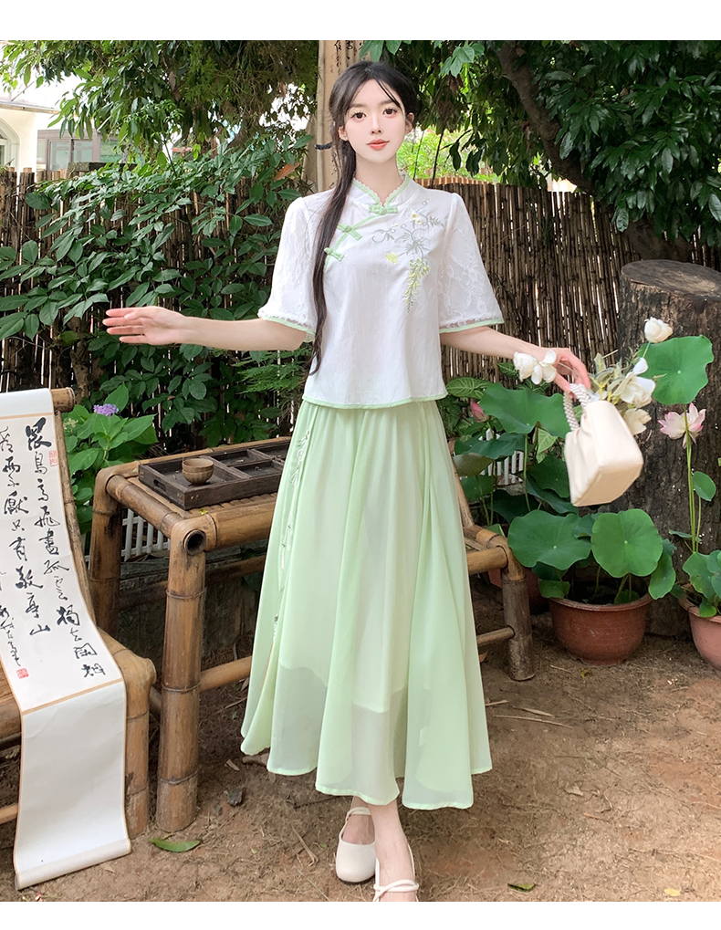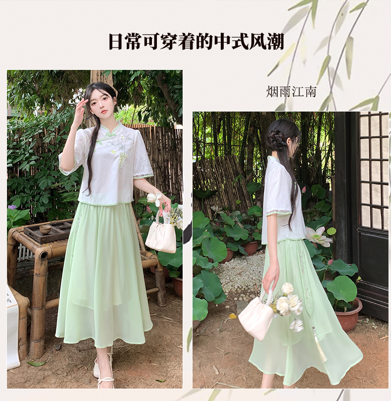 RY1699# 大码女装夏季新款新中式国风上衣重工刺绣+半身裙两件套