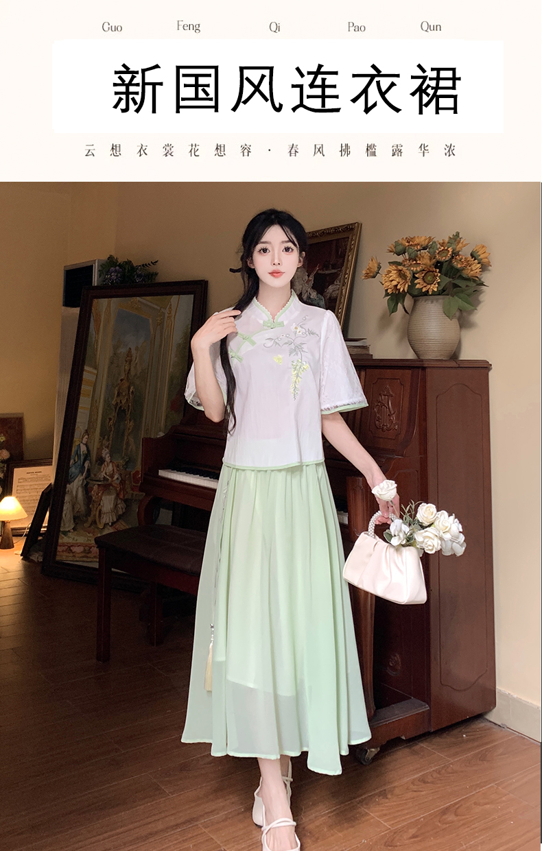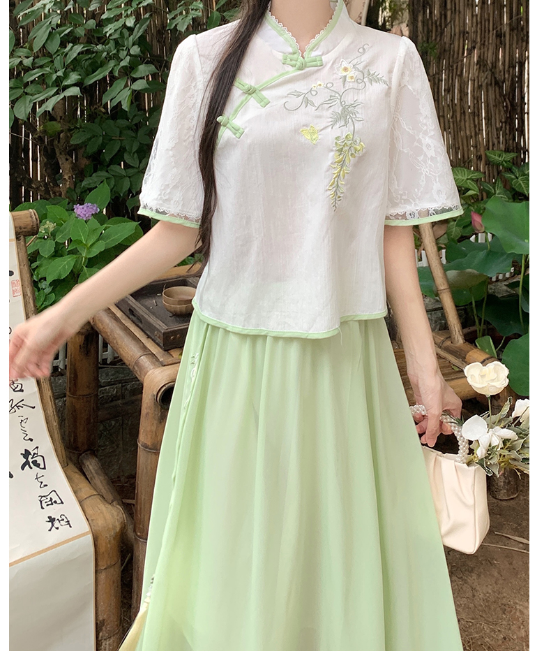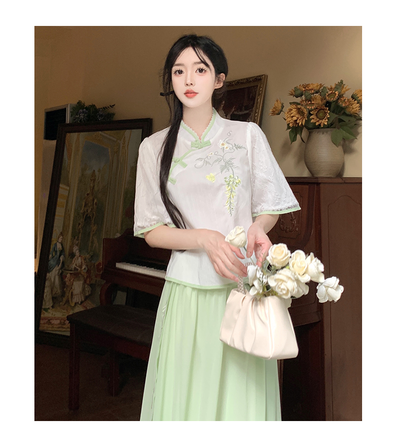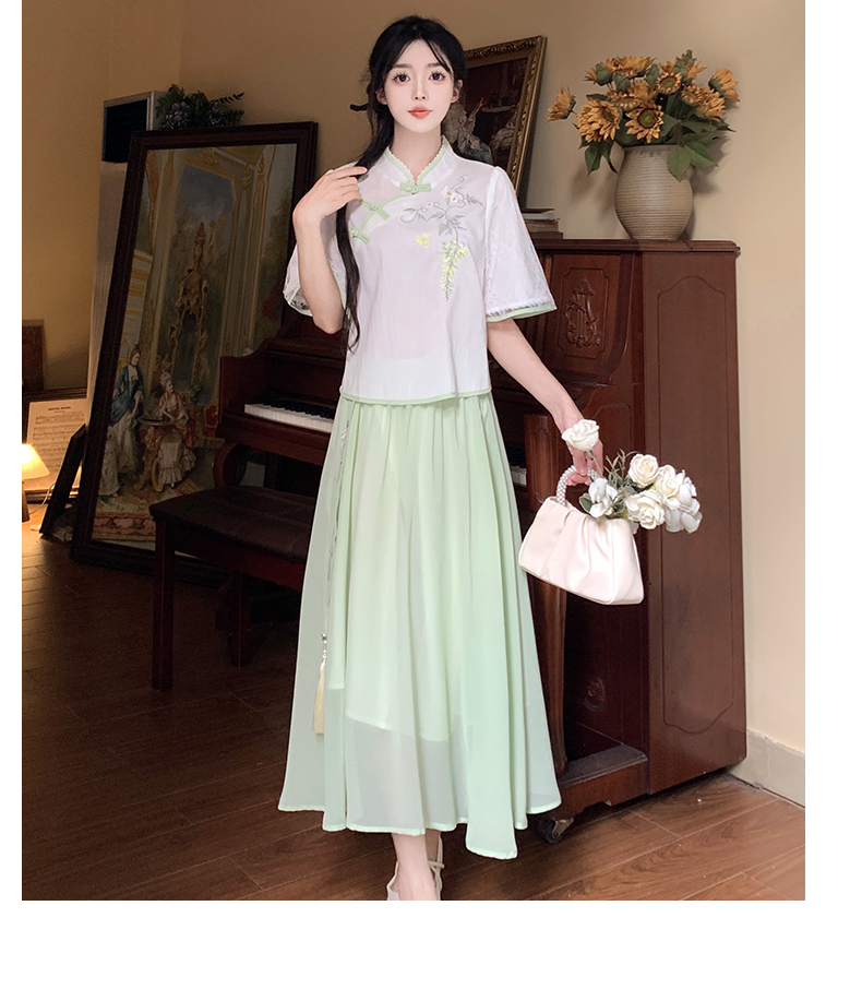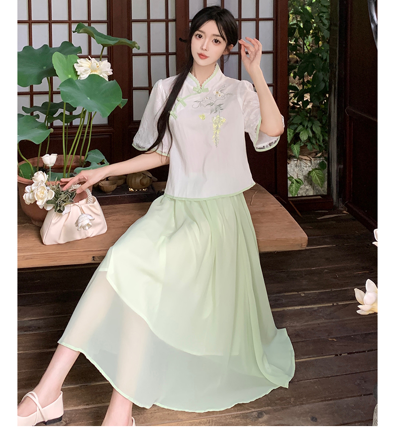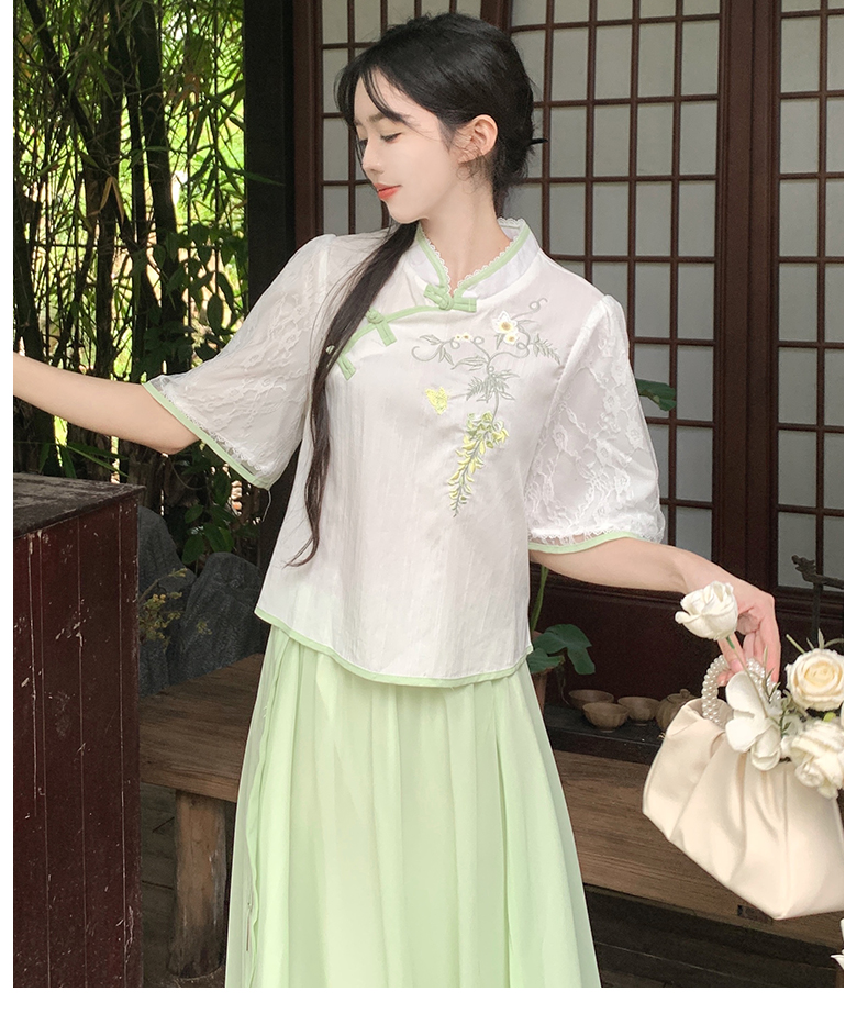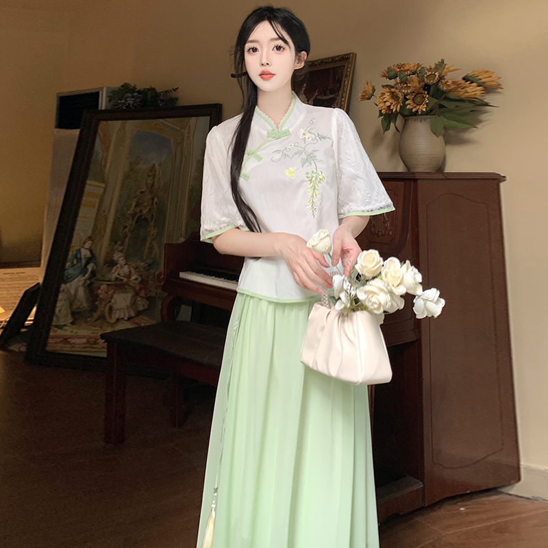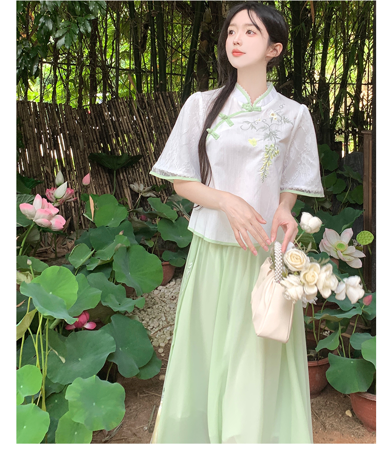 RY1699# 大码女装夏季新款新中式国风上衣重工刺绣+半身裙两件套