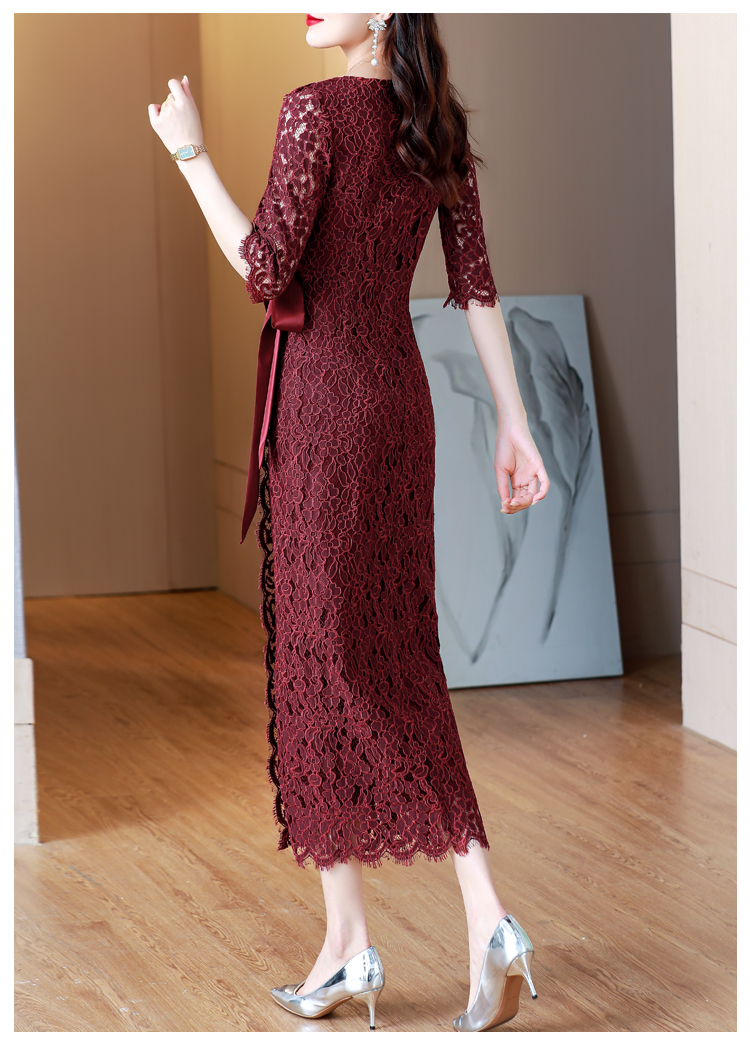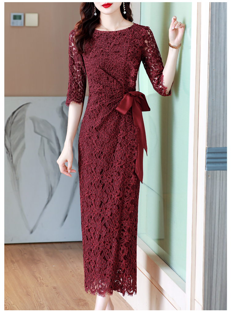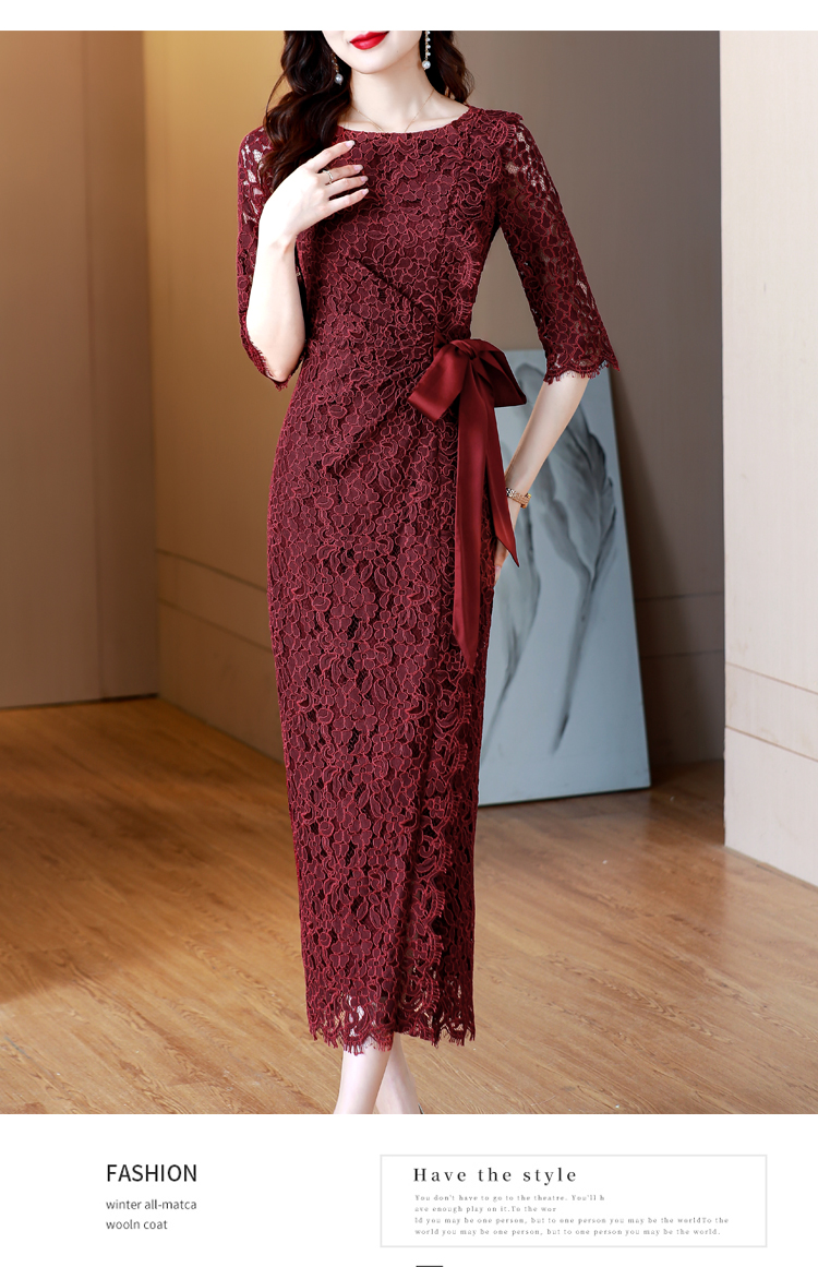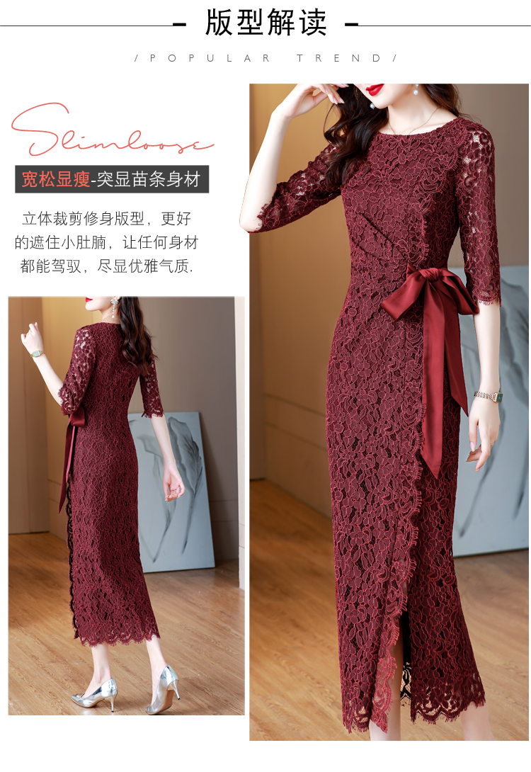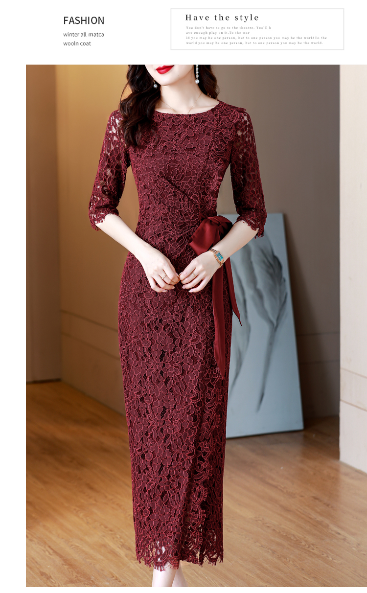 RY1718# 2026复古酒红色洋气蕾丝连衣裙轻熟贵气优雅女神喜宴宴会礼服长裙