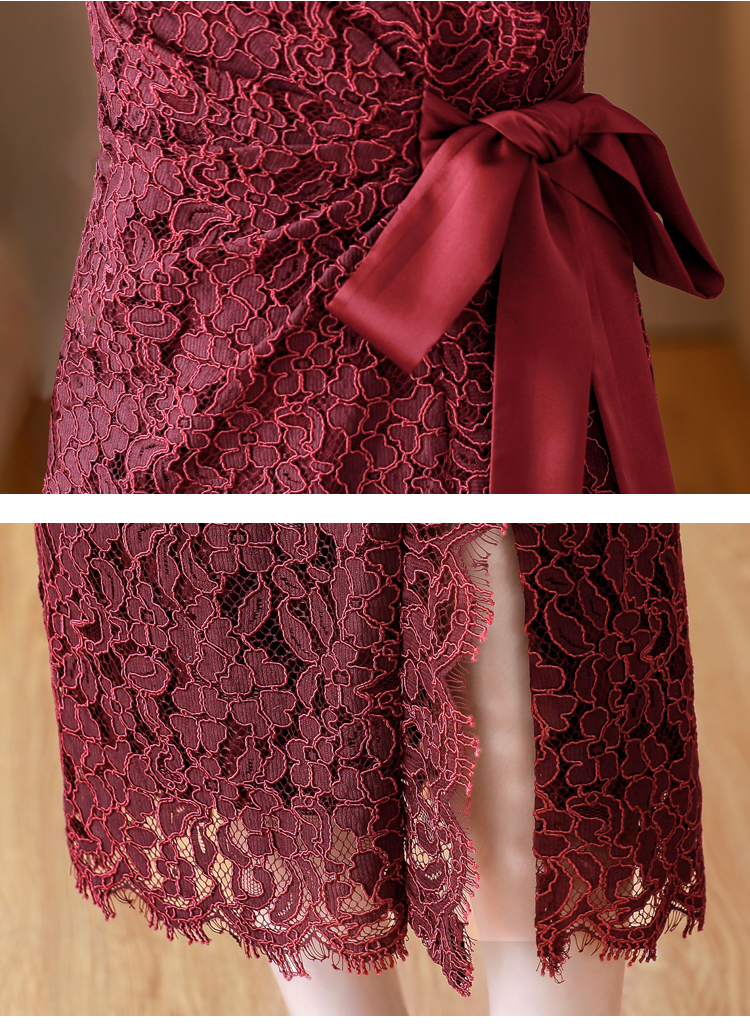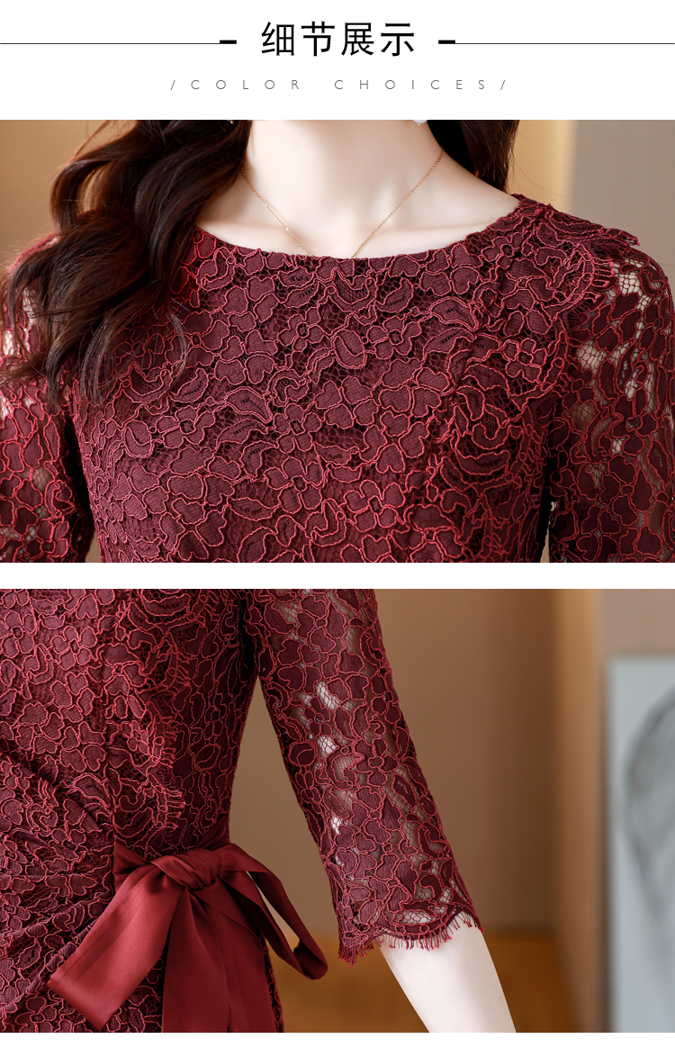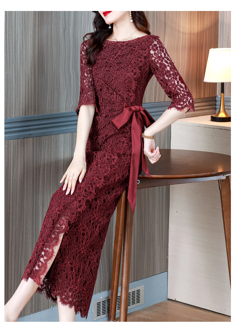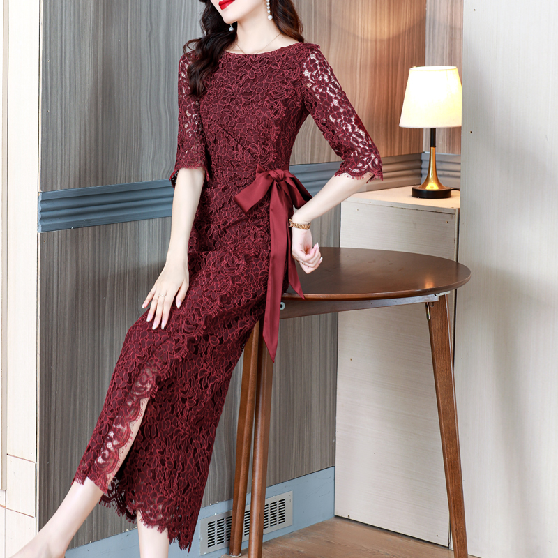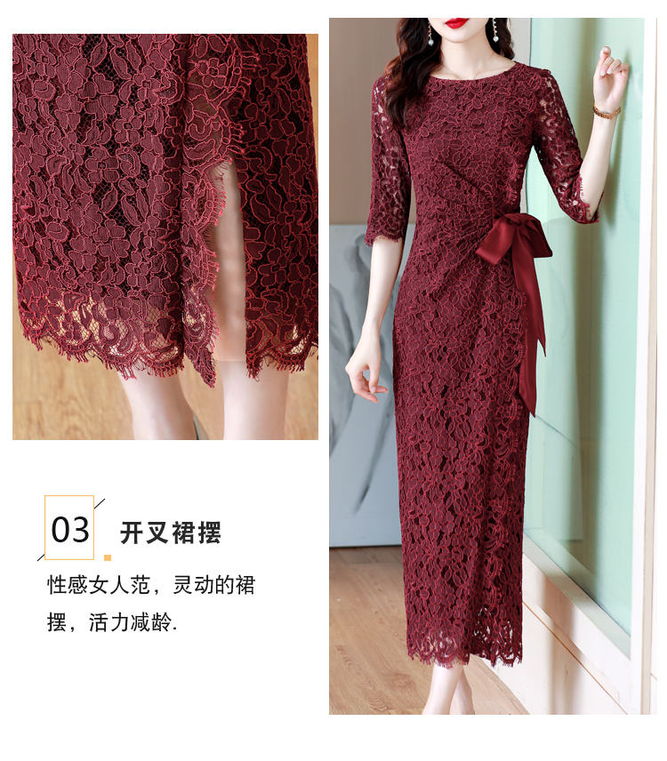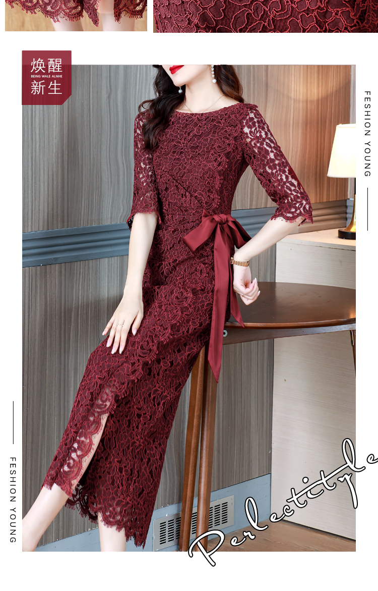 RY1718# 2026复古酒红色洋气蕾丝连衣裙轻熟贵气优雅女神喜宴宴会礼服长裙