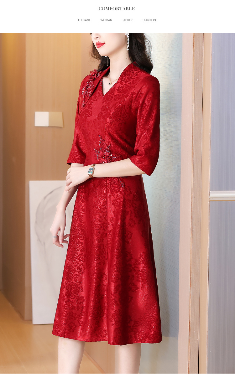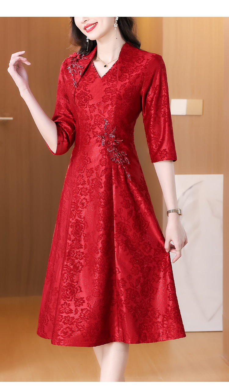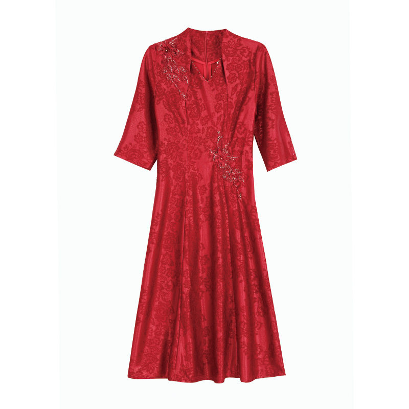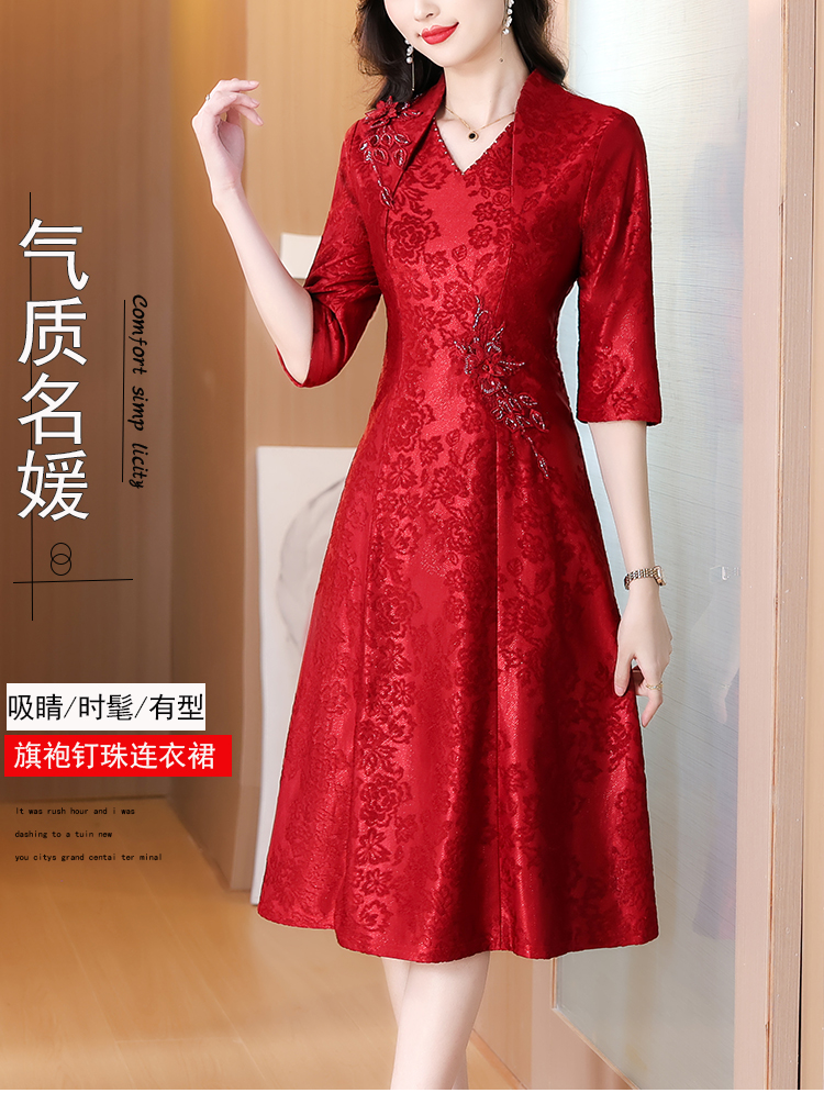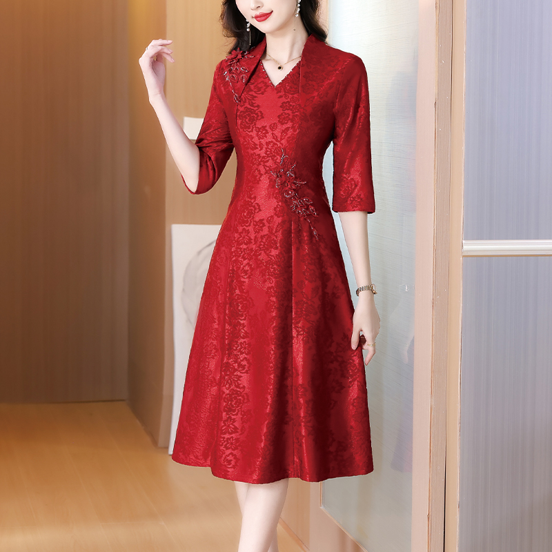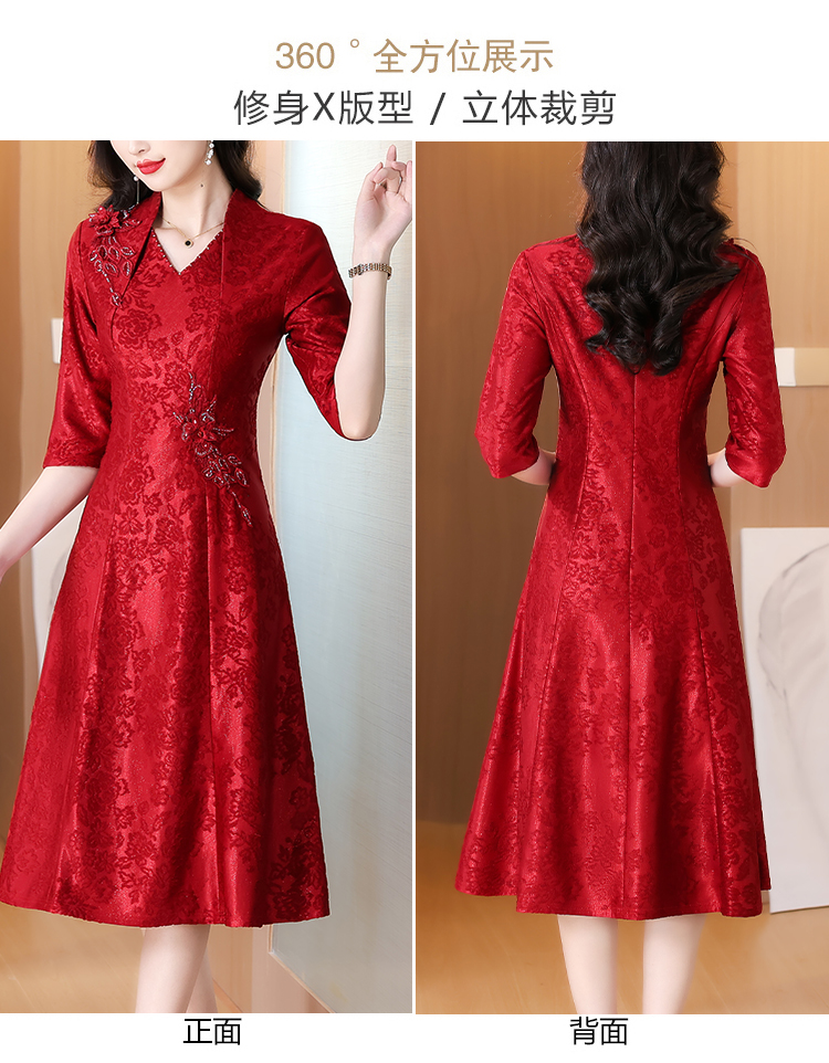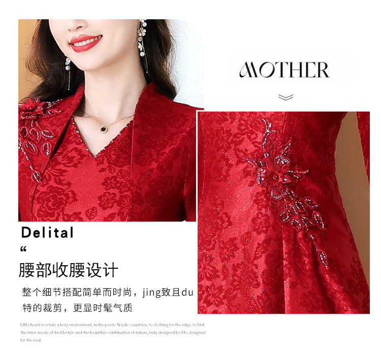 RY1785# 喜婆婆婚宴旗袍高贵年轻2025新款红色绣花A摆结婚妈妈喜服平时穿