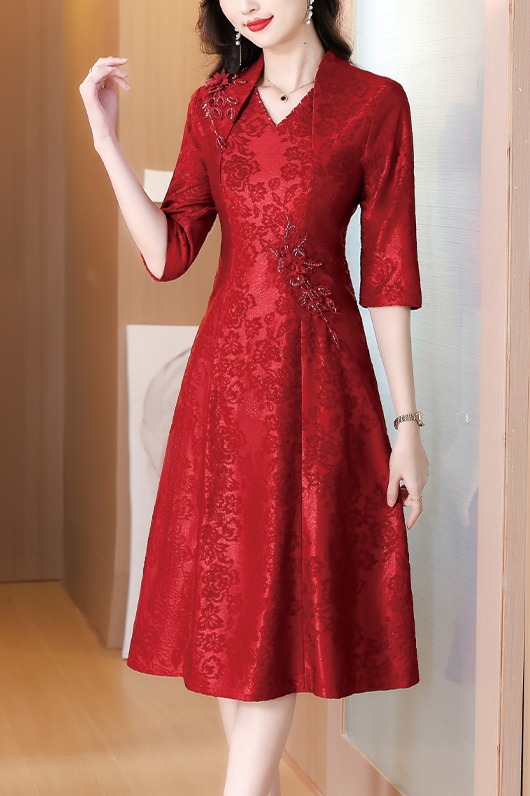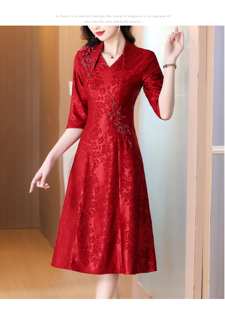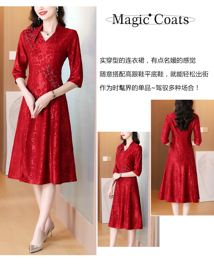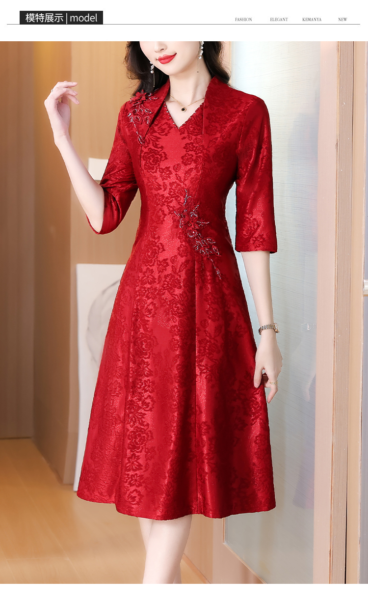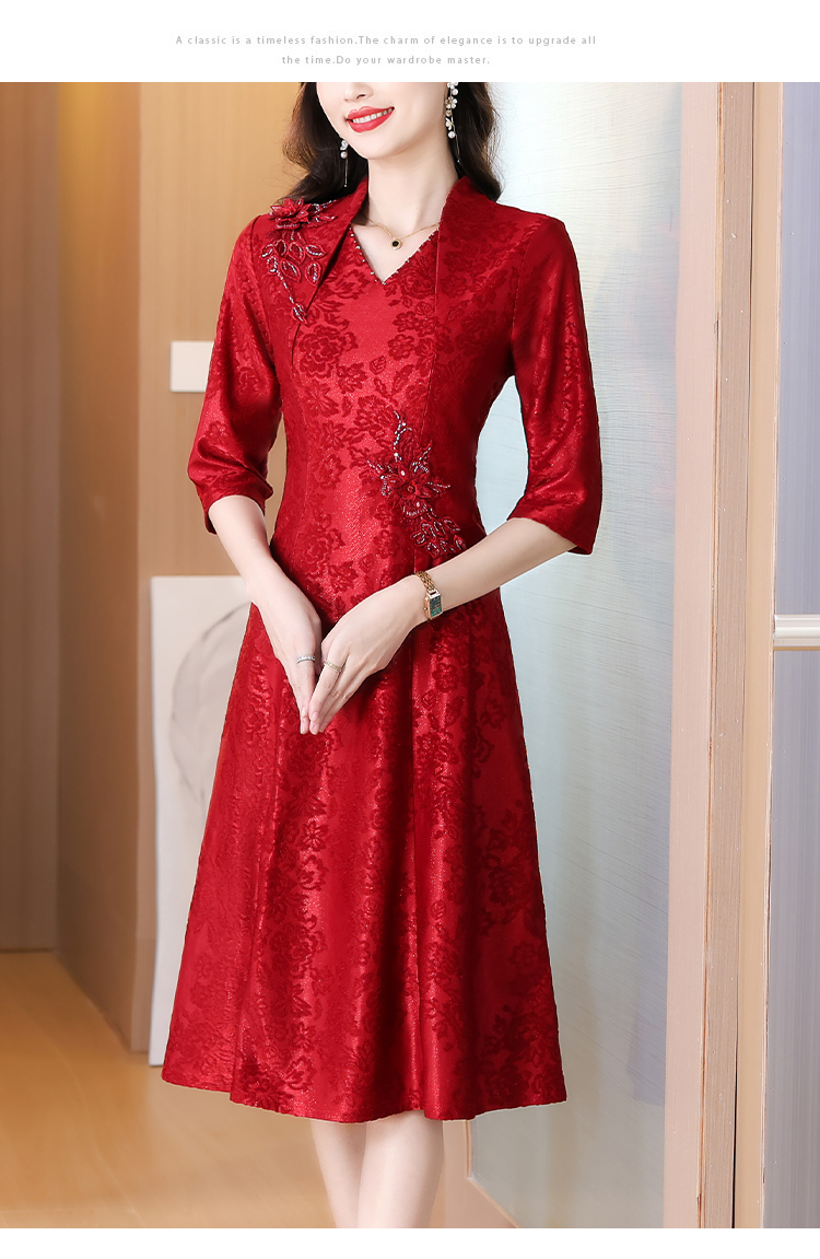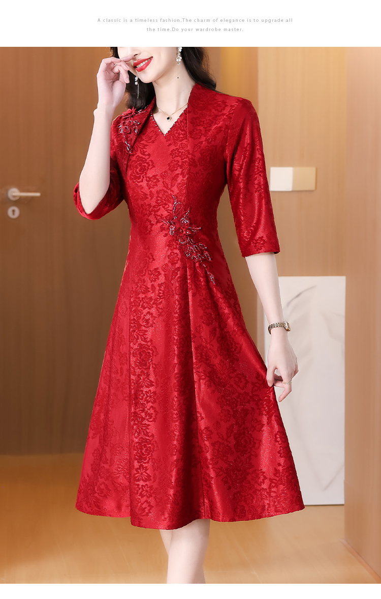 RY1785# 喜婆婆婚宴旗袍高贵年轻2025新款红色绣花A摆结婚妈妈喜服平时穿