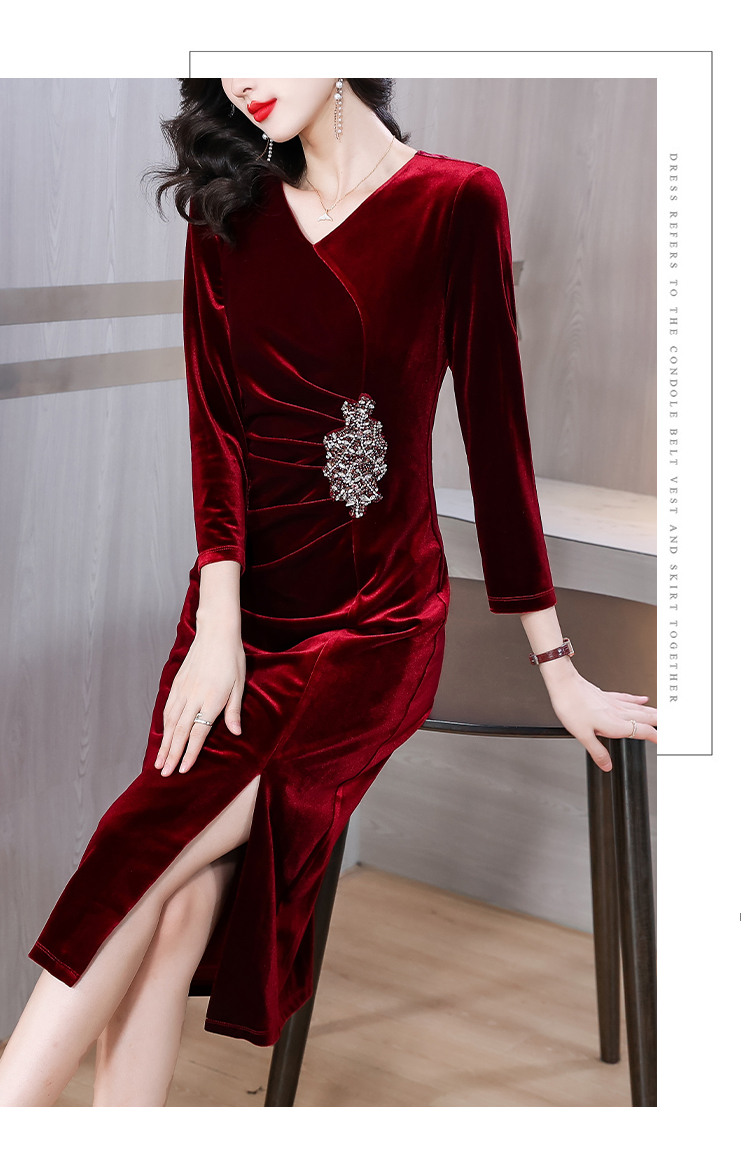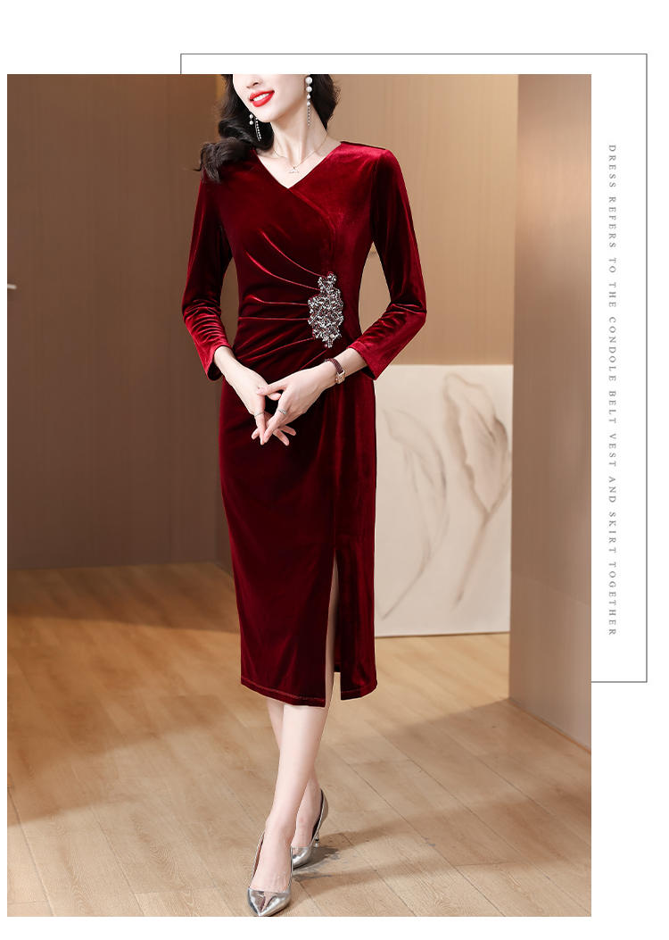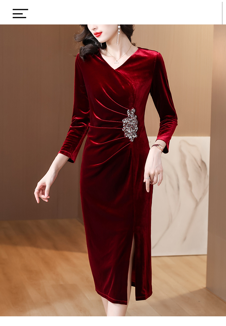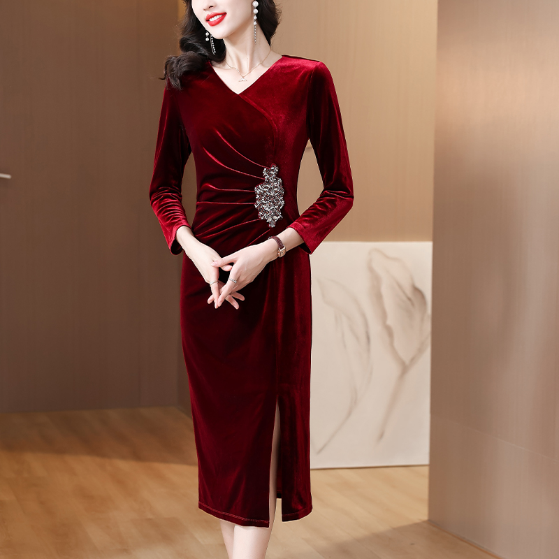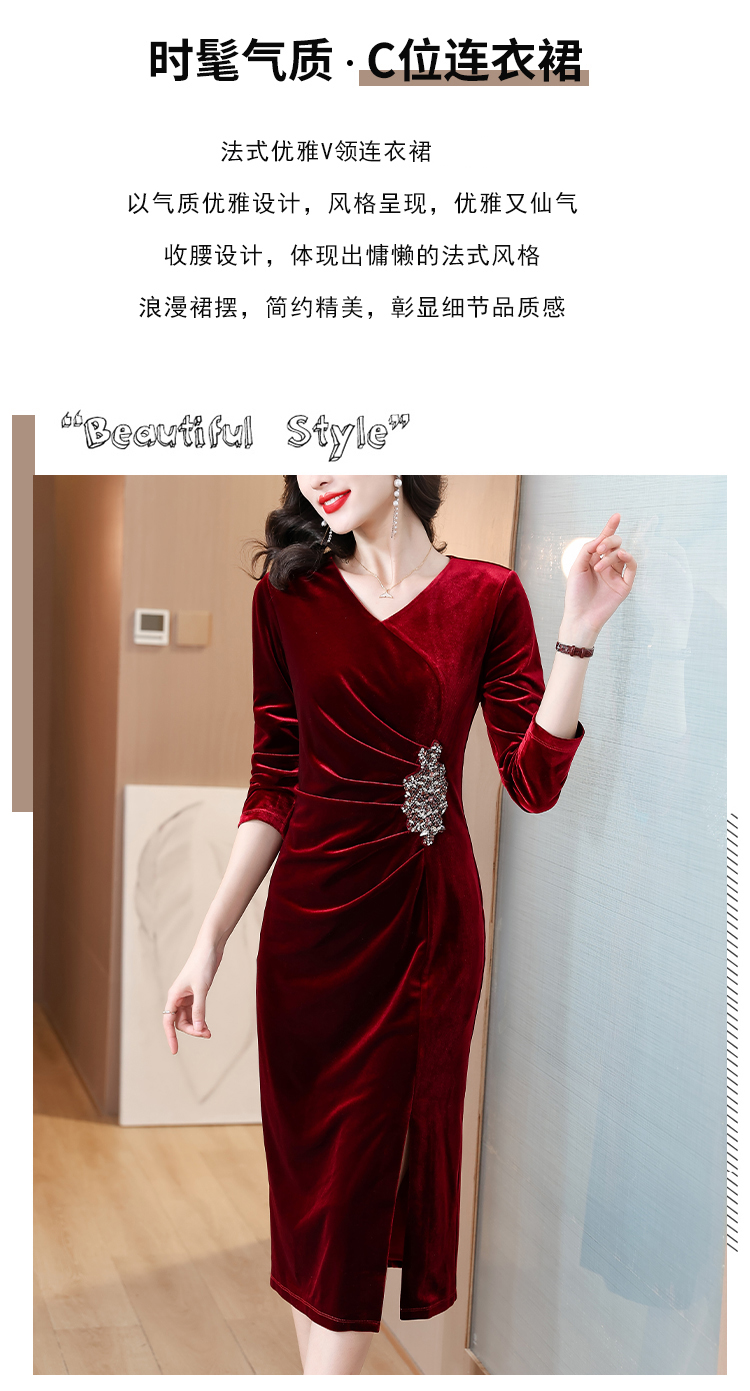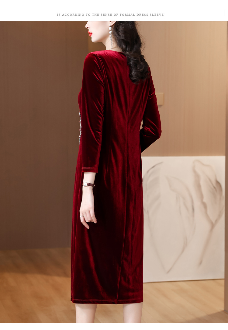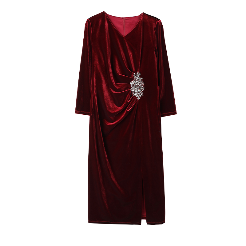 RY1788# 国庆节妈妈丝绒高贵年轻喜婆婆婚宴装2025新款平时可穿连衣裙