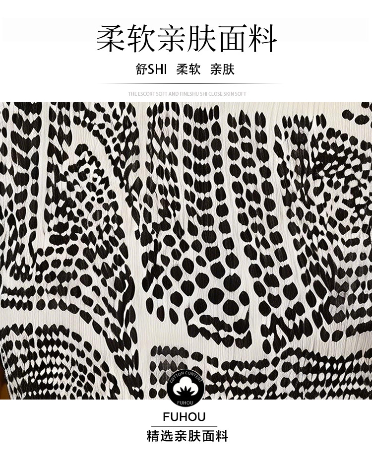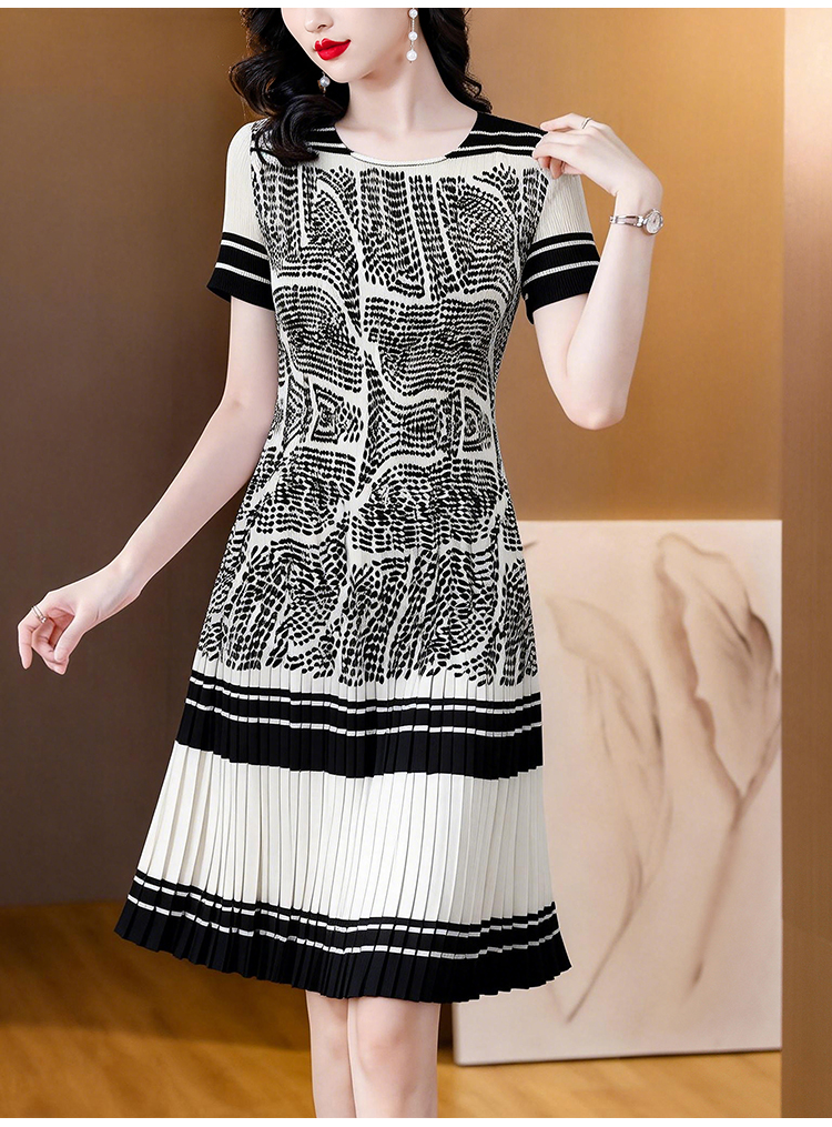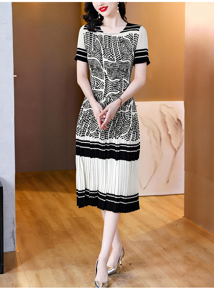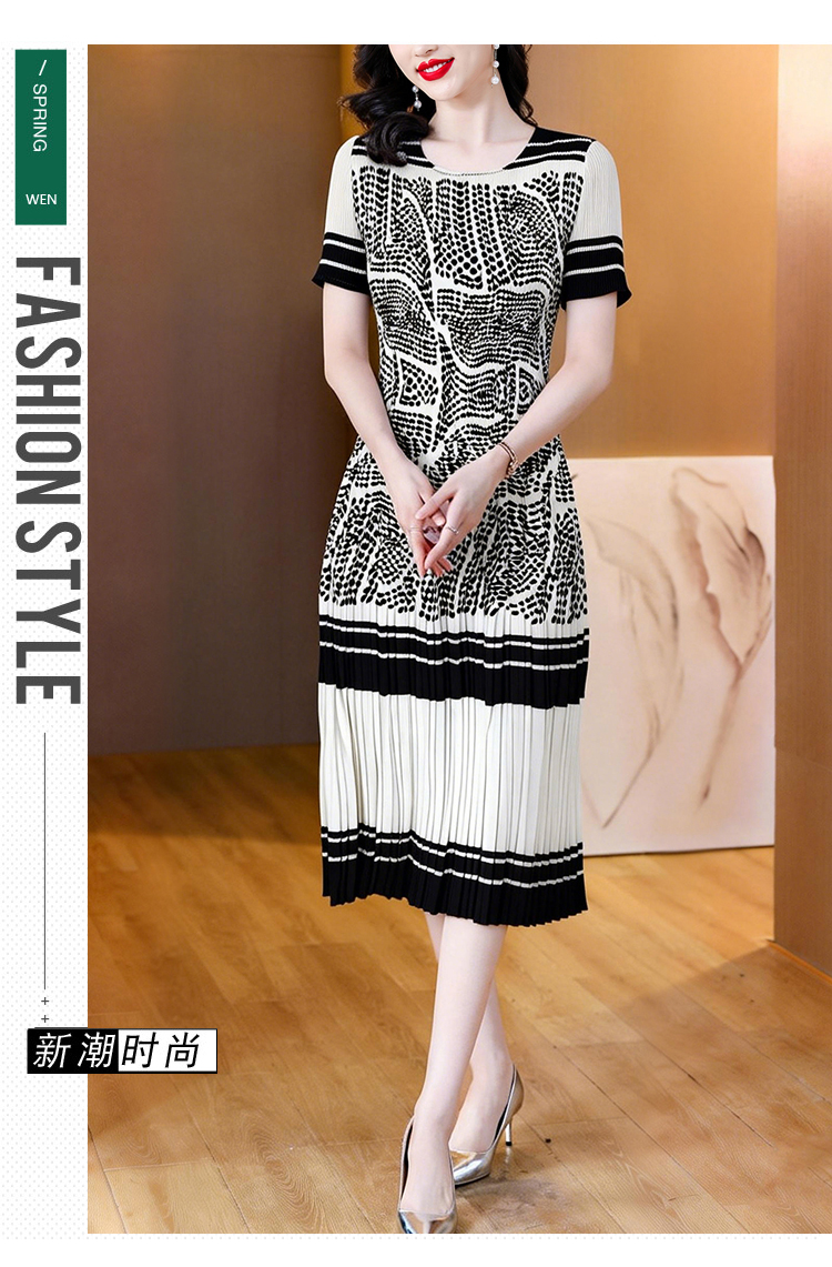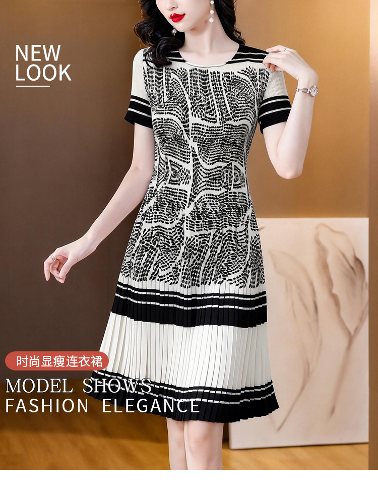 RY1875# 三宅褶皱2026夏季新款大码阔太太宽松复古印花气质显瘦A字连衣裙