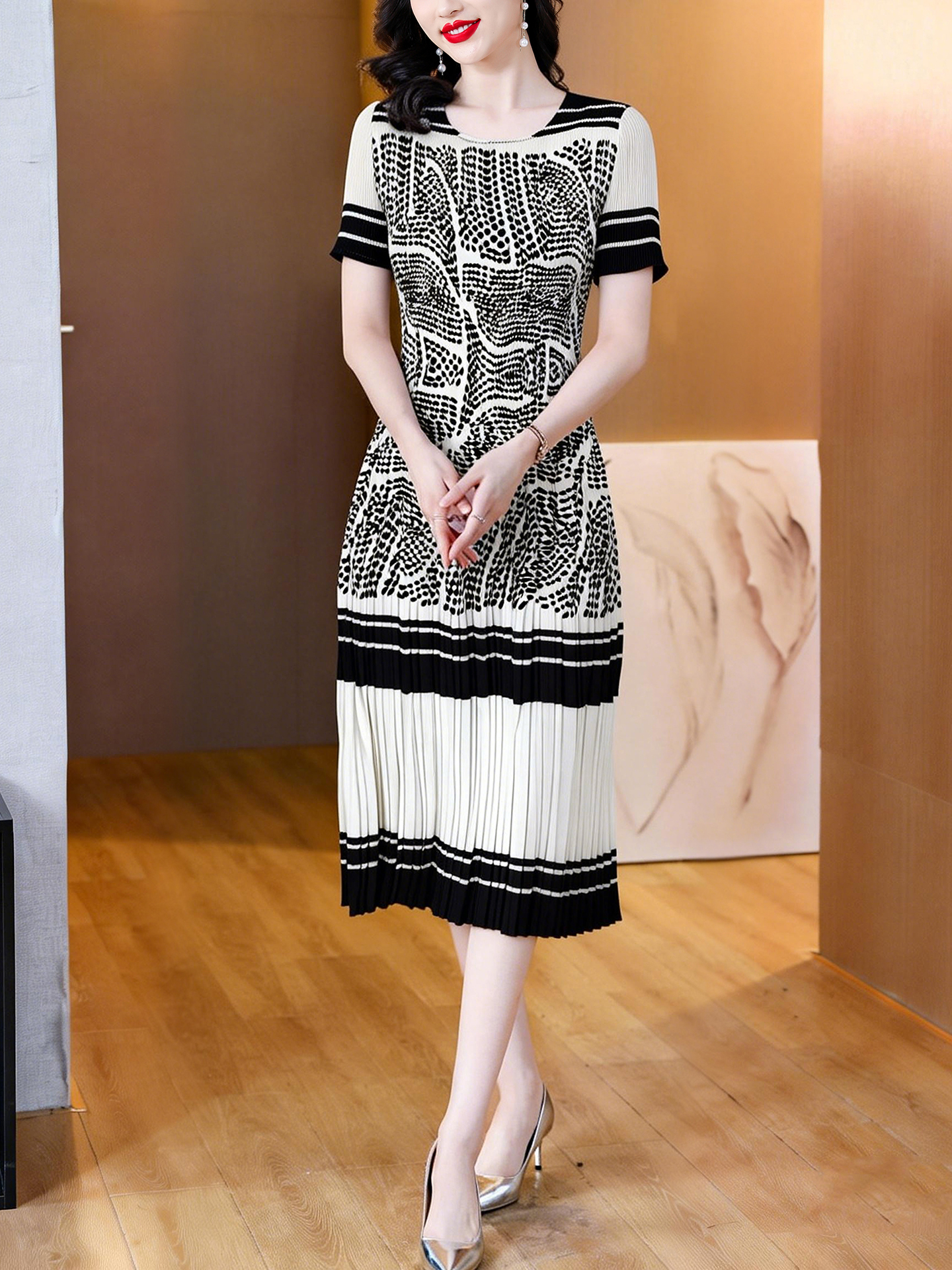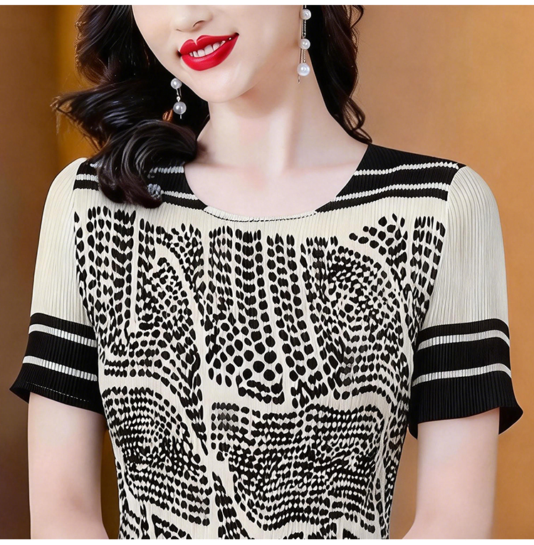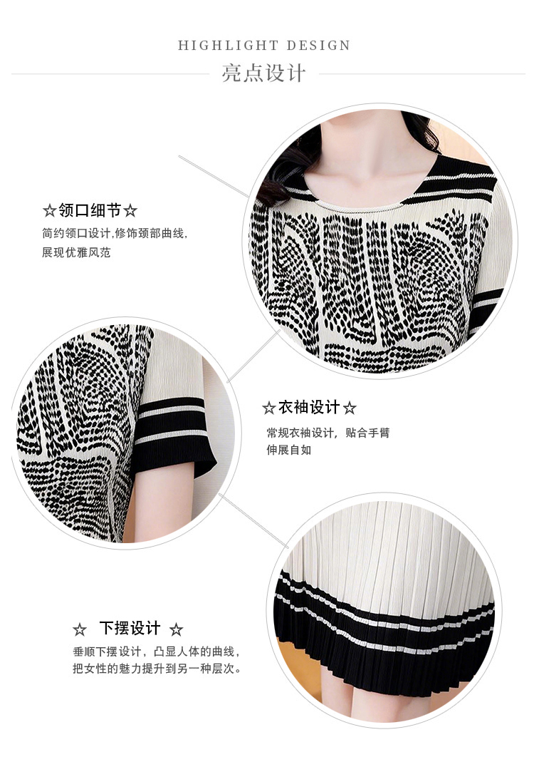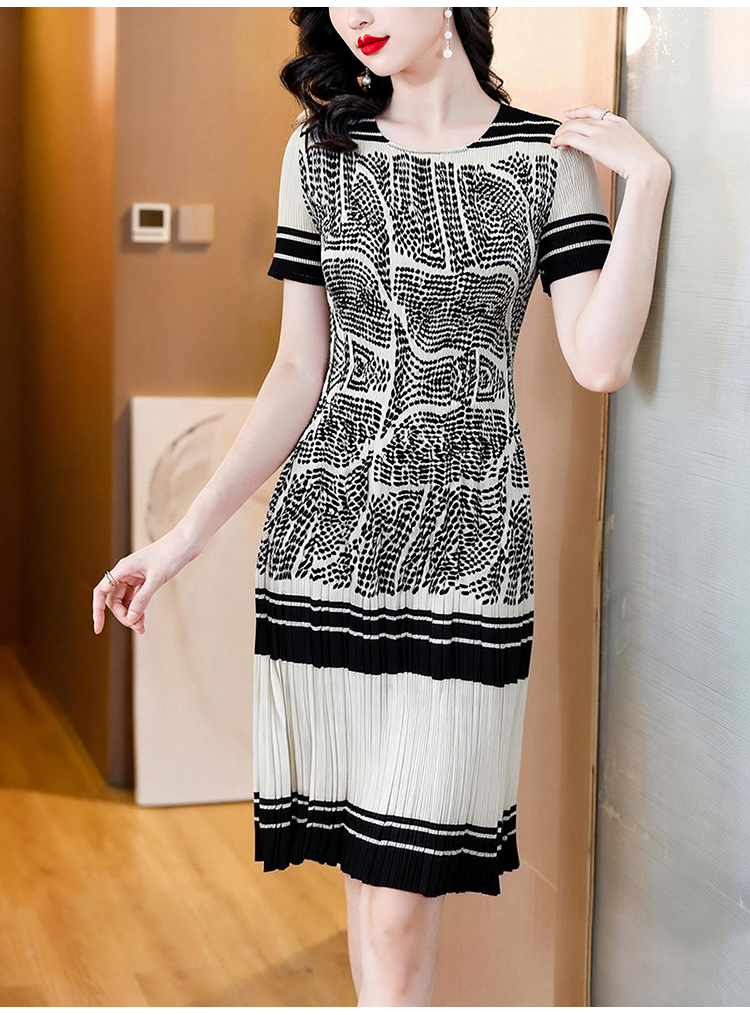 RY1875# 三宅褶皱2026夏季新款大码阔太太宽松复古印花气质显瘦A字连衣裙