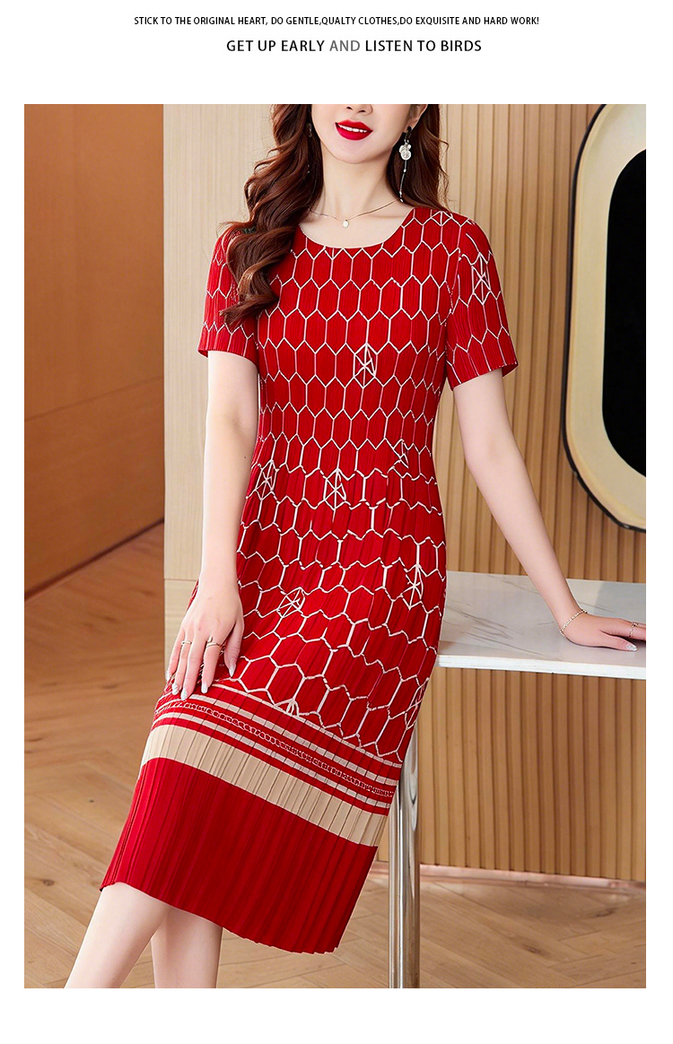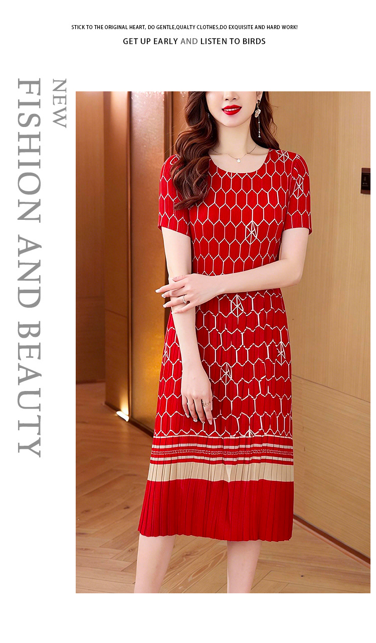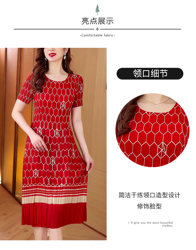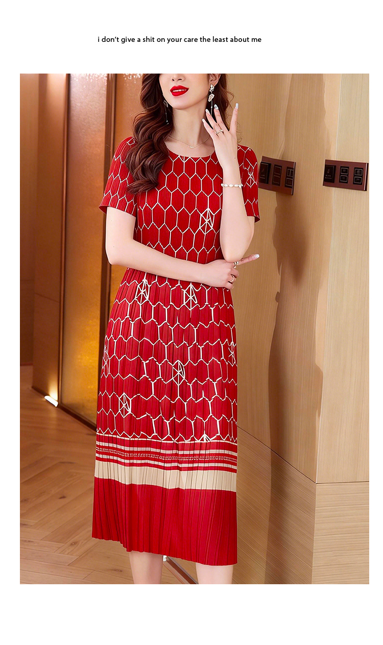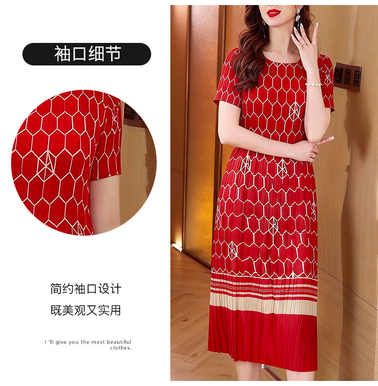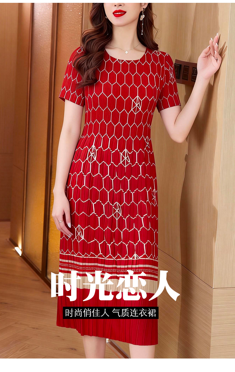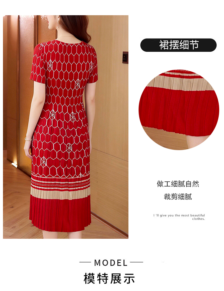 RY1876# 三宅褶皱2026夏季新款大码阔太太宽松复古印花气质显瘦A字连衣裙