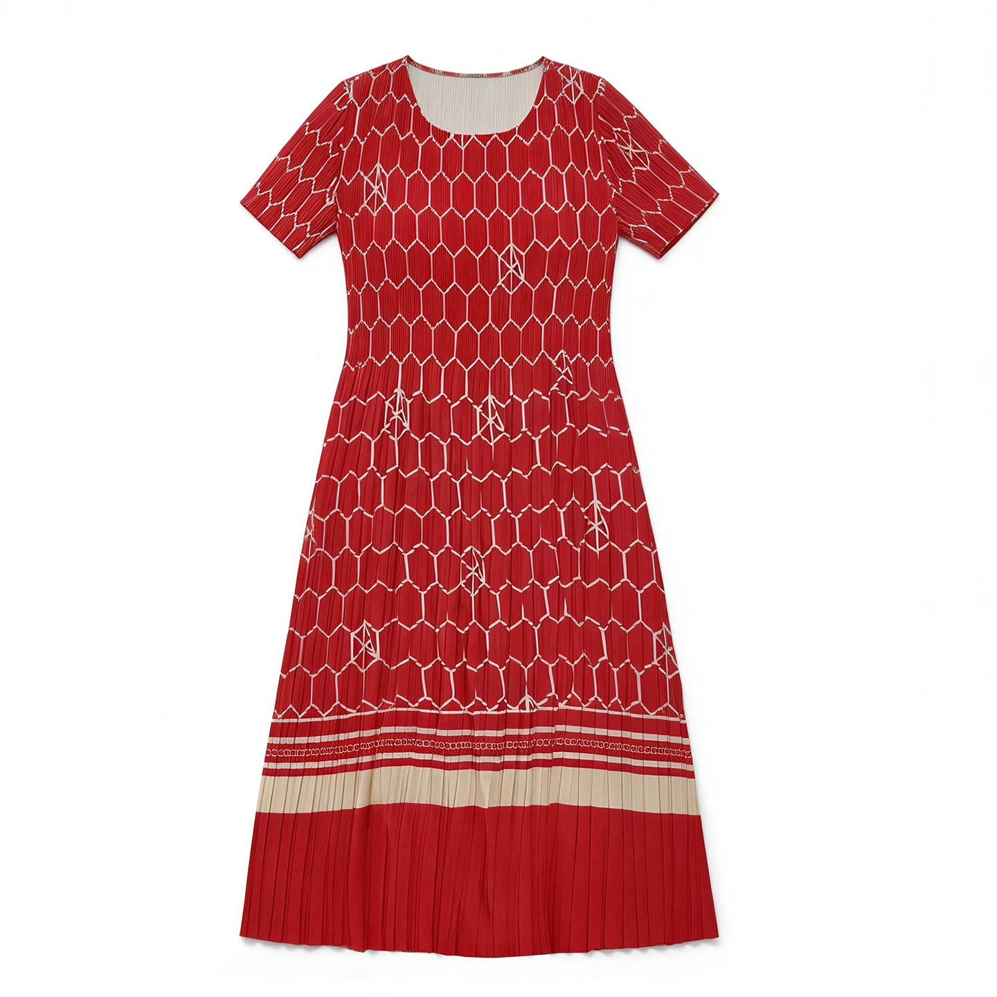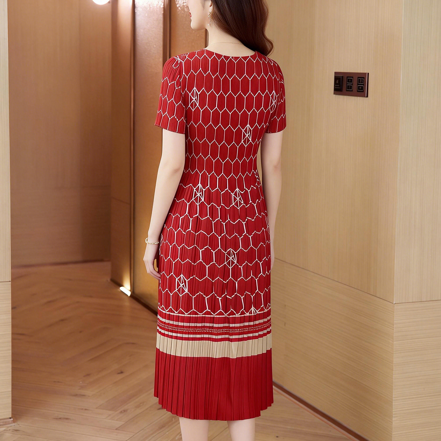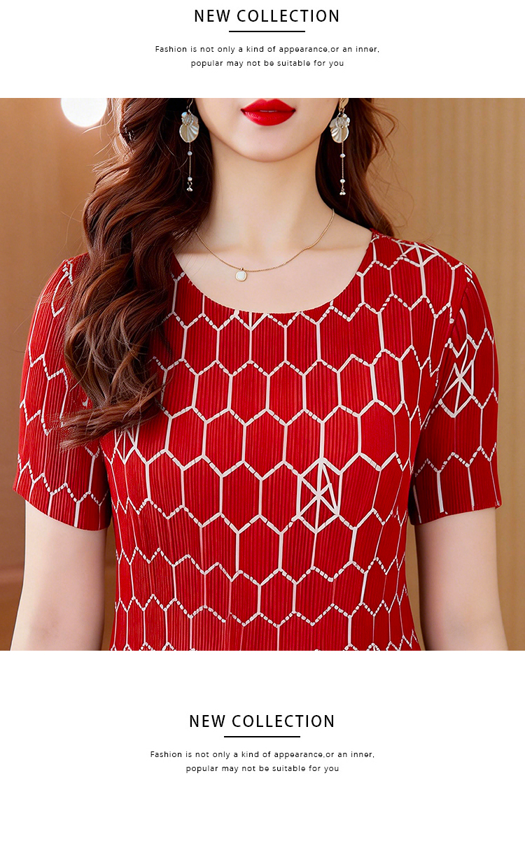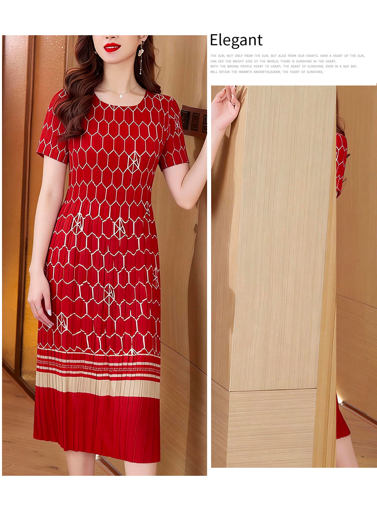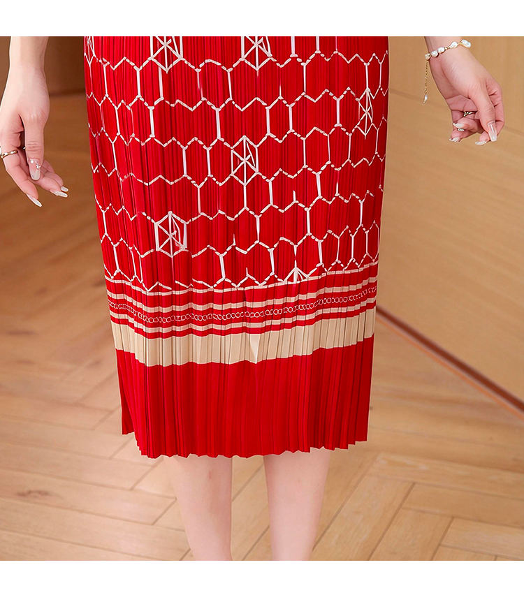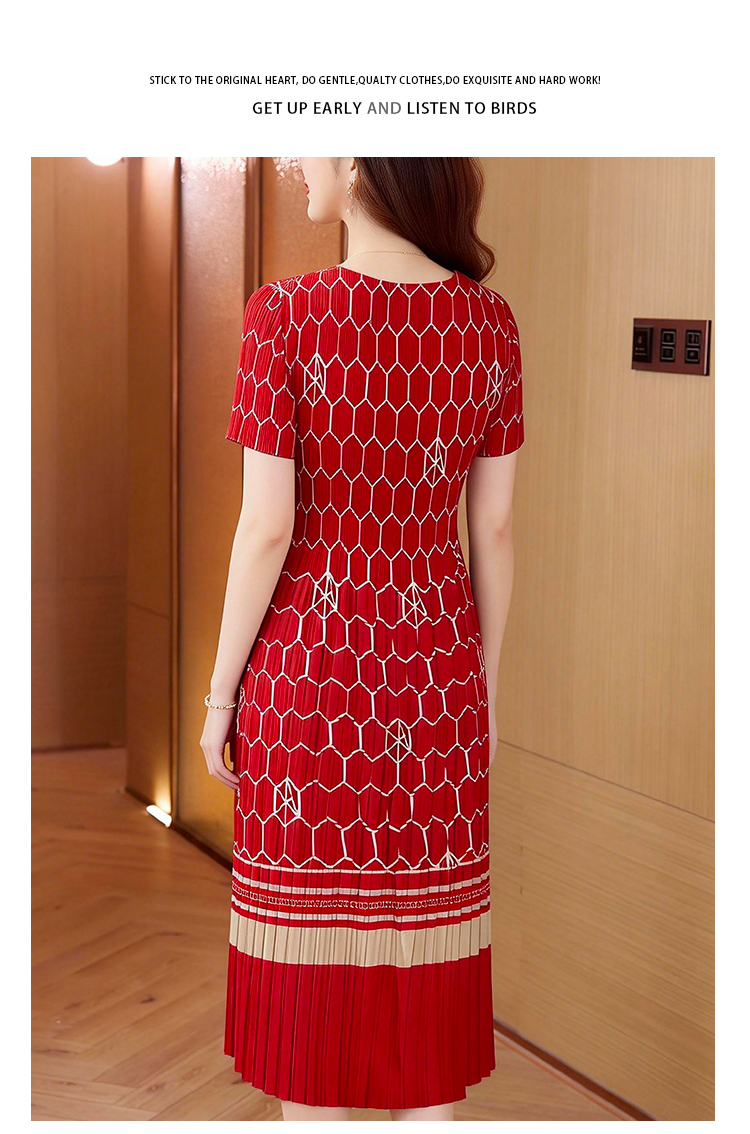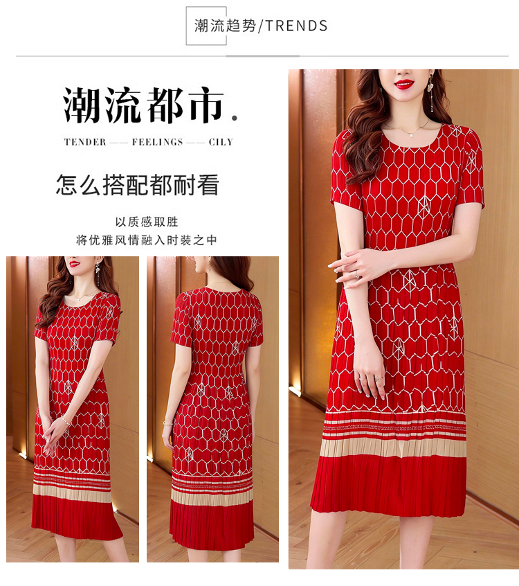 RY1876# 三宅褶皱2026夏季新款大码阔太太宽松复古印花气质显瘦A字连衣裙