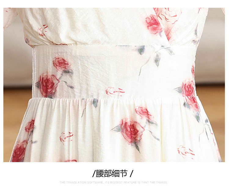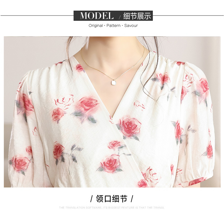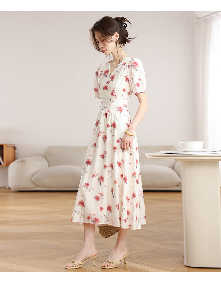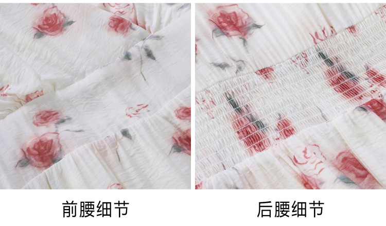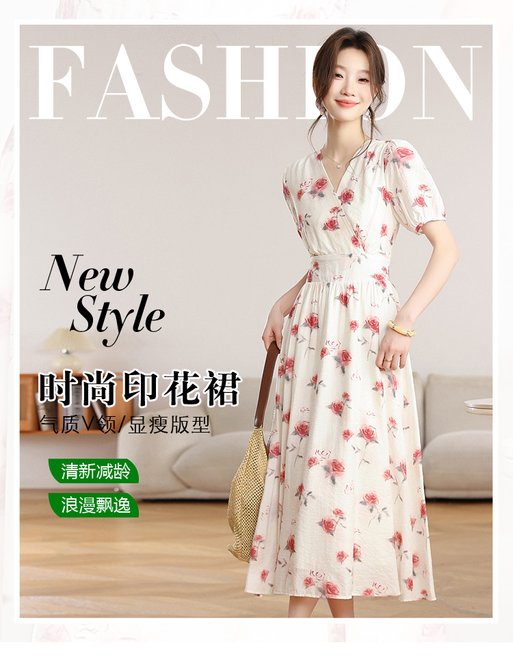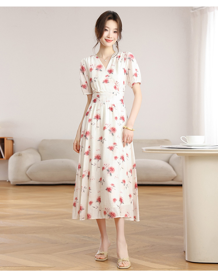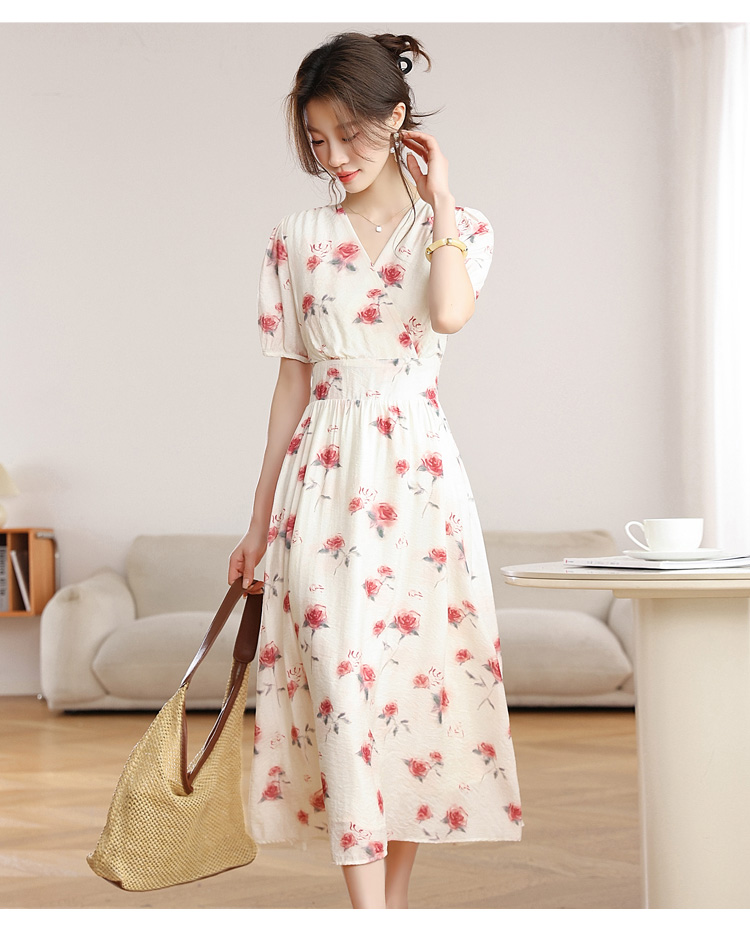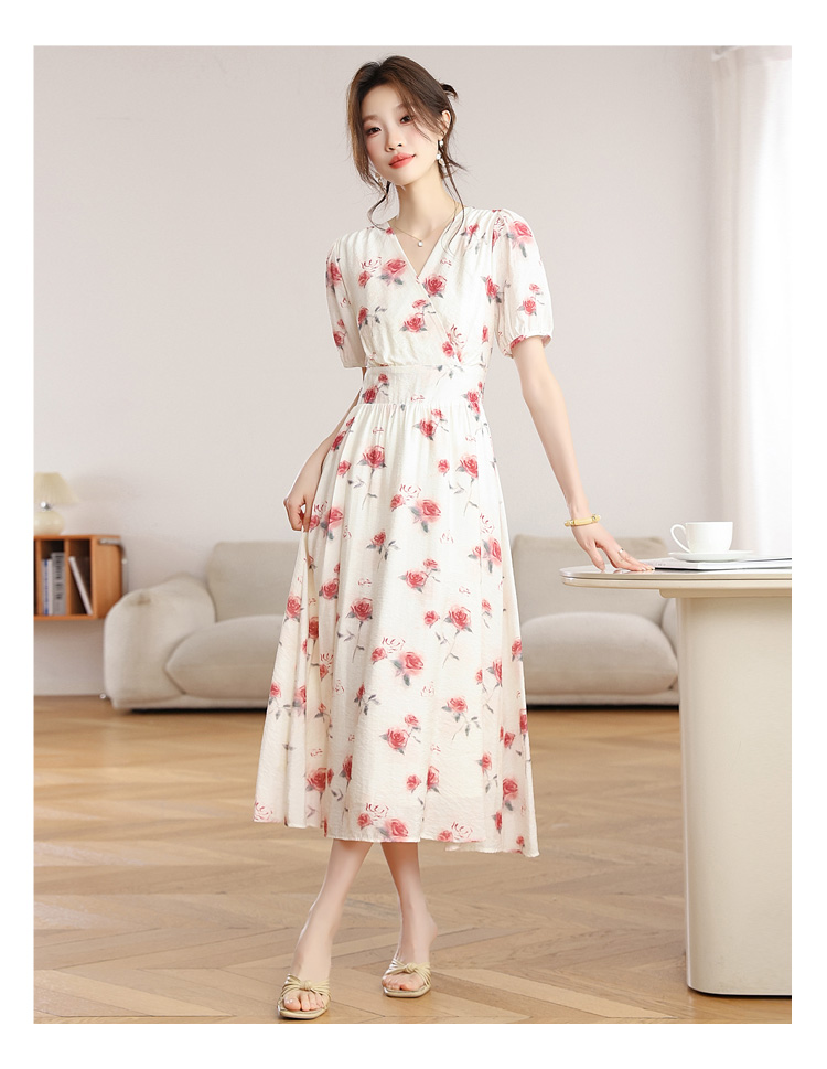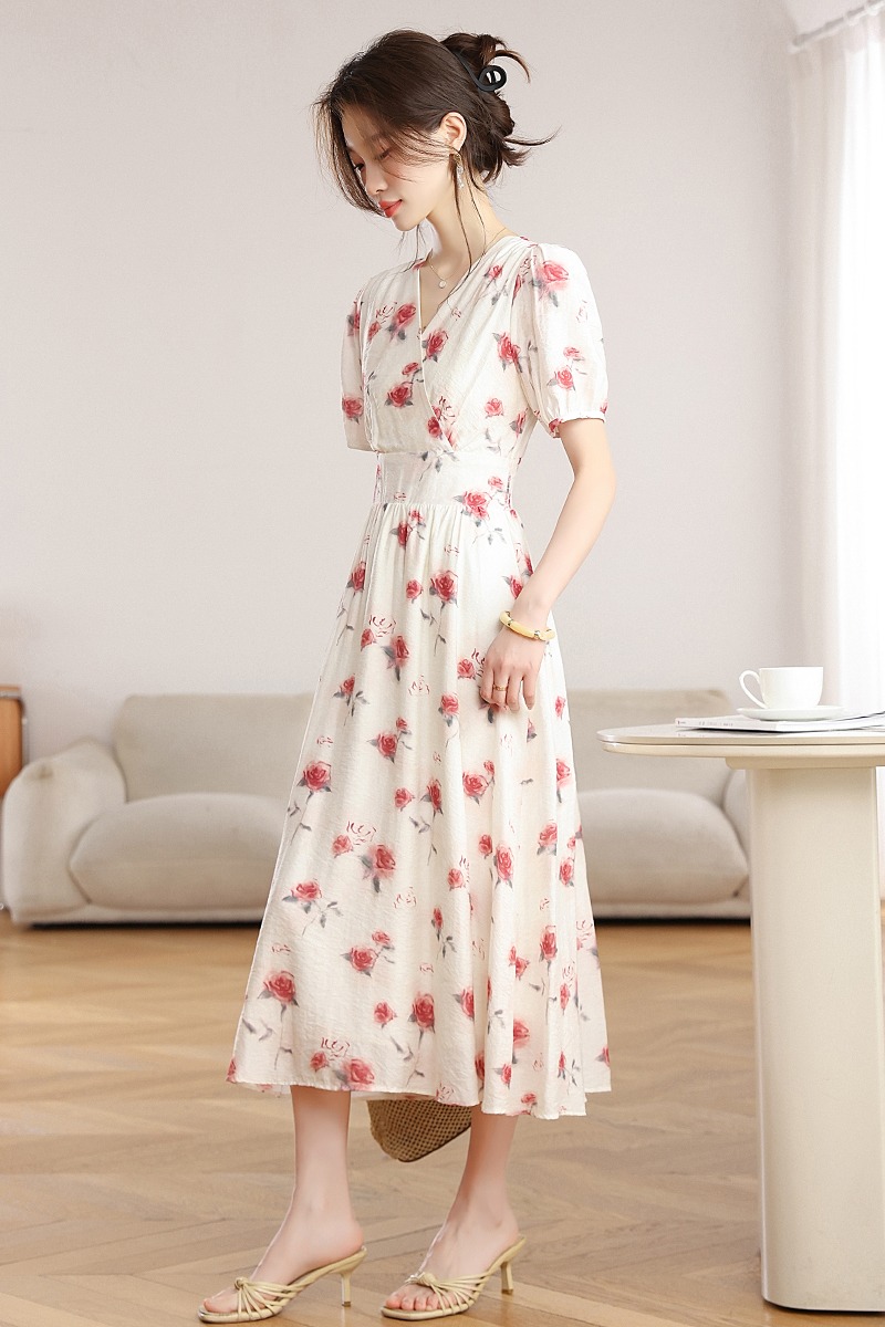 RY1880# 实拍 泡泡袖V领碎花连衣裙女夏季收腰显瘦高级感度假风气质长裙