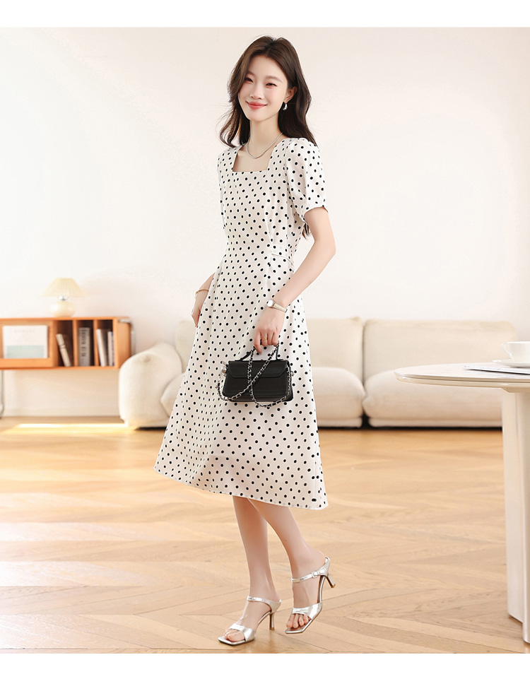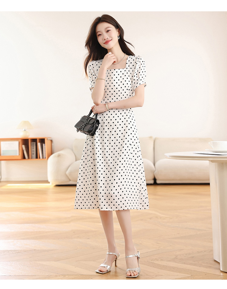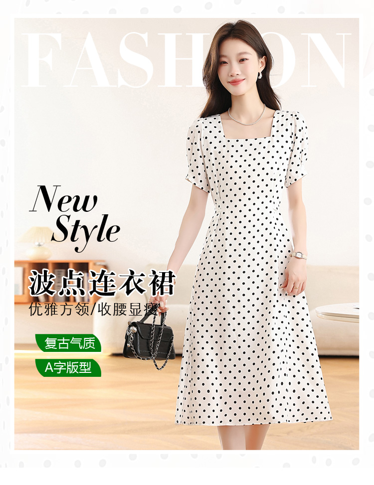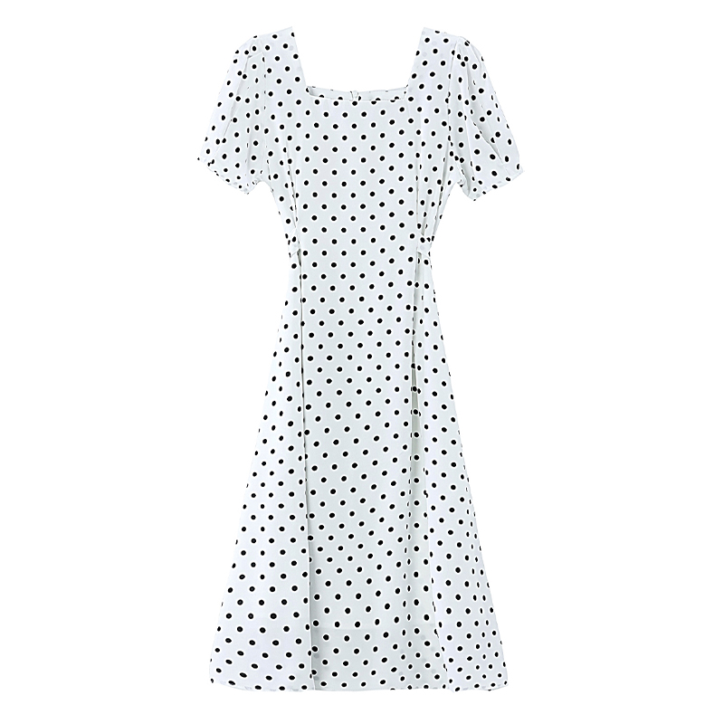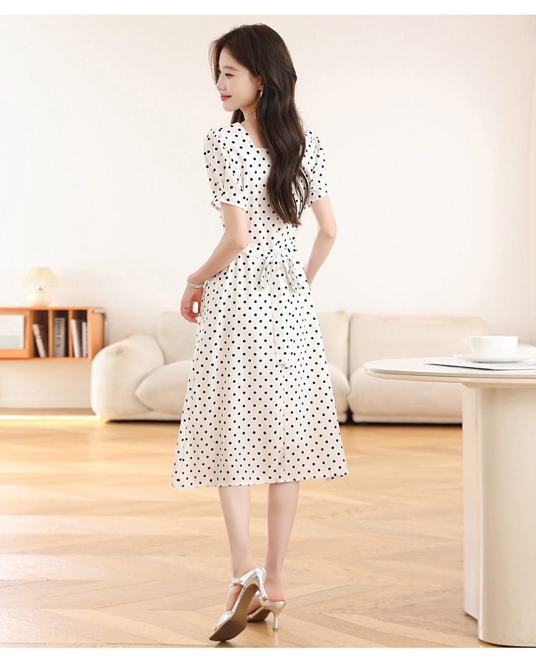 RY1885# 实拍海边度假爆款高级感茶歇气质赫本风法式白色波点连衣裙子女夏