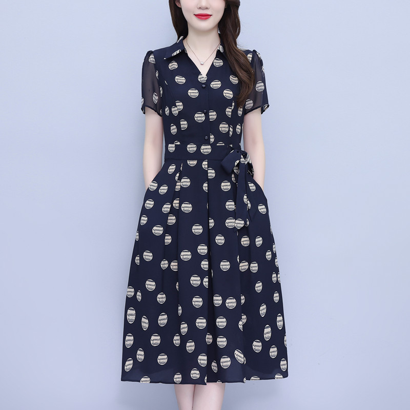 RY1898# 真丝桑蚕丝连衣裙女夏季新款香云纱高端洋气质小个子妈妈印花裙子