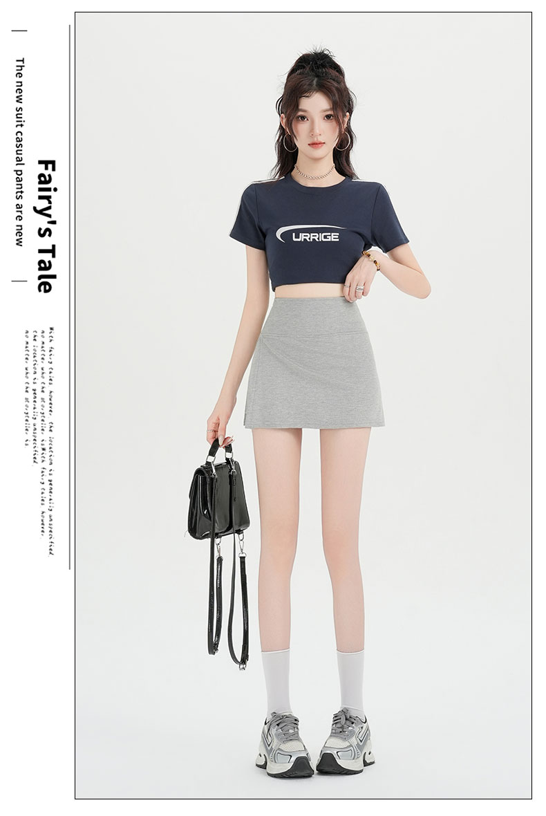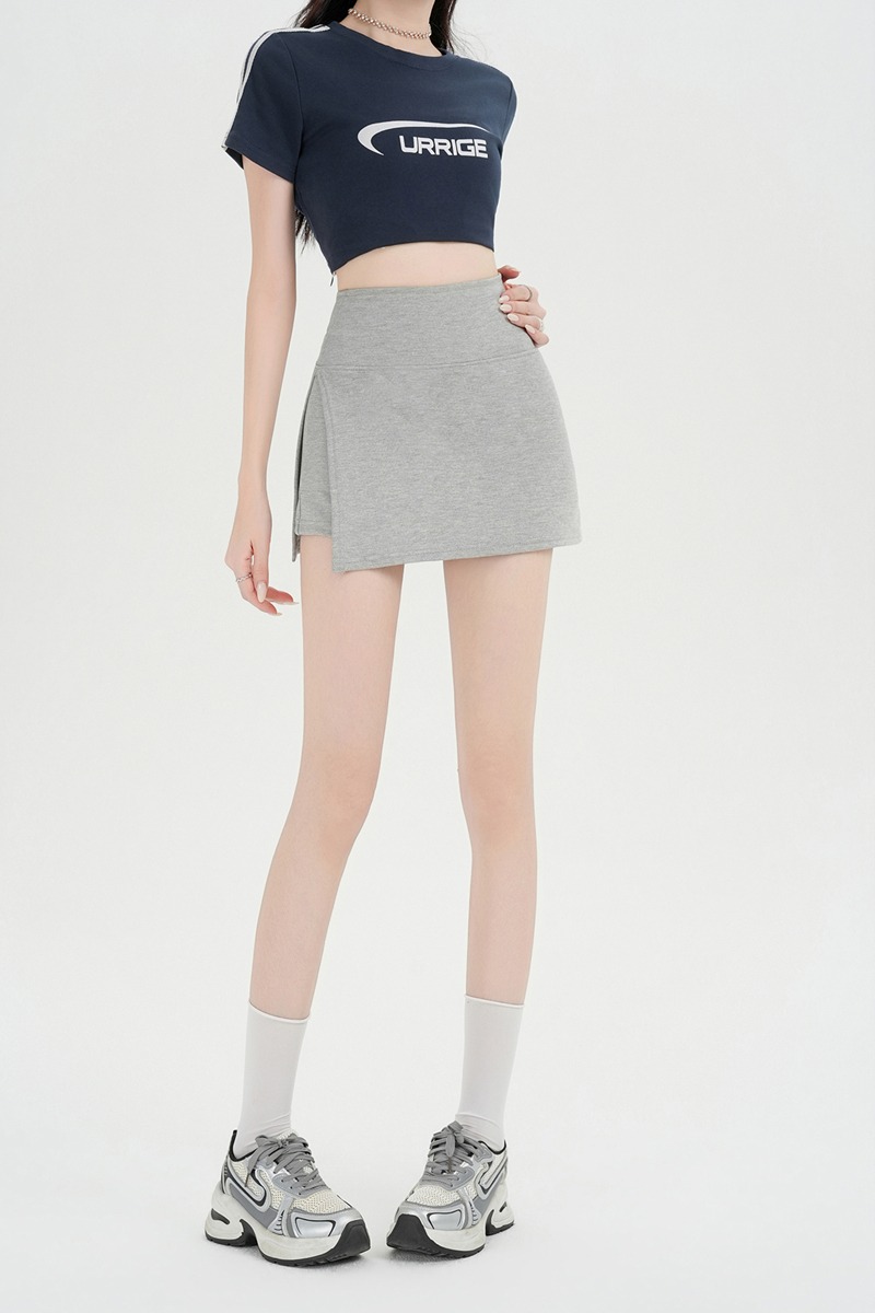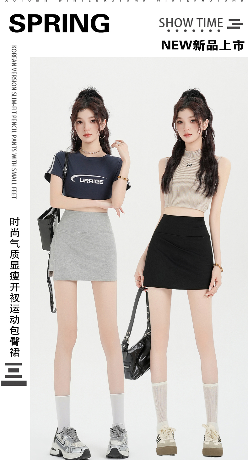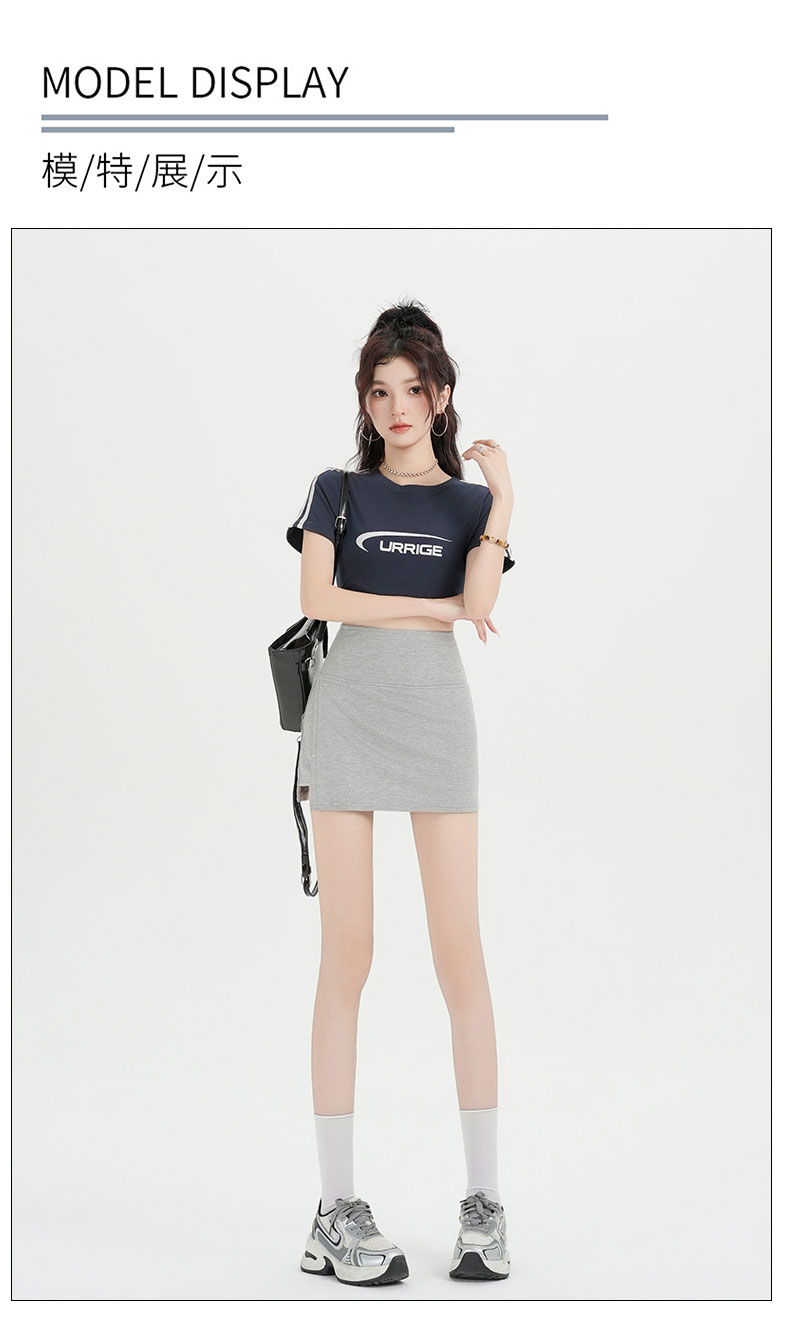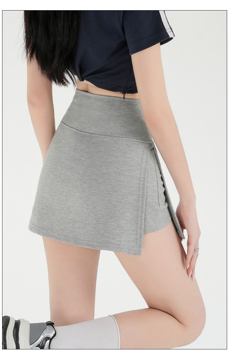 RY1909# 实拍美式辣妹灰色半身裙裤女夏季新款高腰侧开叉运动短裙包臀裤裙