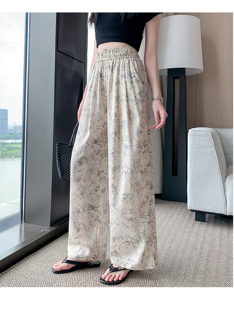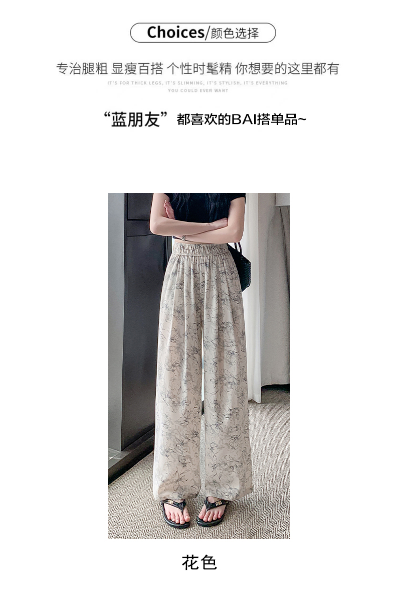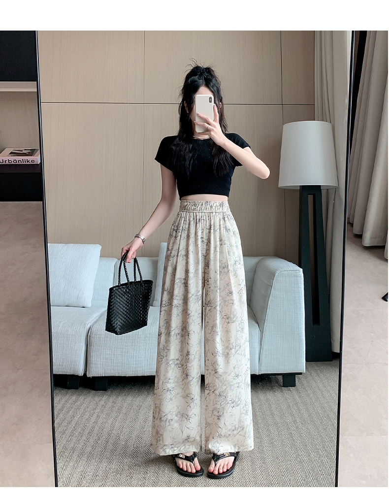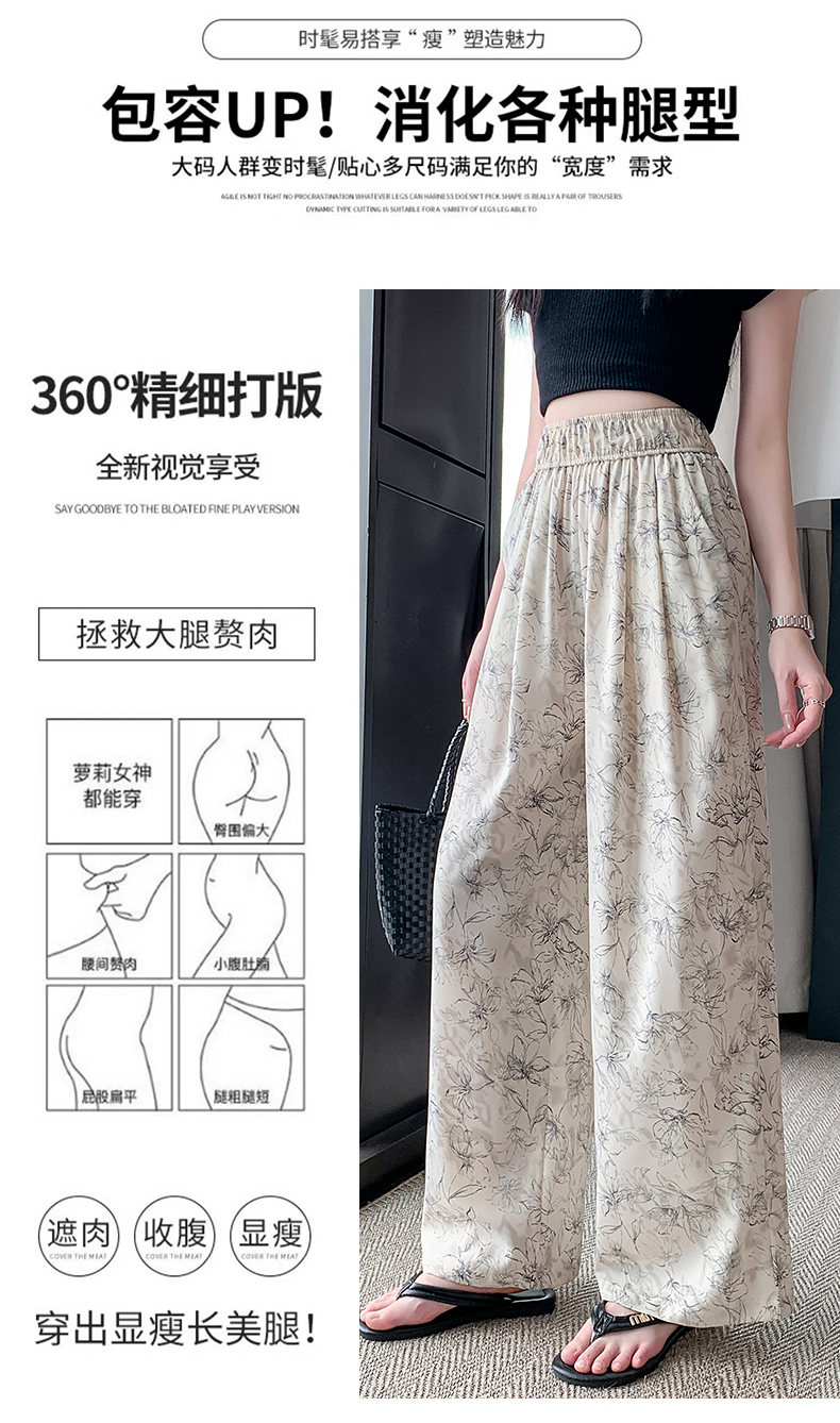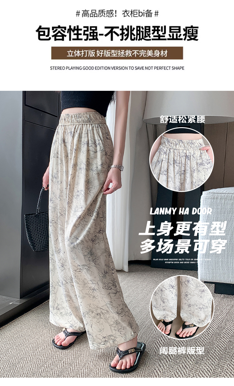 RY1911# 实拍冰丝阔腿裤女夏季薄款凉凉裤高腰垂感直筒水墨画雪纺休闲裤子