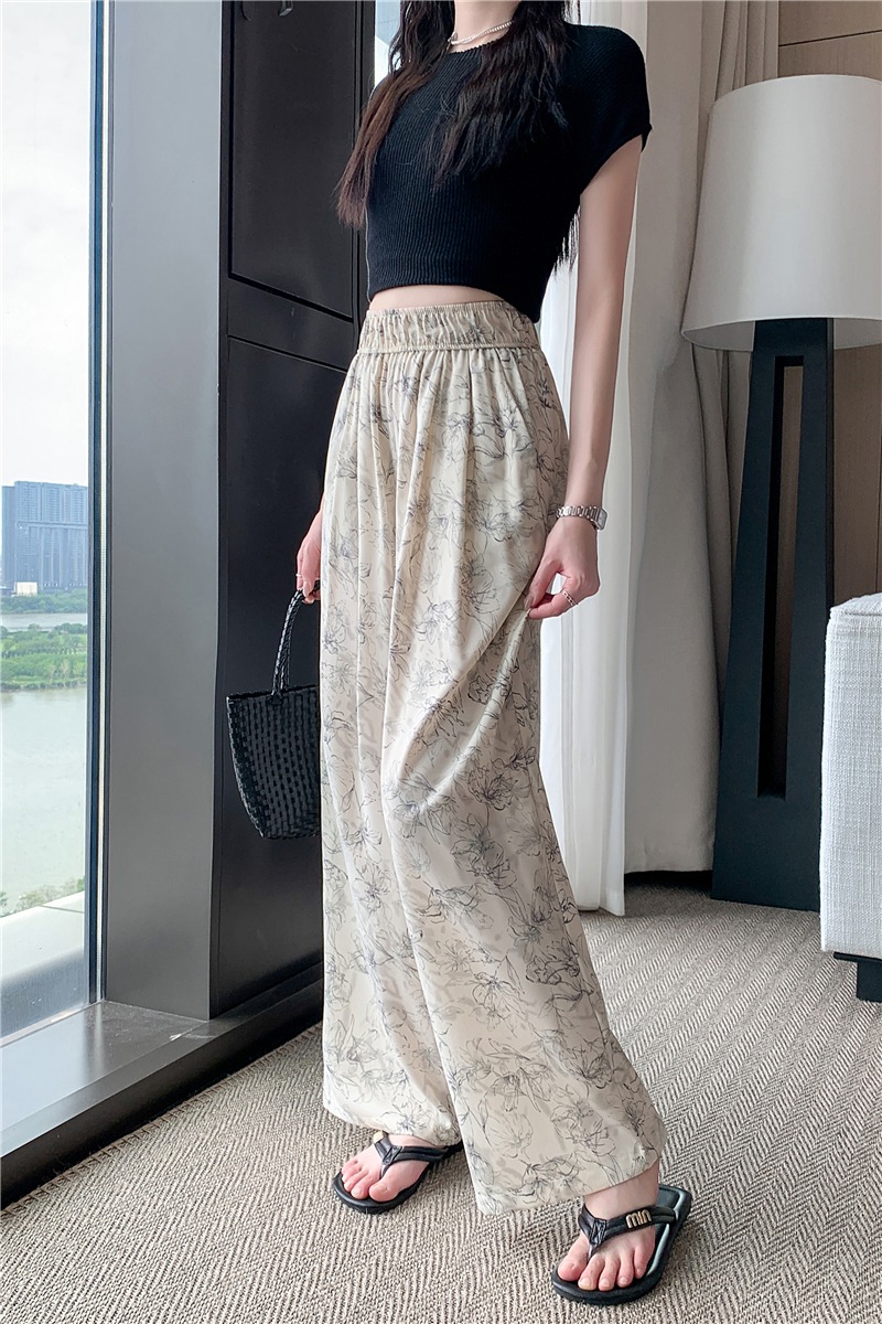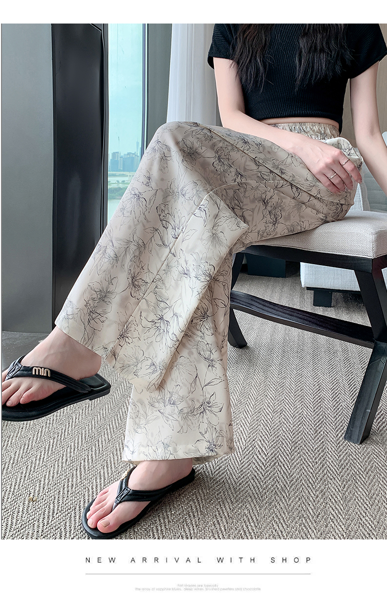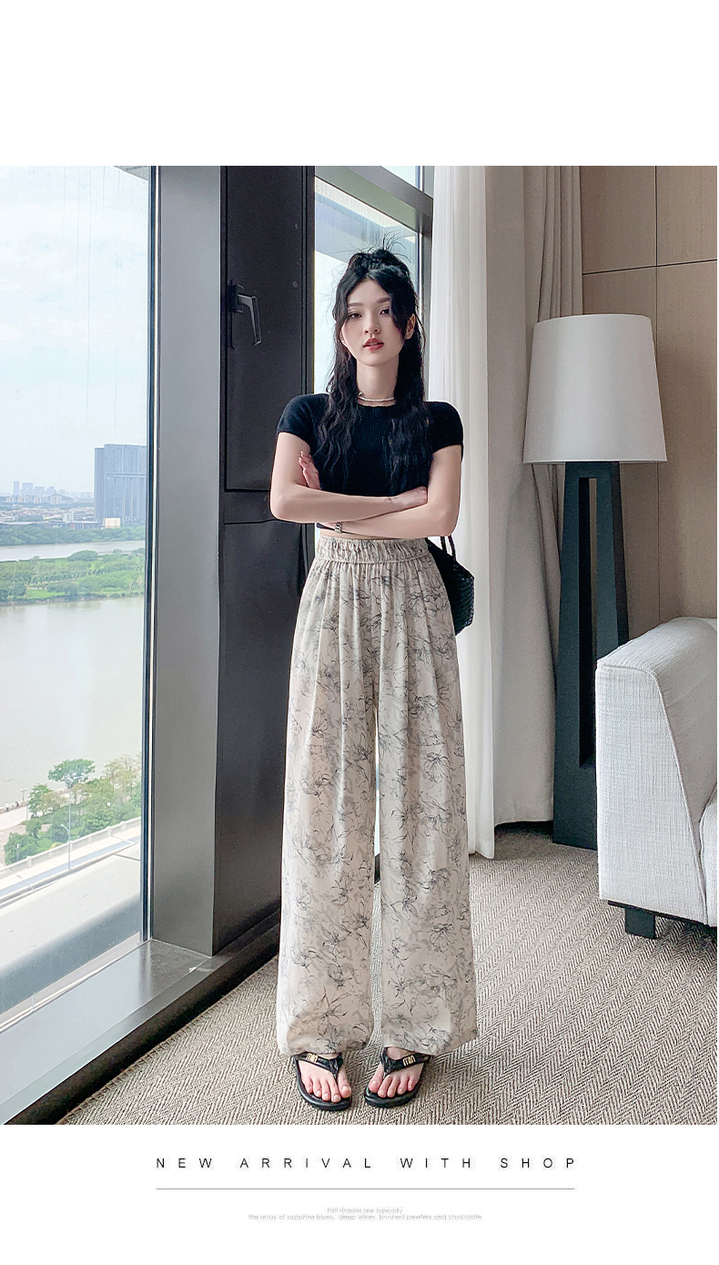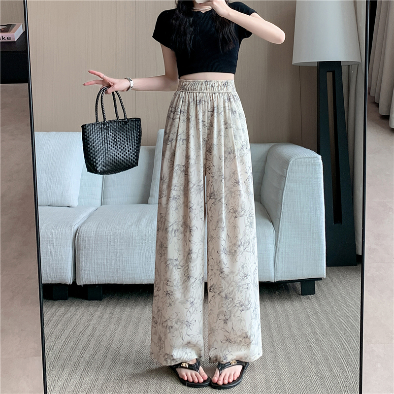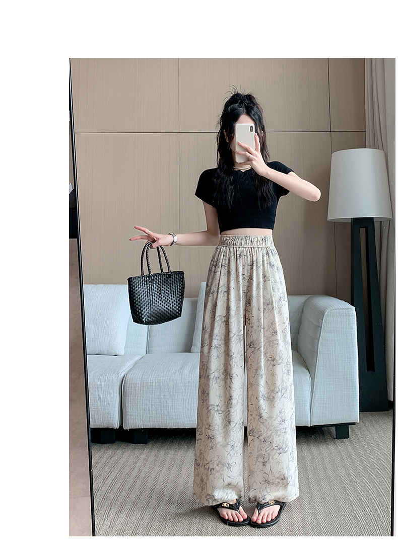 RY1911# 实拍冰丝阔腿裤女夏季薄款凉凉裤高腰垂感直筒水墨画雪纺休闲裤子