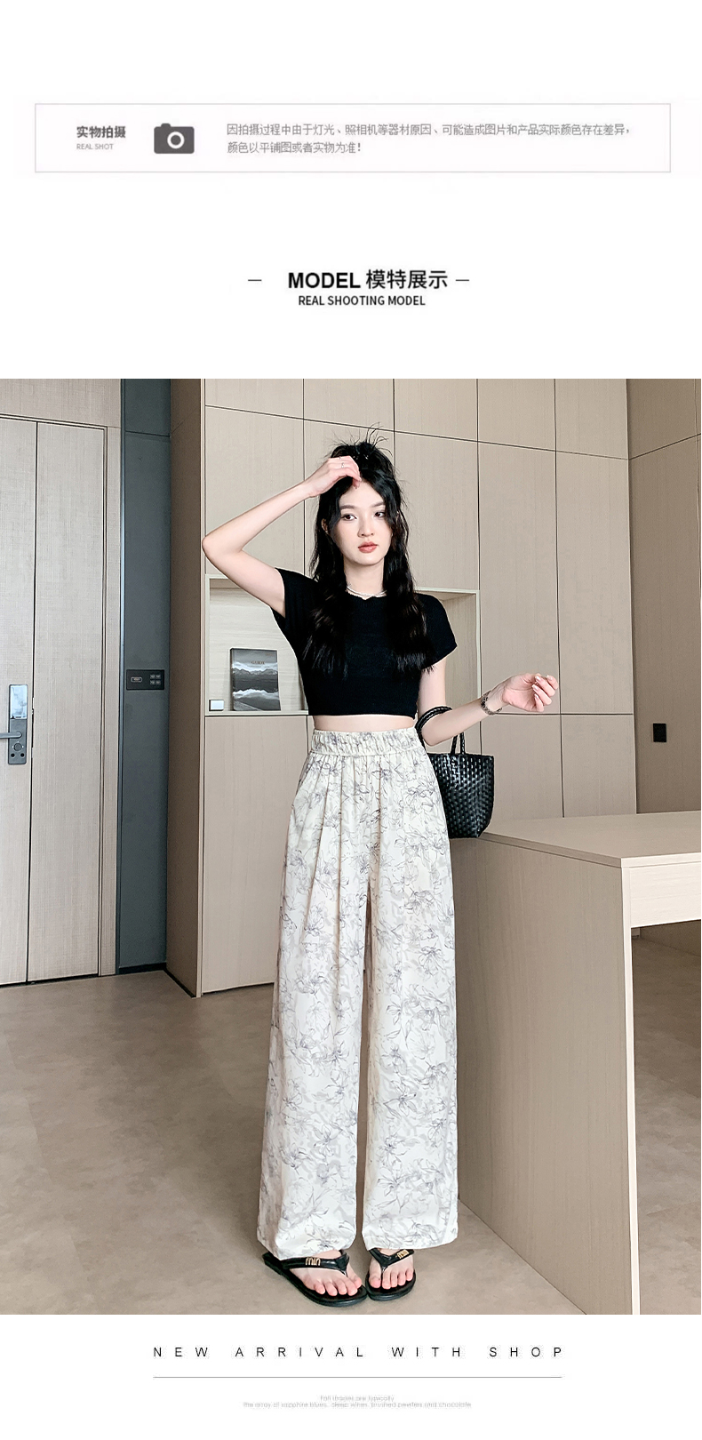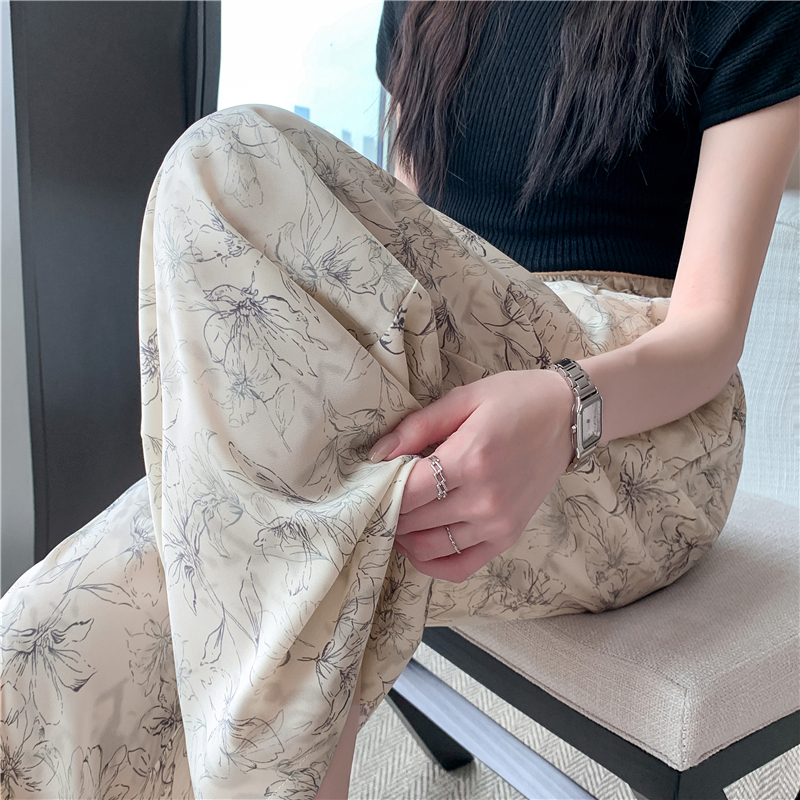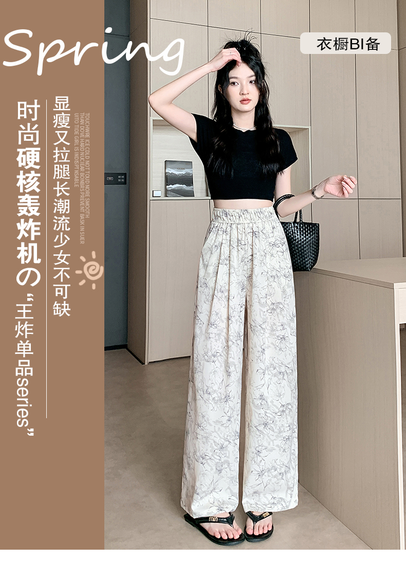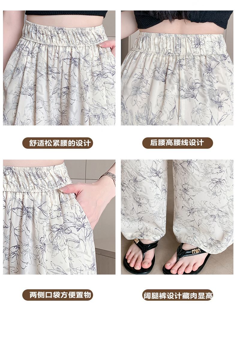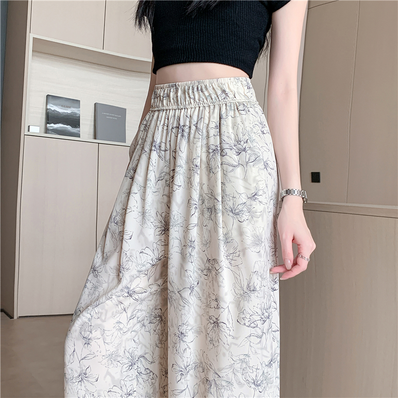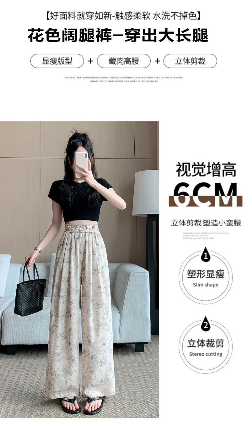 RY1911# 实拍冰丝阔腿裤女夏季薄款凉凉裤高腰垂感直筒水墨画雪纺休闲裤子