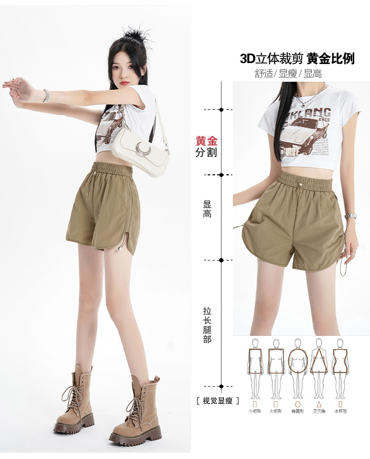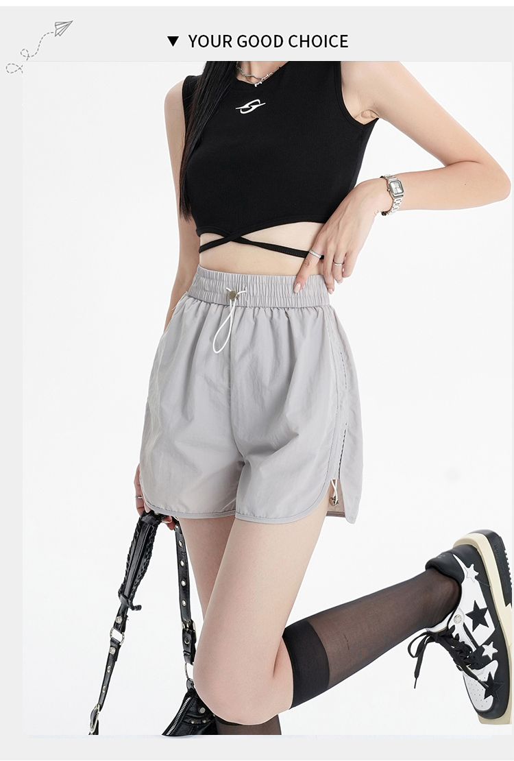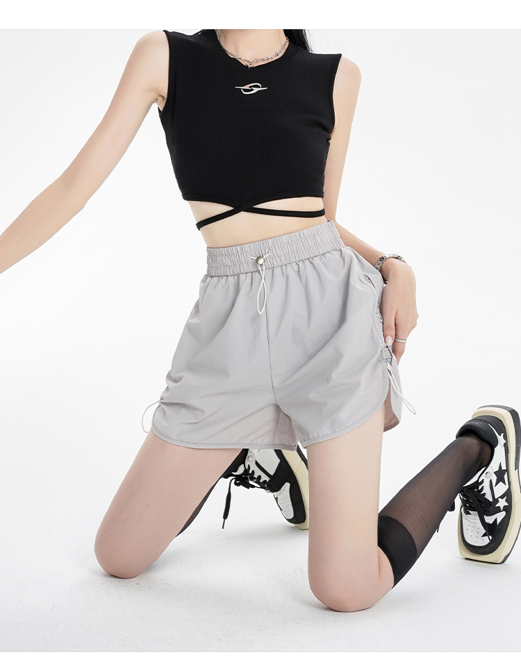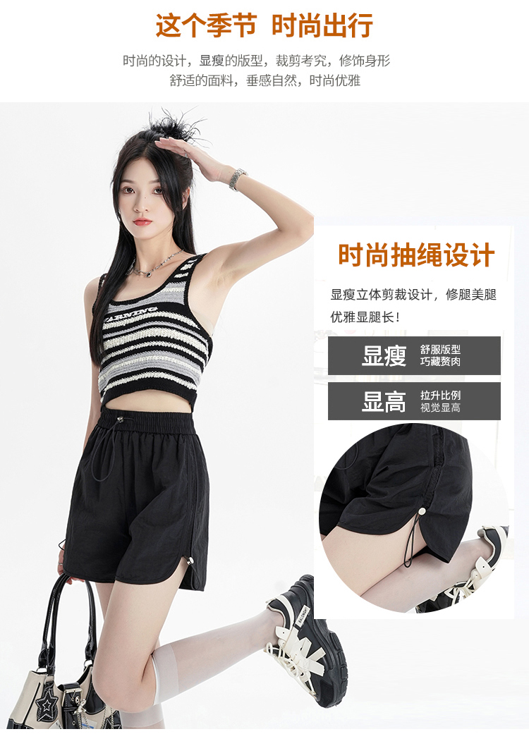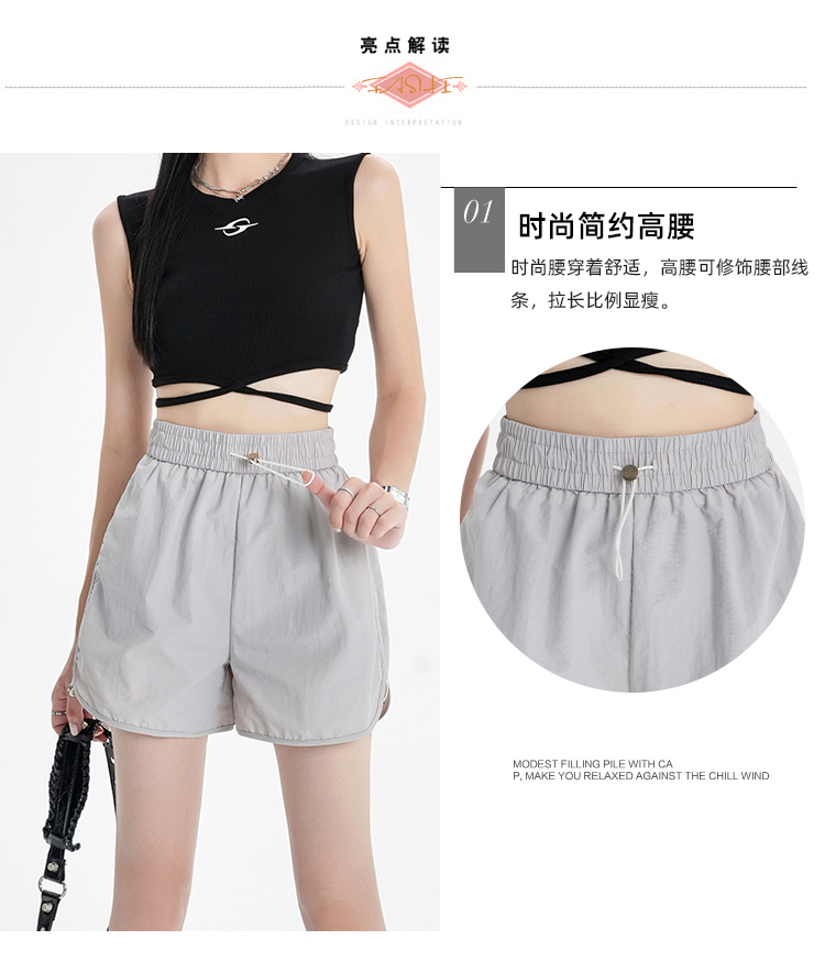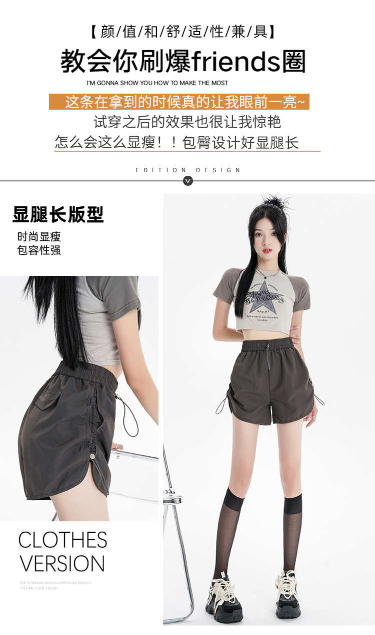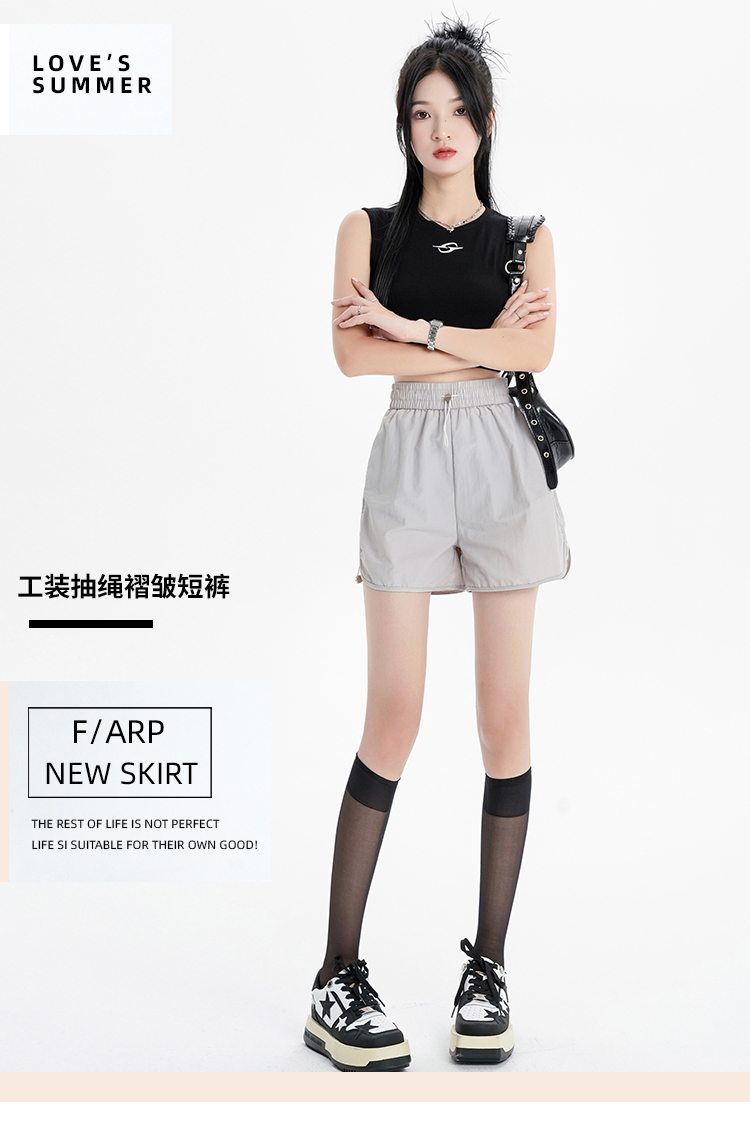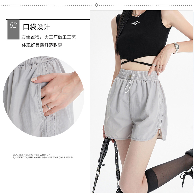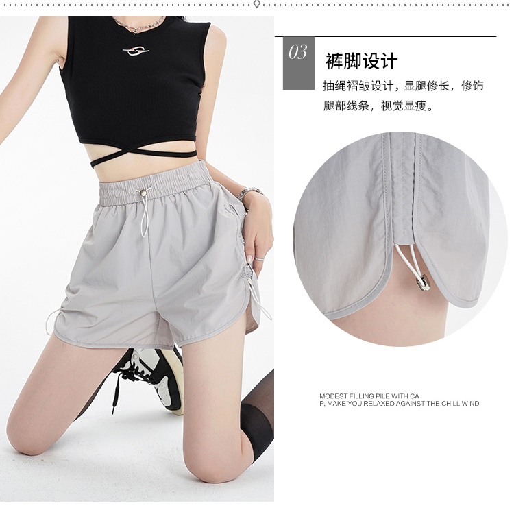 RY1912# 实拍速干运动短裤女夏季新款设计感抽绳阔腿裤小个子超薄冰丝裤女
