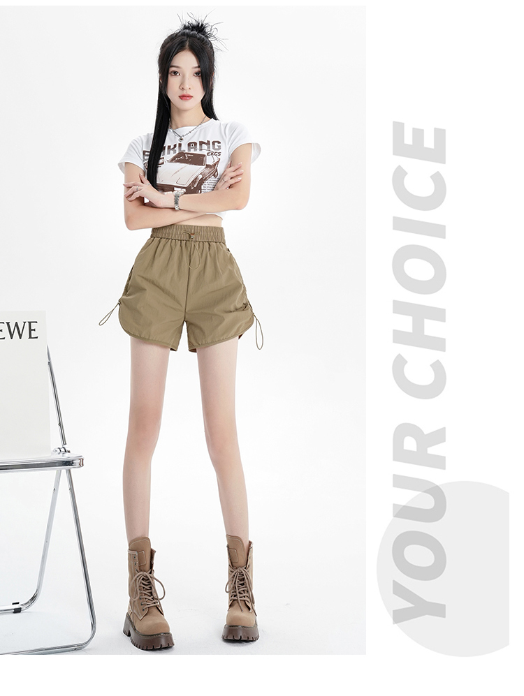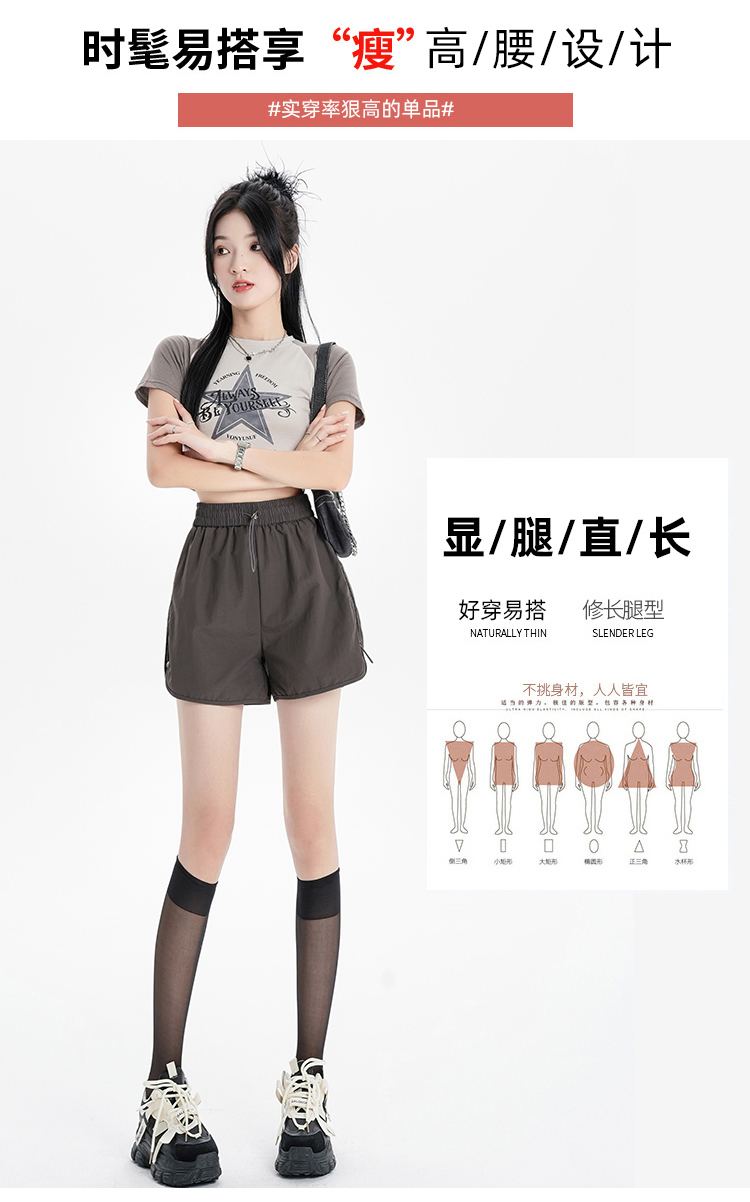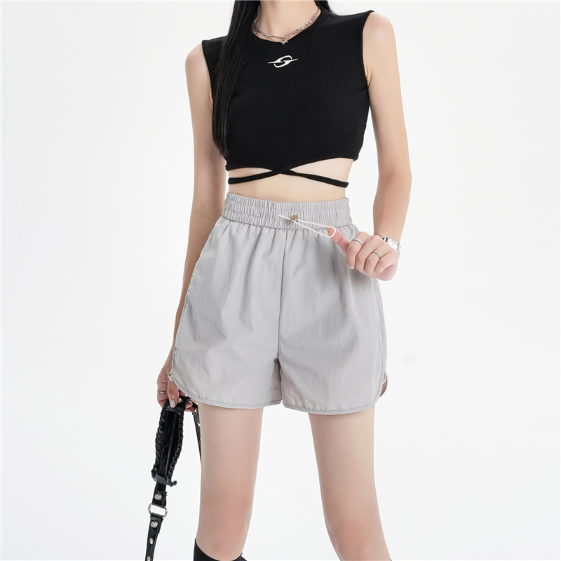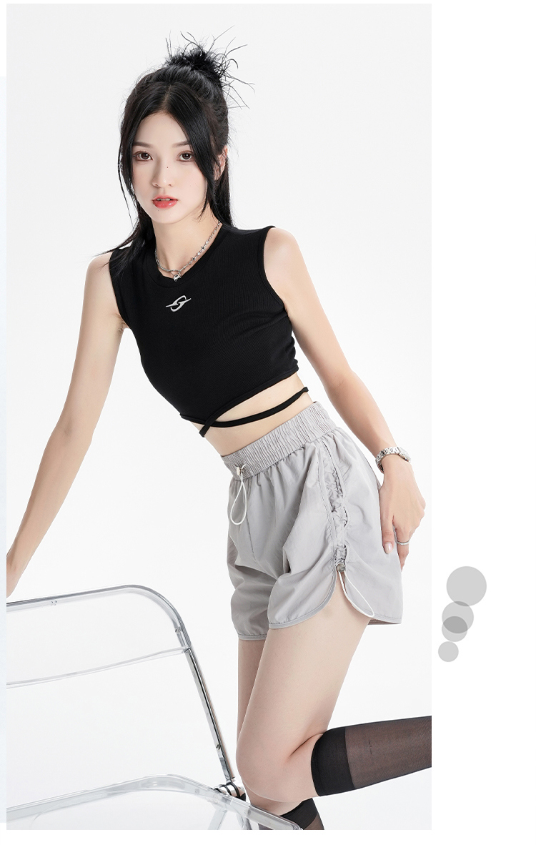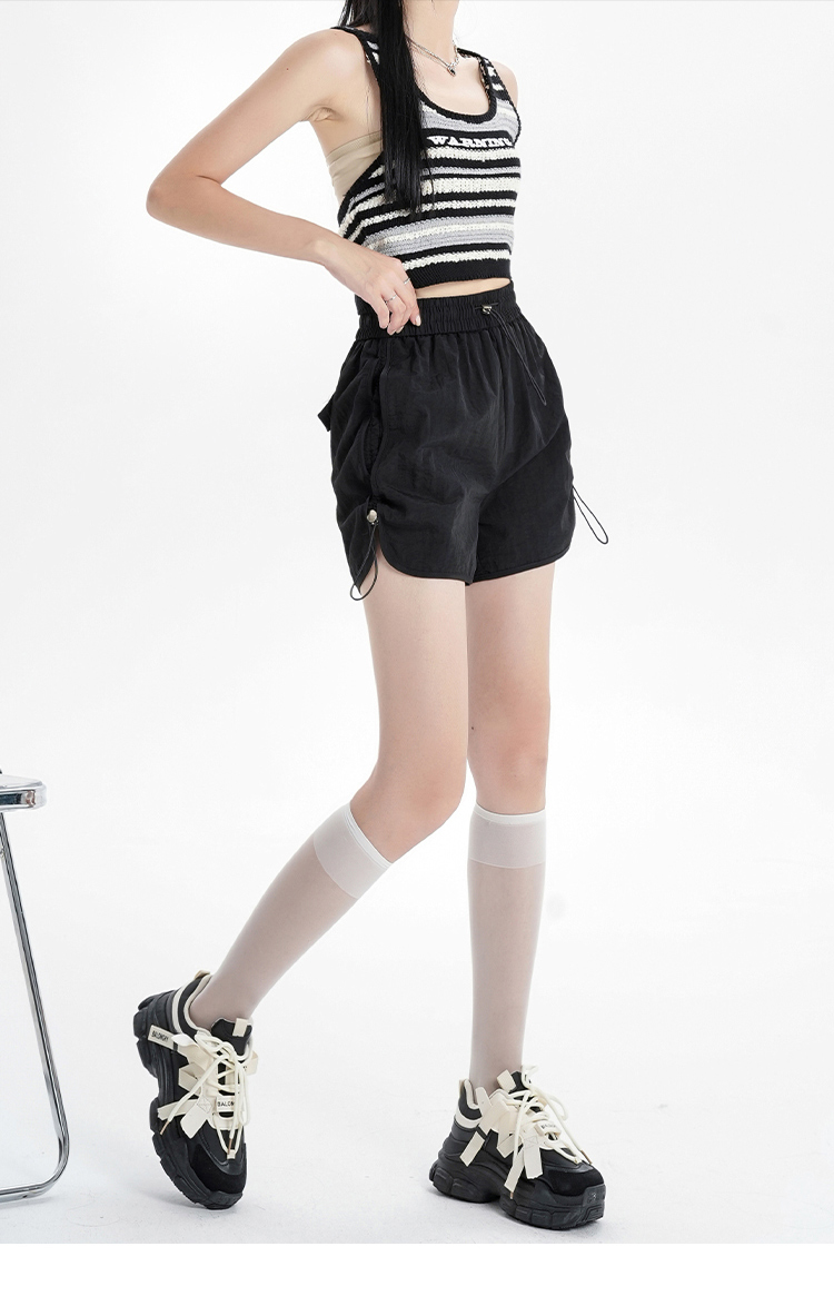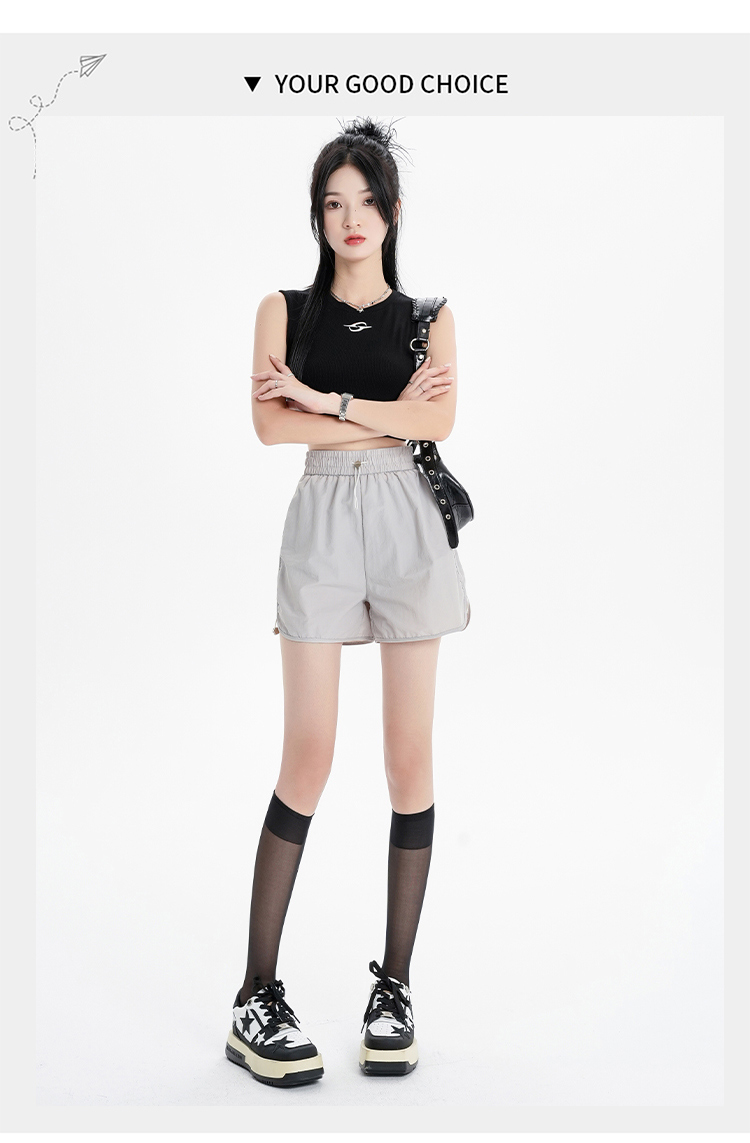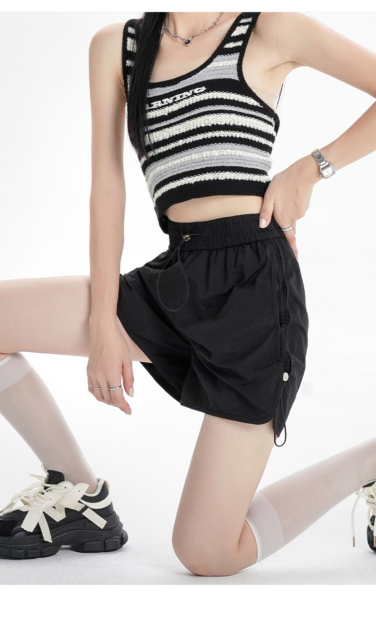 RY1912# 实拍速干运动短裤女夏季新款设计感抽绳阔腿裤小个子超薄冰丝裤女