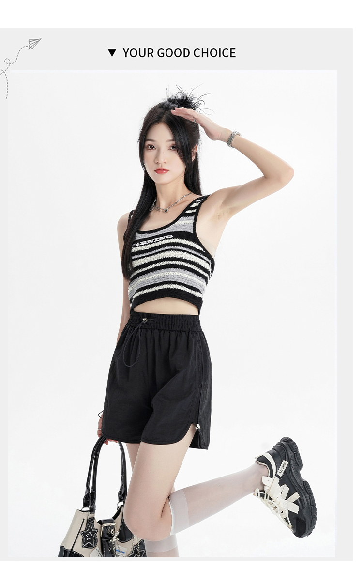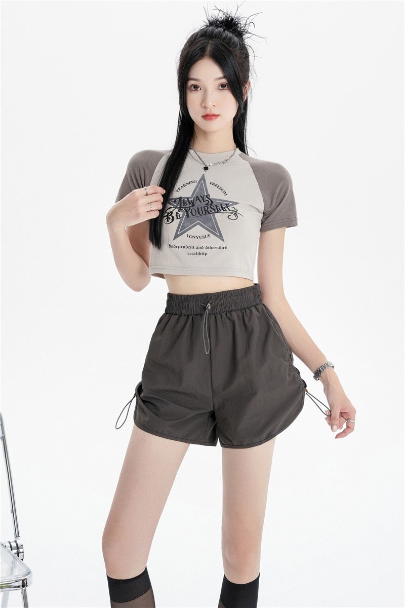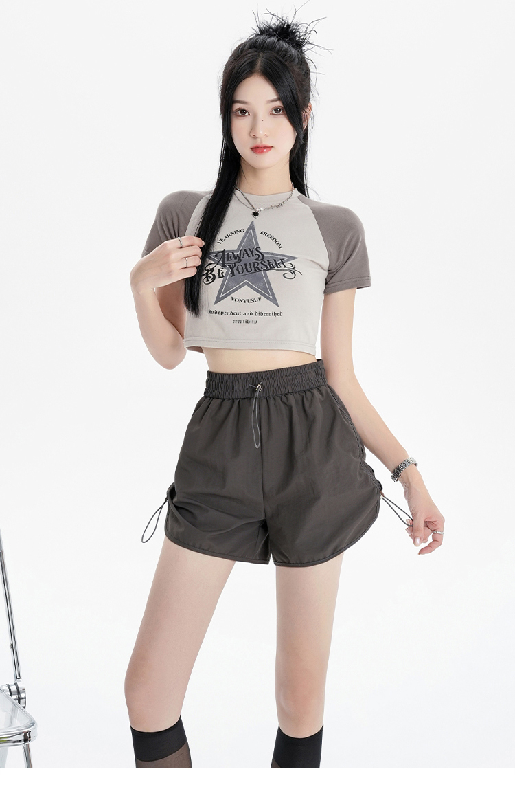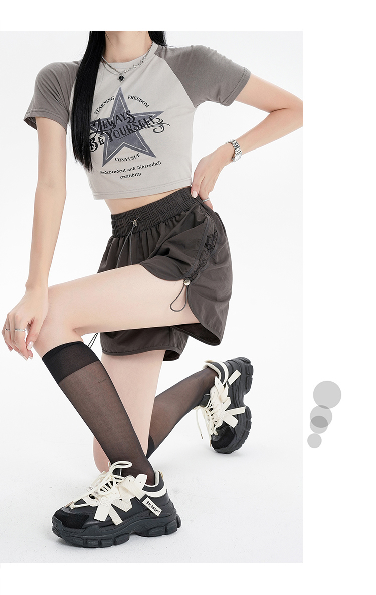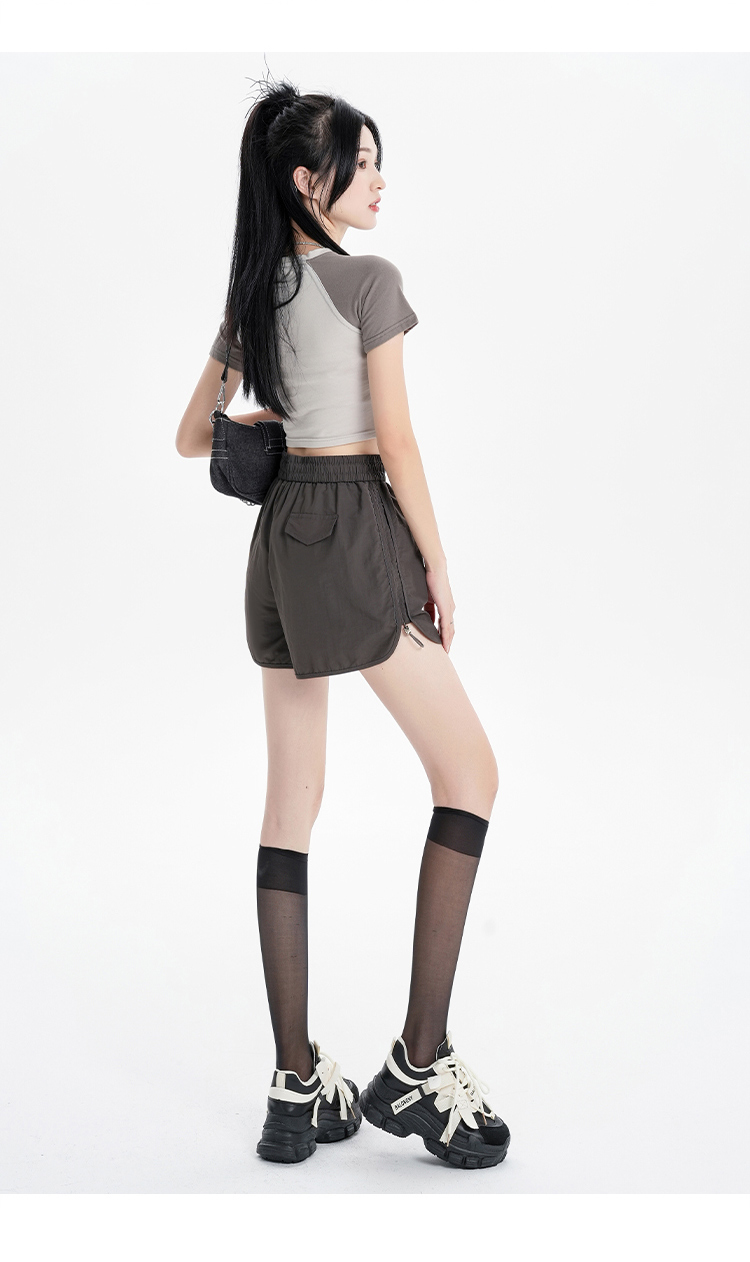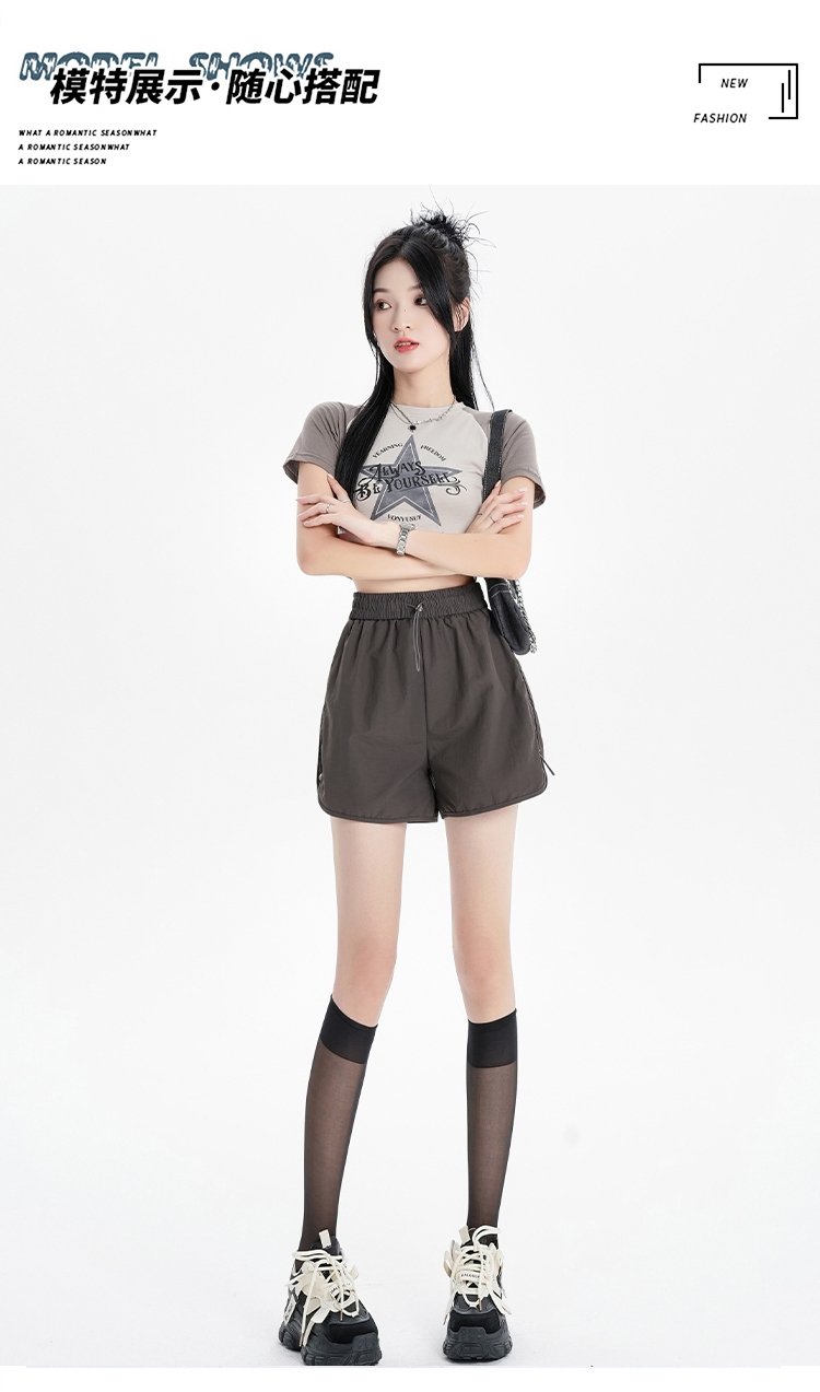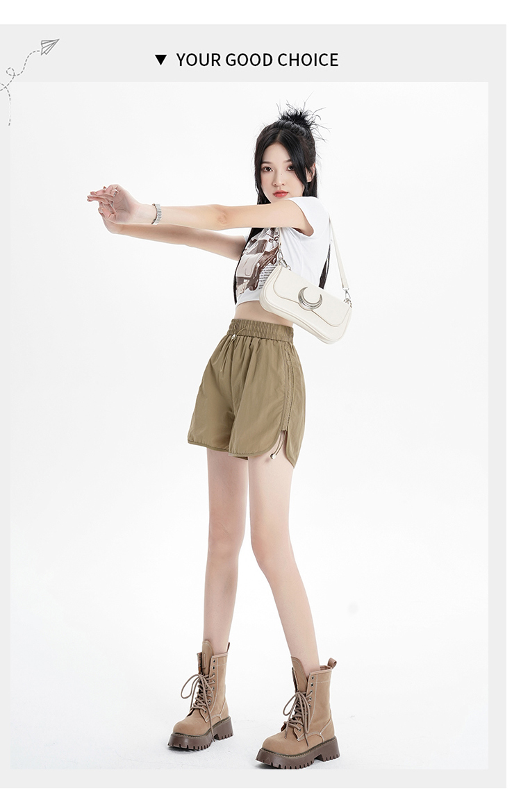 RY1912# 实拍速干运动短裤女夏季新款设计感抽绳阔腿裤小个子超薄冰丝裤女