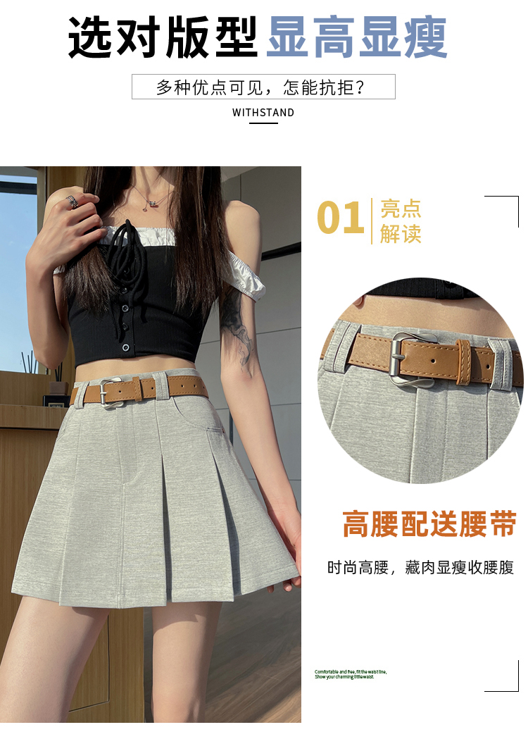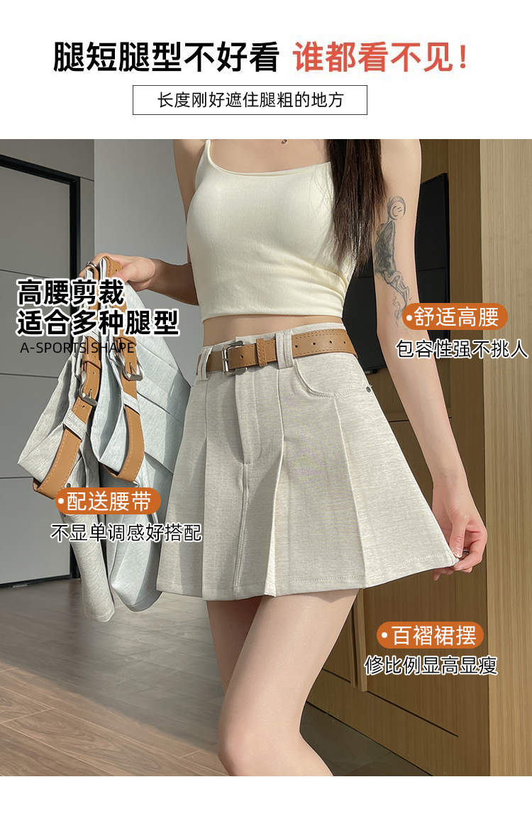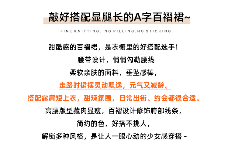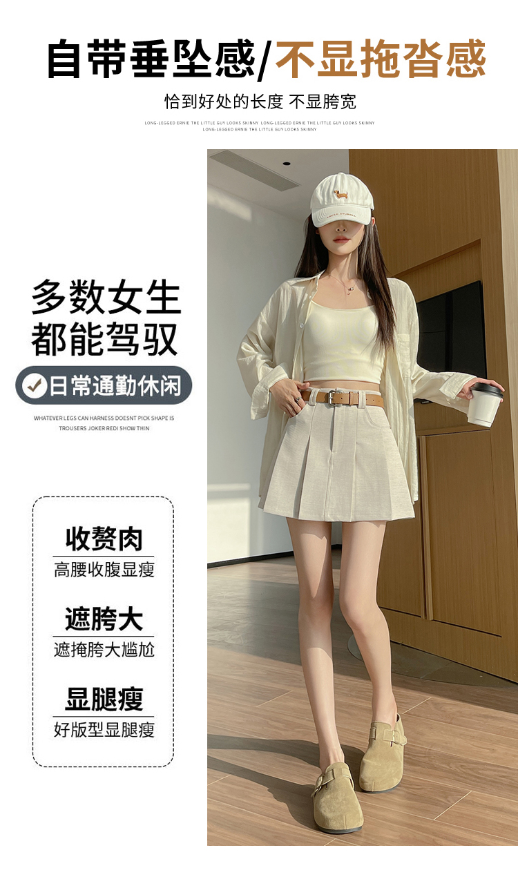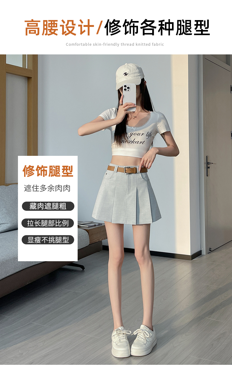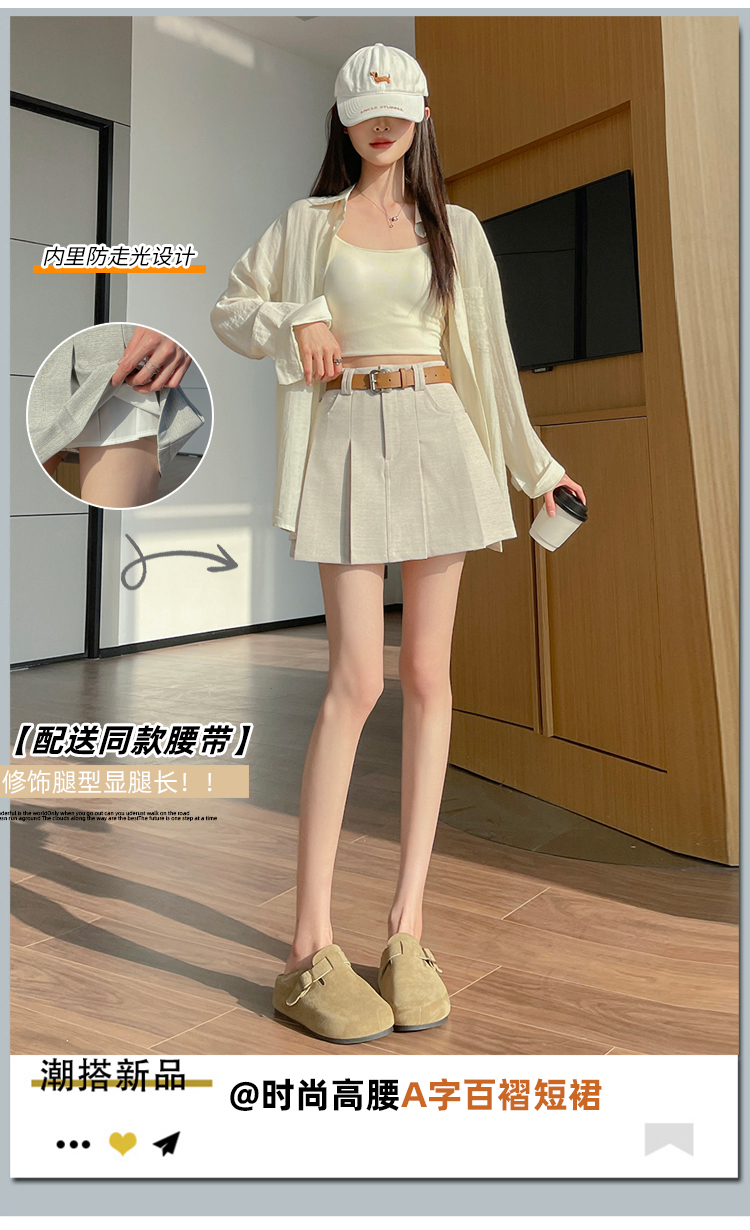 RY1913# 洗水棉百褶半身裙女夏2026新款小个子百搭高腰显瘦防走光a字短裙