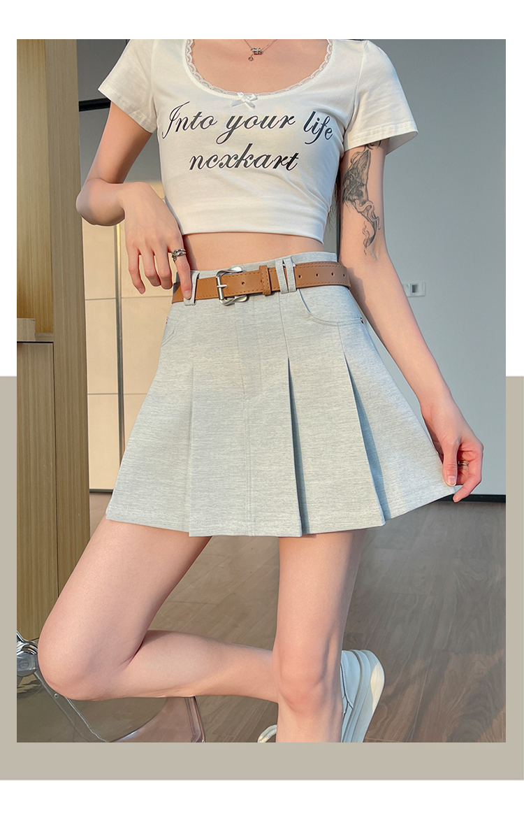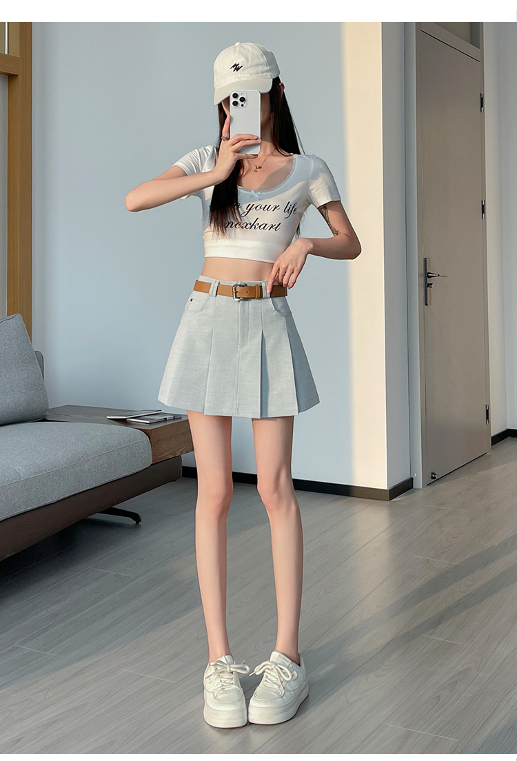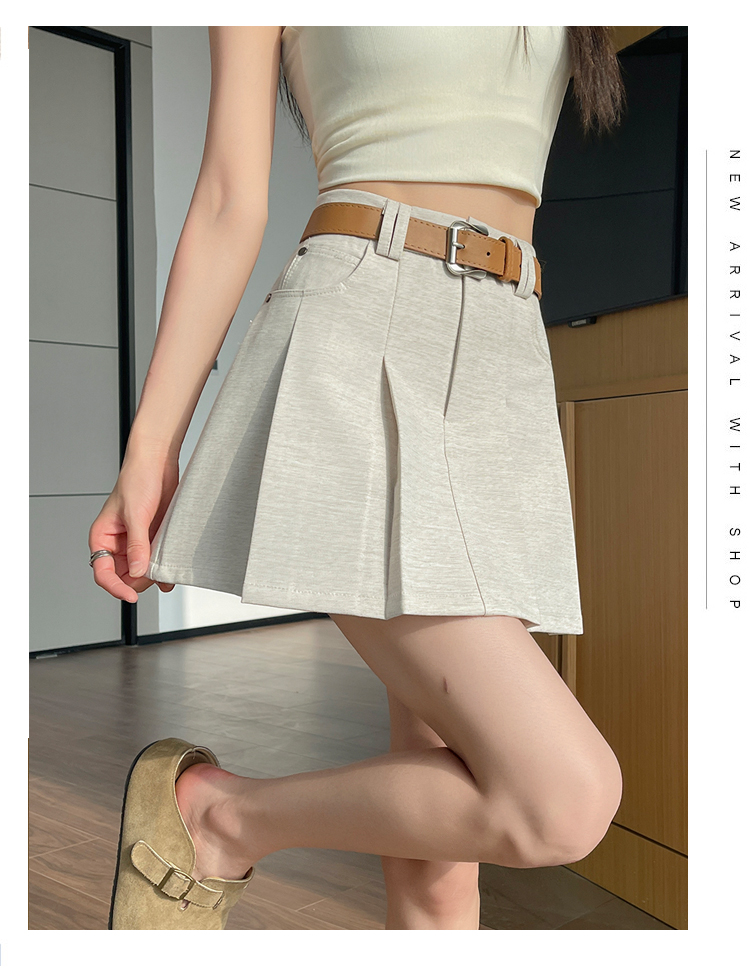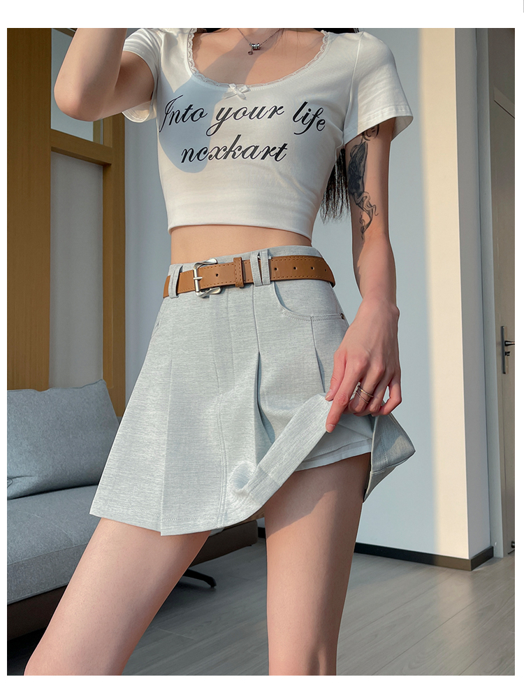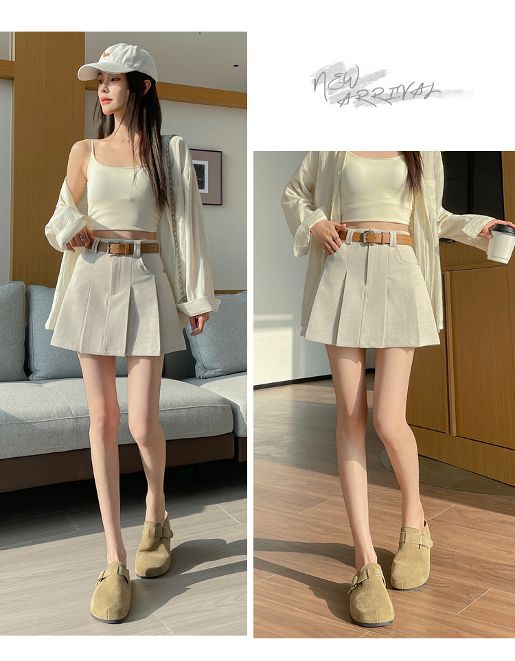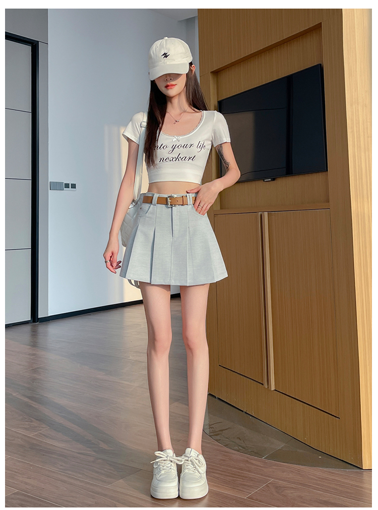 RY1913# 洗水棉百褶半身裙女夏2026新款小个子百搭高腰显瘦防走光a字短裙