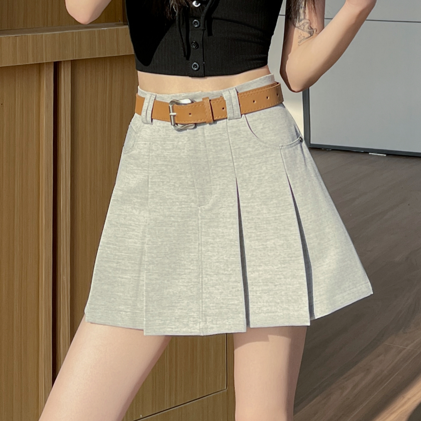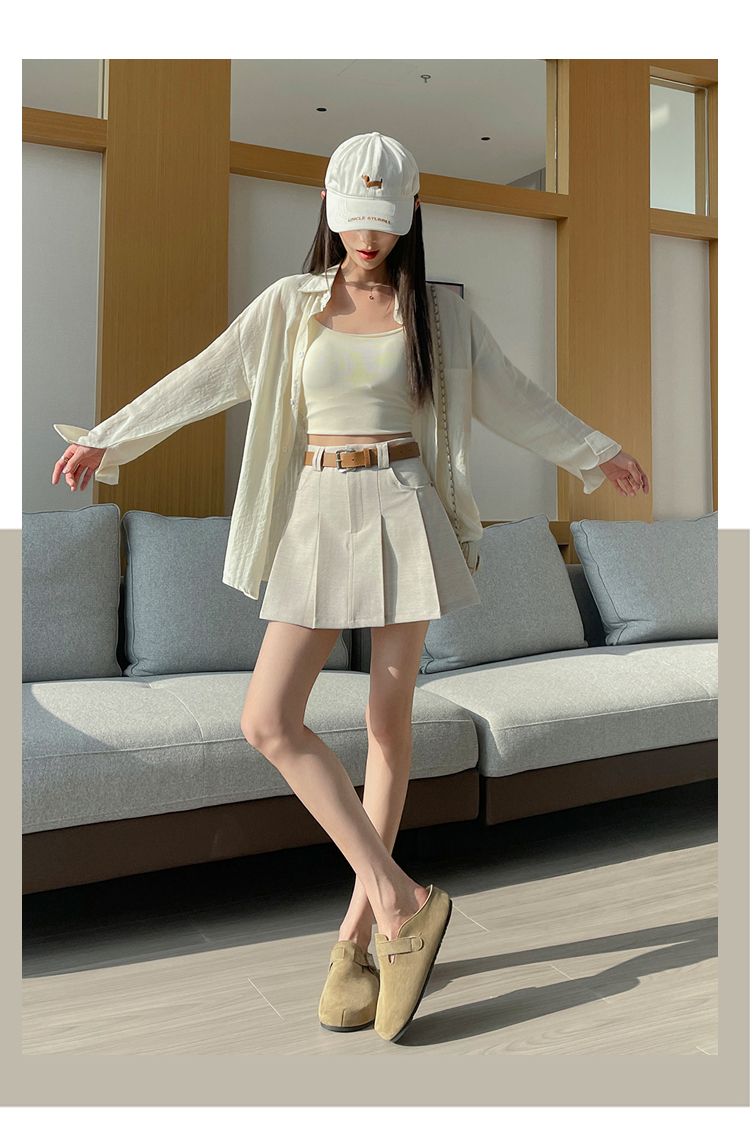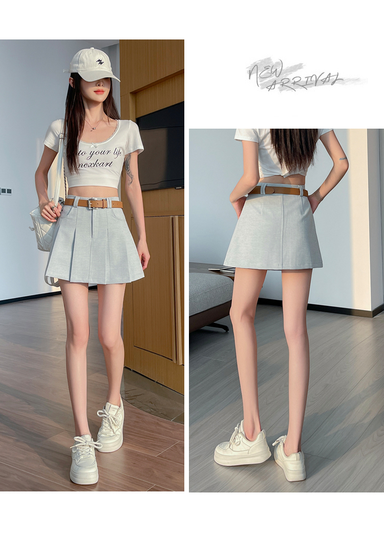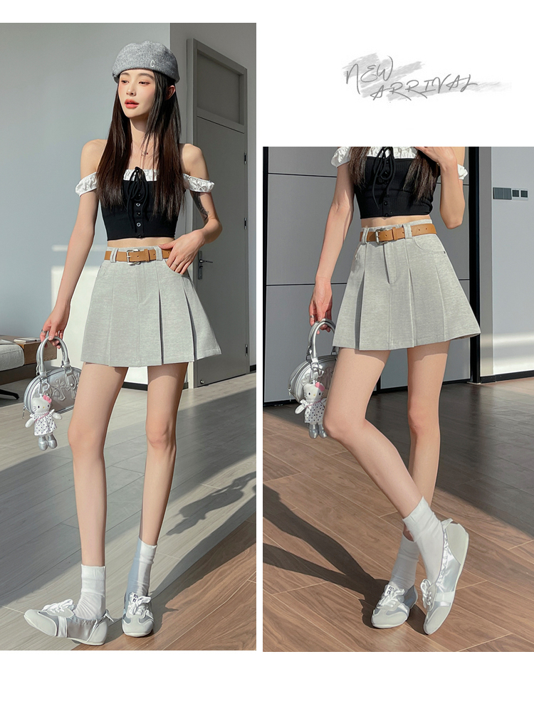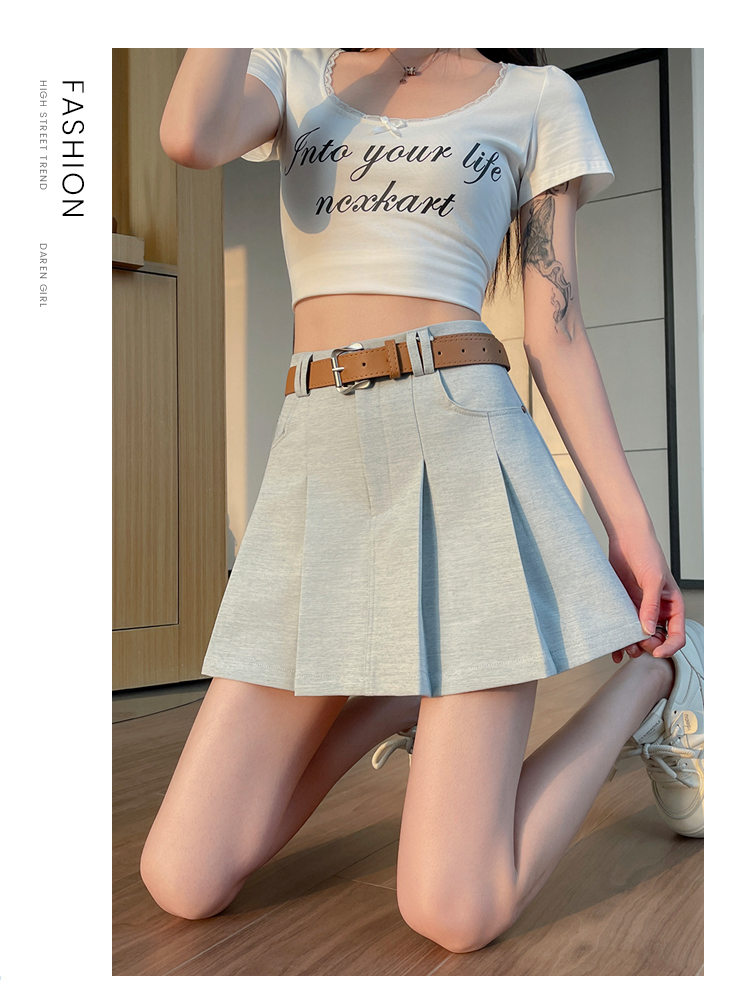 RY1913# 洗水棉百褶半身裙女夏2026新款小个子百搭高腰显瘦防走光a字短裙