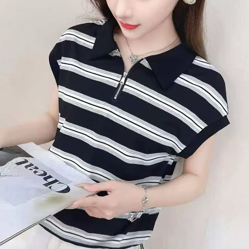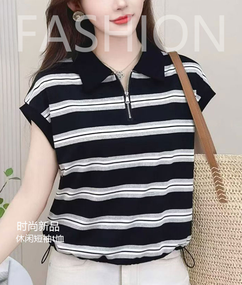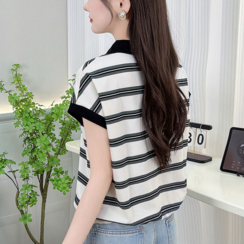 RY1915# 有货2026年夏装新款短袖t恤宽松休闲上衣时尚减龄条纹小衫百搭女