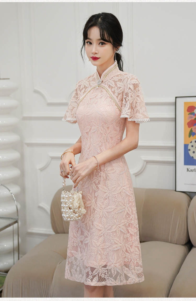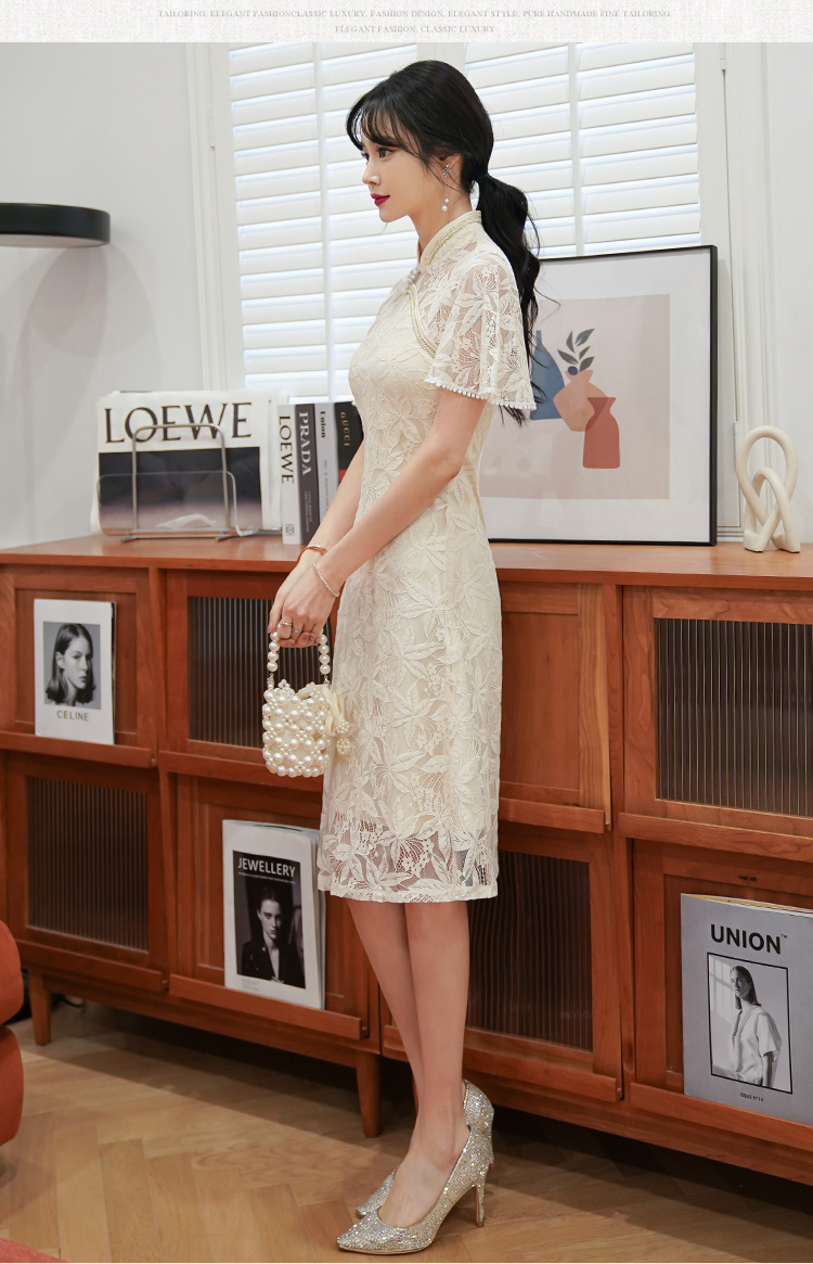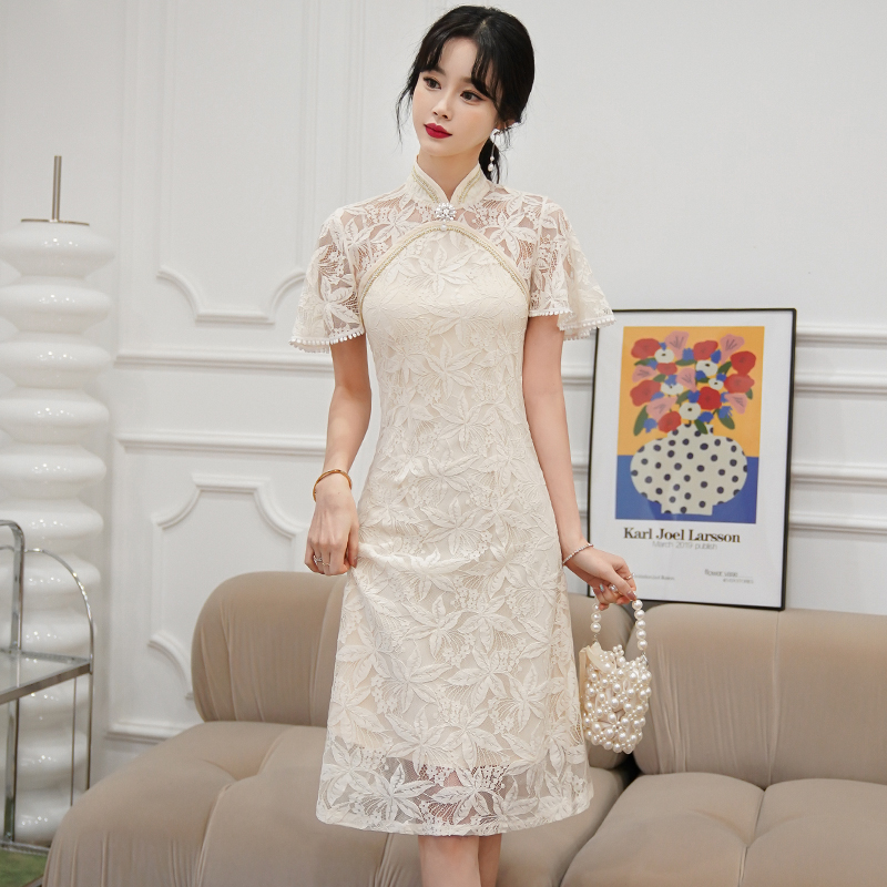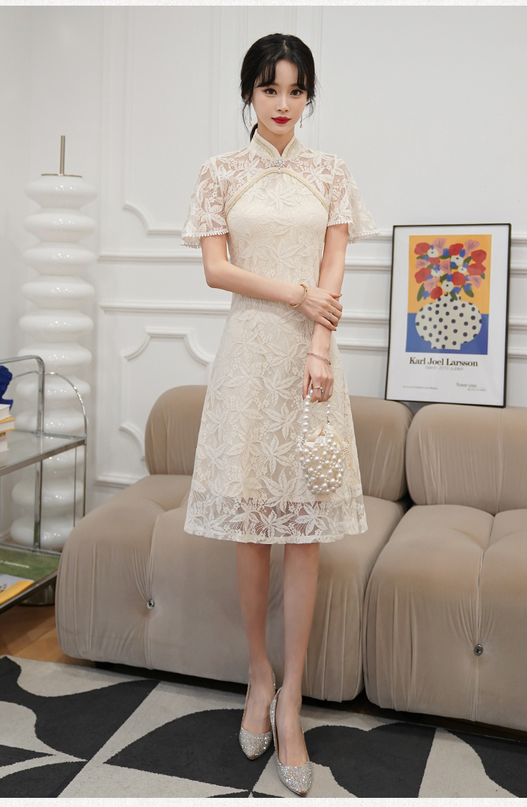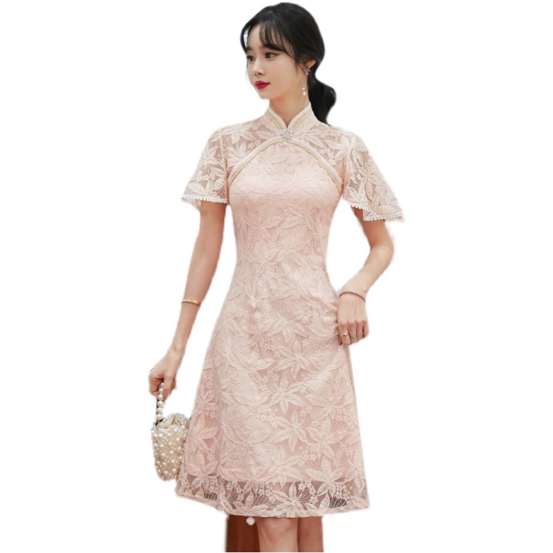RY1936# 实拍复古蕾丝旗袍裙日常可穿连衣裙