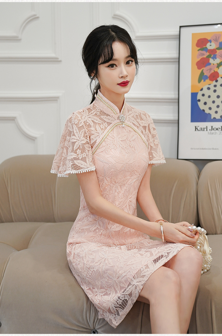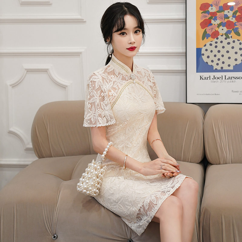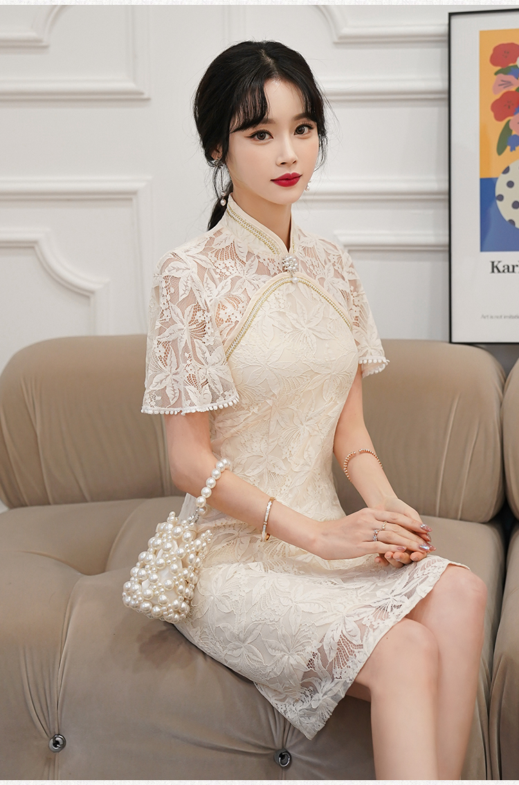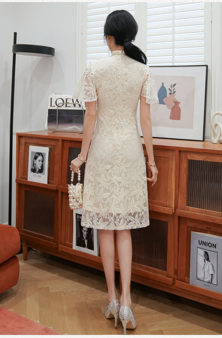 RY1936# 实拍复古蕾丝旗袍裙日常可穿连衣裙