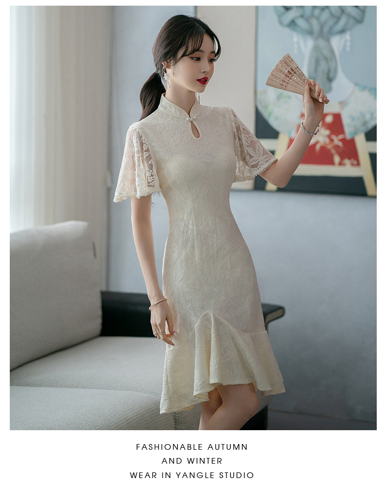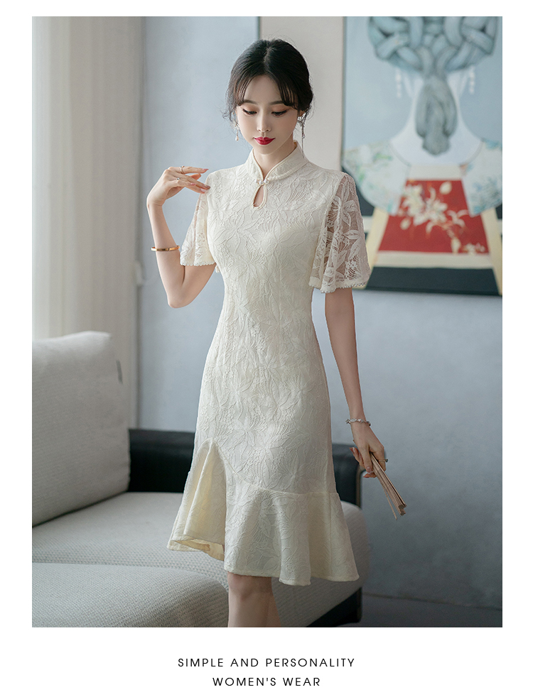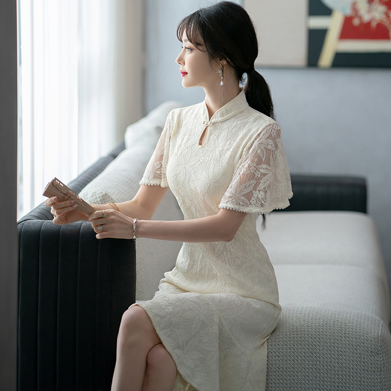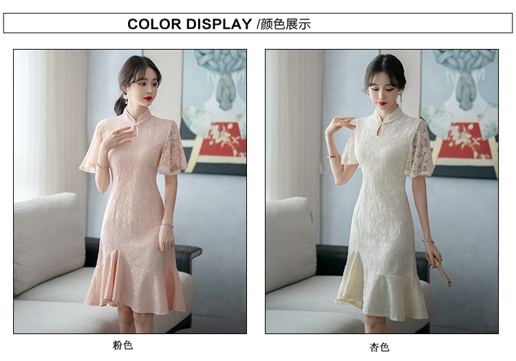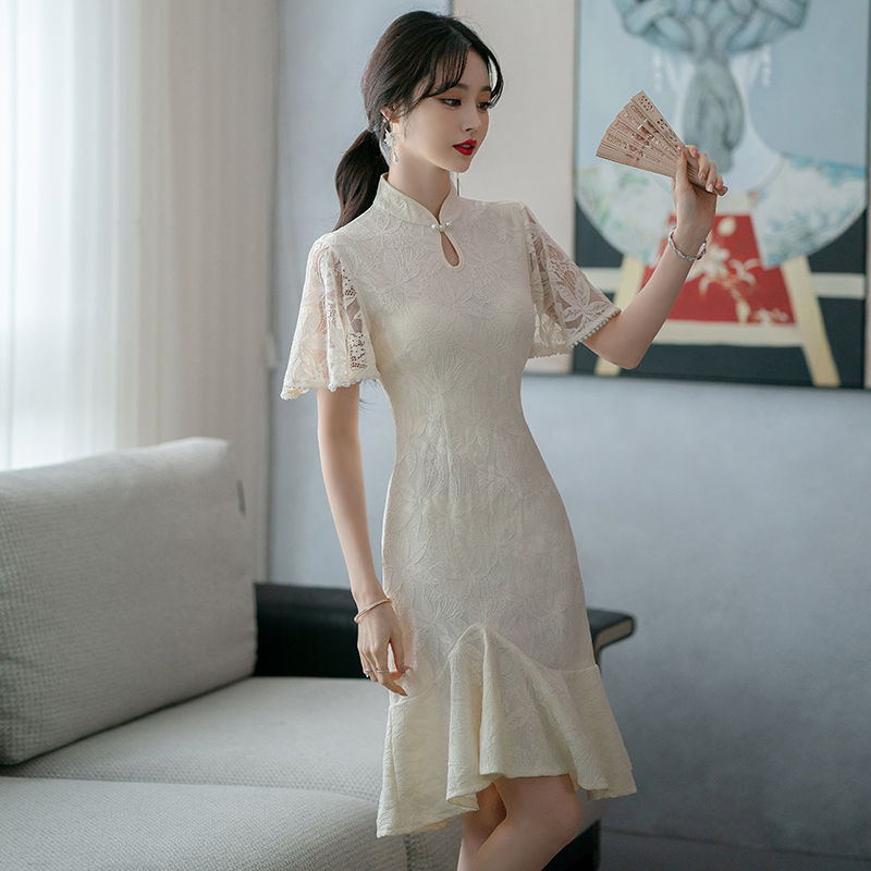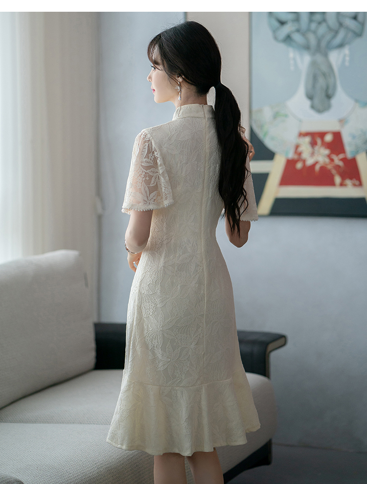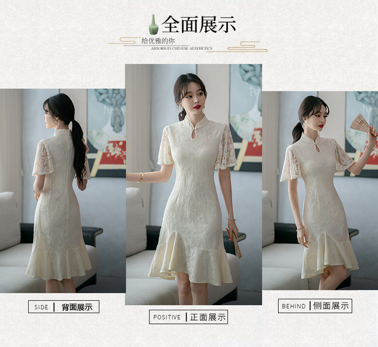 RY1938# 实拍蕾丝旗袍新款夏季年轻款少女改良鱼尾裙日常连衣裙